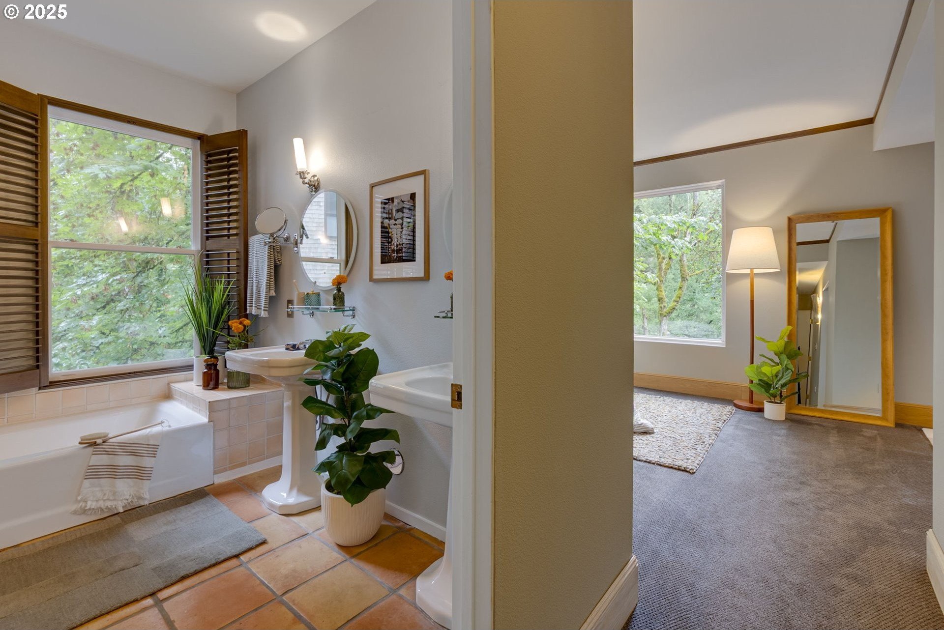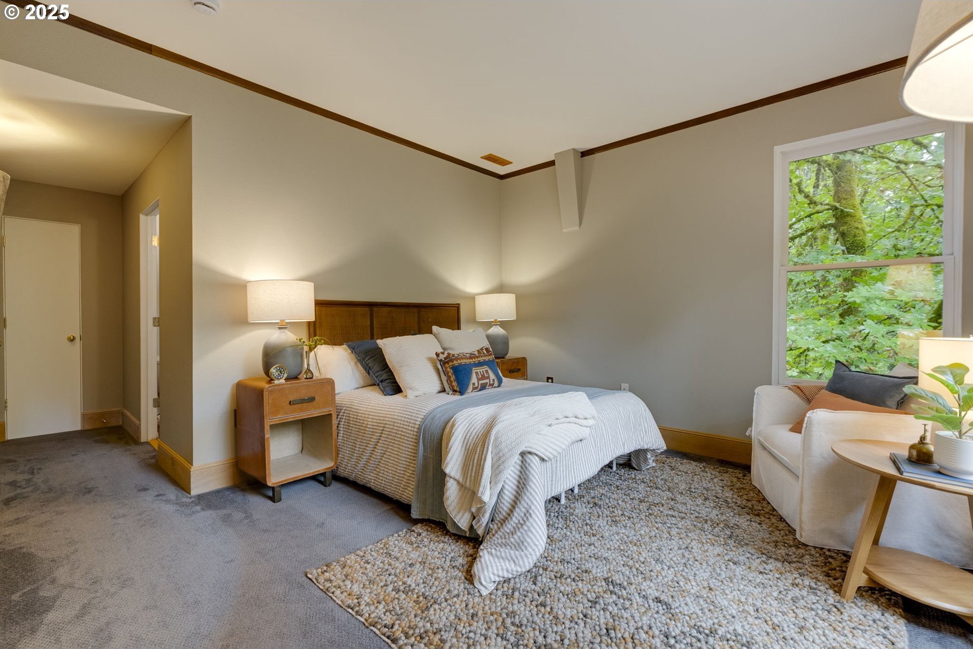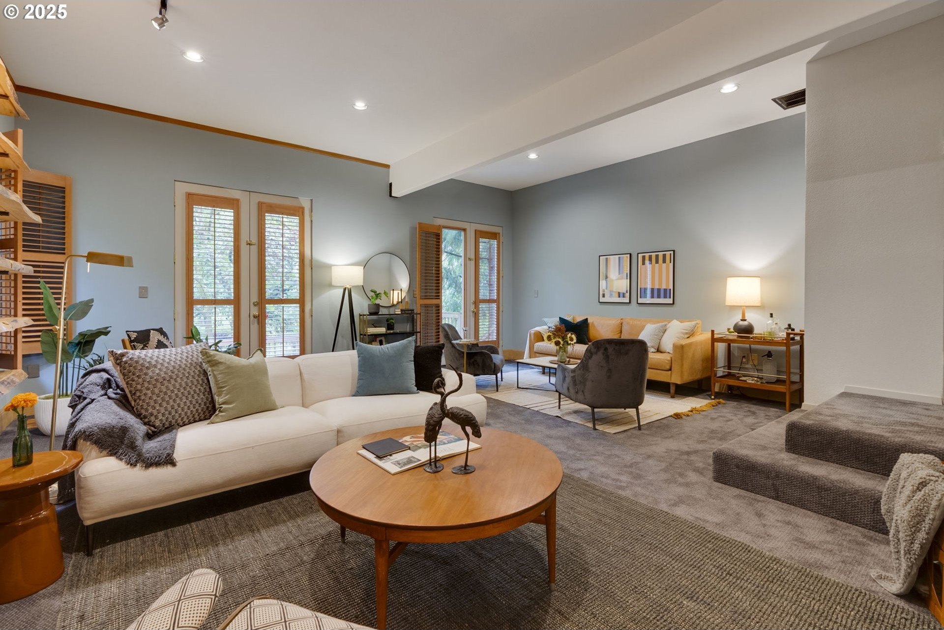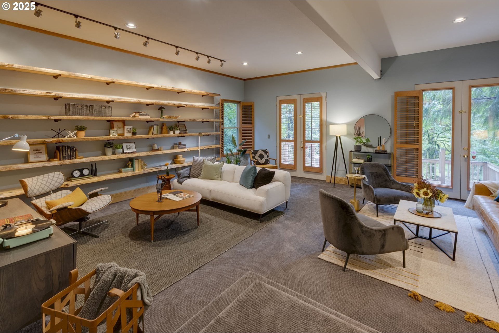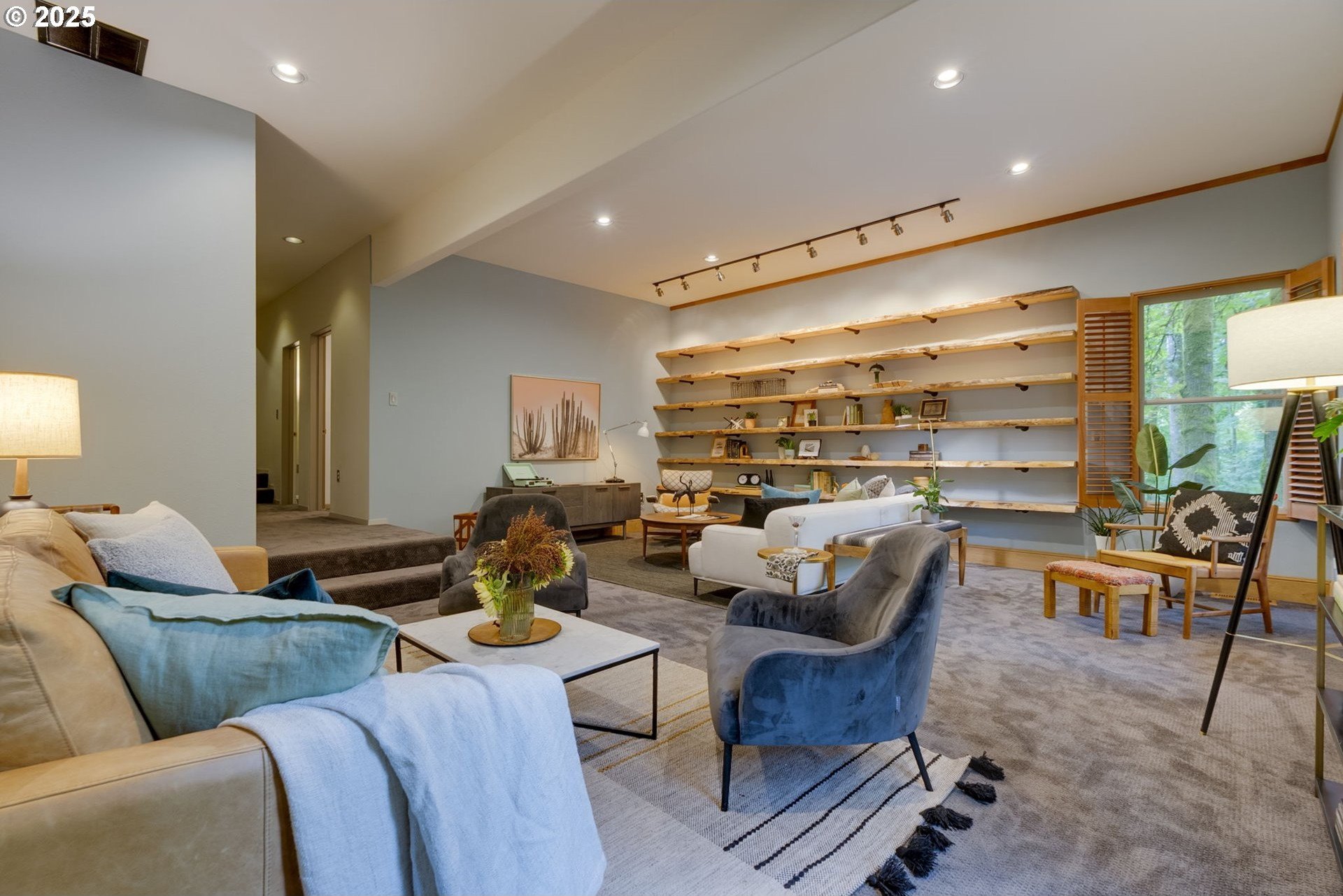 Modern Treehouse Living in Sylvan Heights! Perched above the street and nestled among the trees, this custom-built 1998 NW contemporary home offers a rare blend of architectural charm, natural beauty, and urban convenience. Designed to feel like a luxury treehouse, the home features soaring windows, vaulted ceilings, and clean modern lines that bring in abundant natural light and serene, wooded views from every room. The open concept invites both entertaining and everyday living, with a spacious kitchen equipped with modern cabinetry, stainless steel appliances, and ample storage. A cozy wood-burning fireplace anchors the living room, while expansive outdoor decks offer seamless indoor-outdoor living. Expansive living on three levels. The flexible floor plan includes a generous primary suite, a lower-level guest suite, a dedicated home office, and a versatile bonus room—ideal for gathering or finding a quiet retreat. Tucked into a peaceful residential loop just minutes from Washington Park, Forest Park, the Oregon Zoo, and NW 23rd Avenue, this home offers the best of Portland living. Enjoy easy access to downtown, top-rated schools, and miles of nearby trails. Whether you're sipping coffee among the treetops or hosting dinner with friends, this home offers a unique opportunity to live in nature—without leaving the city. [Home Energy Score = 4. HES Report at https://rpt.greenbuildingregistry.com/hes/OR10242157]