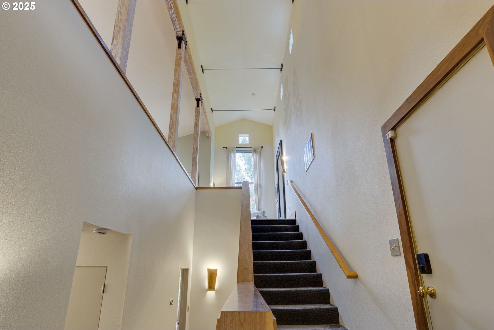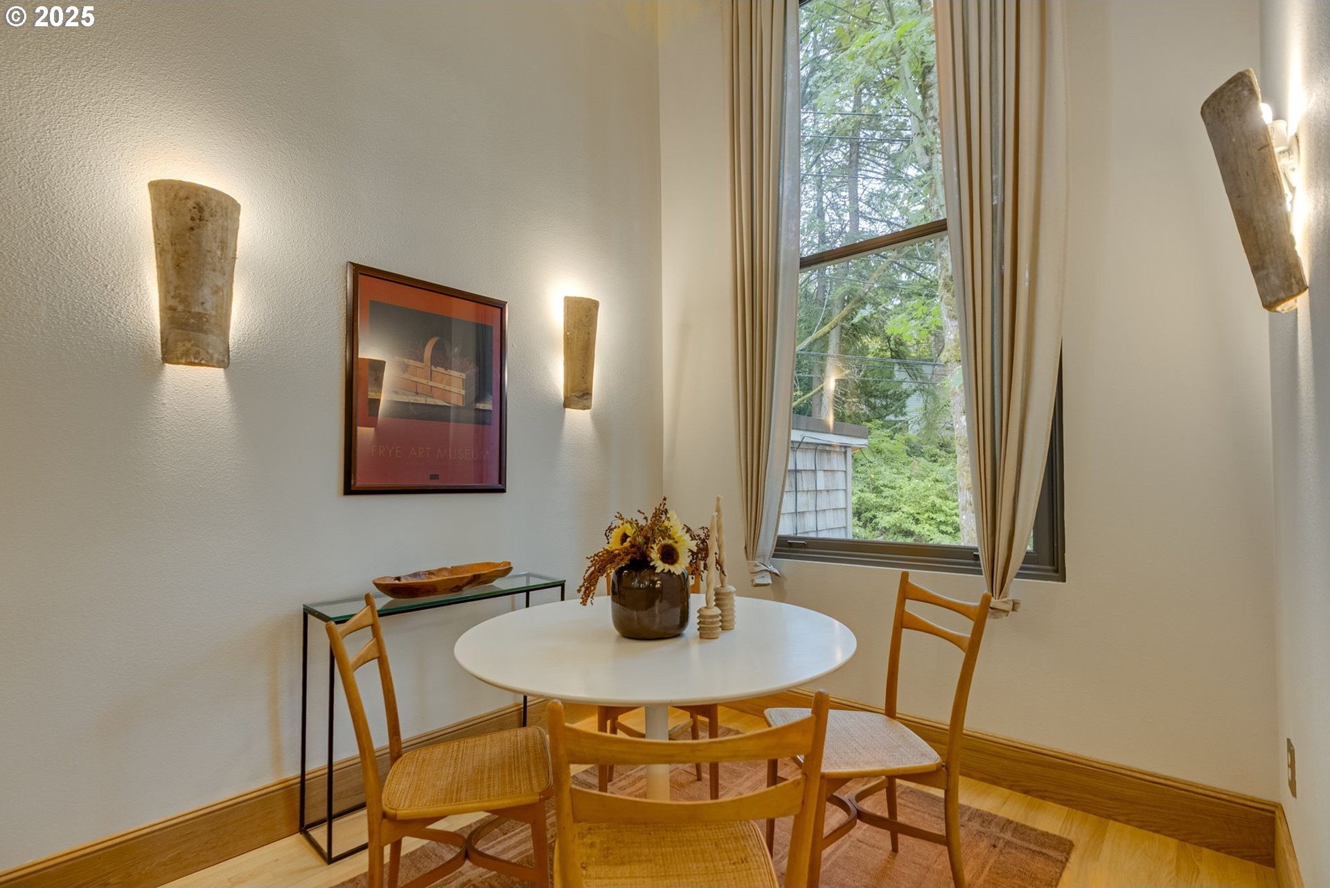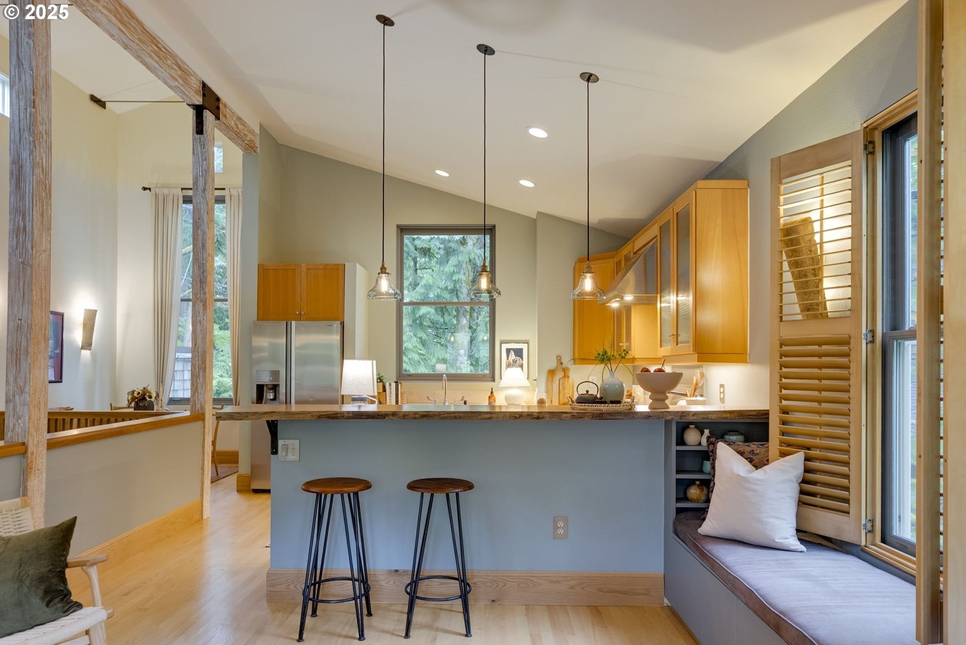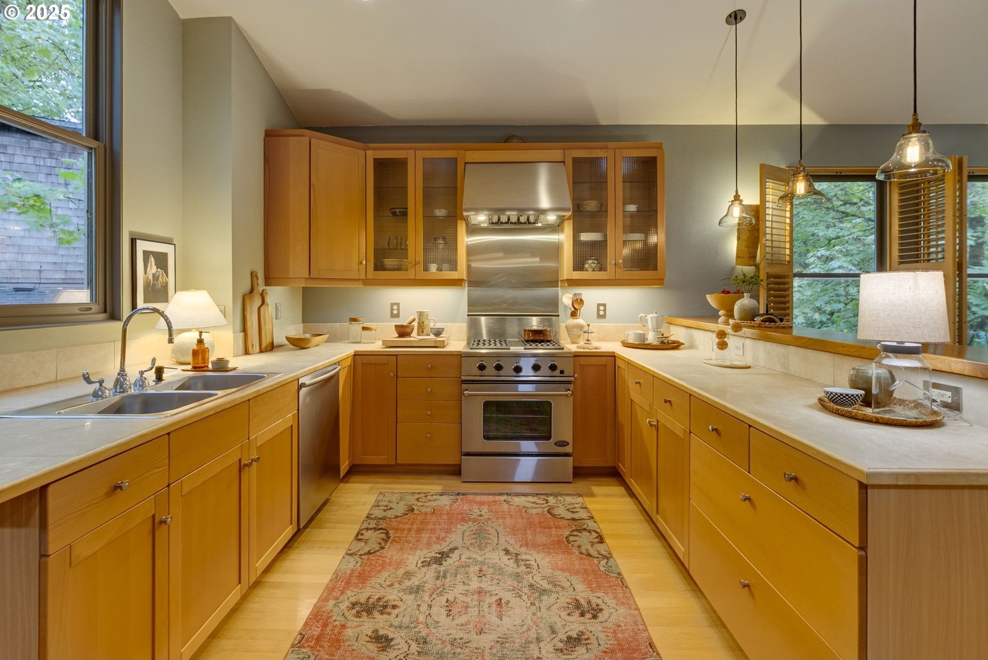 Modern Treehouse Living in Sylvan Heights! Perched above the street and nestled among the trees, this custom-built 1998 NW contemporary home offers a rare blend of architectural charm, natural beauty, and urban convenience. Designed to feel like a luxury treehouse, the home features soaring windows, vaulted ceilings, and clean modern lines that bring in abundant natural light and serene, wooded views from every room. The open concept invites both entertaining and everyday living, with a spacious kitchen equipped with modern cabinetry, stainless steel appliances, and ample storage. A cozy wood-burning fireplace anchors the living room, while expansive outdoor decks offer seamless indoor-outdoor living. Expansive living on three levels. The flexible floor plan includes a generous primary suite, a lower-level guest suite, a dedicated home office, and a versatile bonus room—ideal for gathering or finding a quiet retreat. Tucked into a peaceful residential loop just minutes from Washington Park, Forest Park, the Oregon Zoo, and NW 23rd Avenue, this home offers the best of Portland living. Enjoy easy access to downtown, top-rated schools, and miles of nearby trails. Whether you're sipping coffee among the treetops or hosting dinner with friends, this home offers a unique opportunity to live in nature—without leaving the city. [Home Energy Score = 4. HES Report at https://rpt.greenbuildingregistry.com/hes/OR10242157]