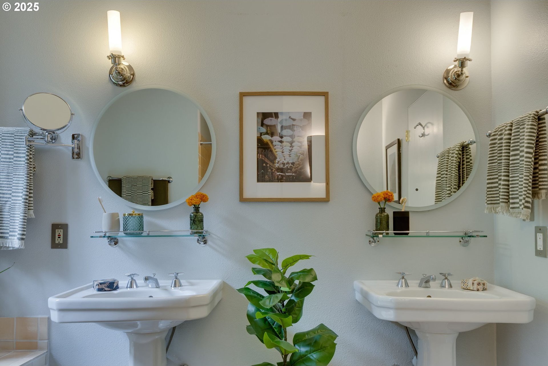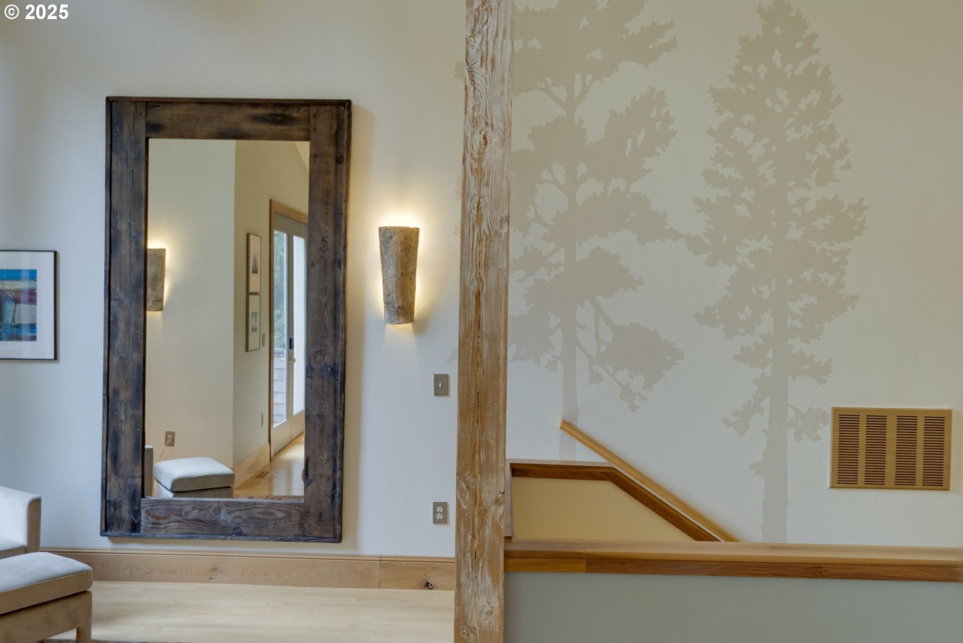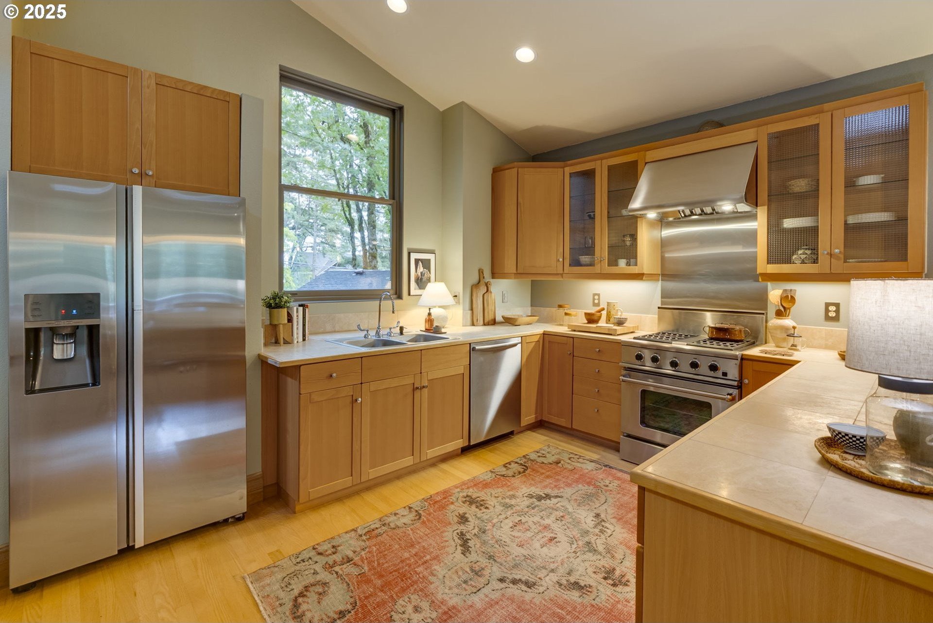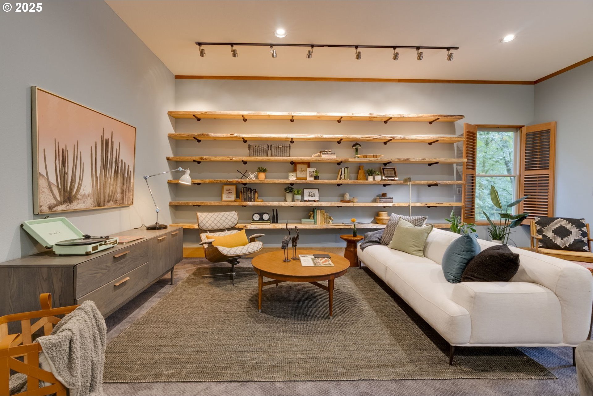 Modern Treehouse Living in Sylvan Heights! Perched above the street and nestled among the trees, this custom-built 1998 NW contemporary home offers a rare blend of architectural charm, natural beauty, and urban convenience. Designed to feel like a luxury treehouse, the home features soaring windows, vaulted ceilings, and clean modern lines that bring in abundant natural light and serene, wooded views from every room. The open concept invites both entertaining and everyday living, with a spacious kitchen equipped with modern cabinetry, stainless steel appliances, and ample storage. A cozy wood-burning fireplace anchors the living room, while expansive outdoor decks offer seamless indoor-outdoor living. Expansive living on three levels. The flexible floor plan includes a generous primary suite, a lower-level guest suite, a dedicated home office, and a versatile bonus room—ideal for gathering or finding a quiet retreat. Tucked into a peaceful residential loop just minutes from Washington Park, Forest Park, the Oregon Zoo, and NW 23rd Avenue, this home offers the best of Portland living. Enjoy easy access to downtown, top-rated schools, and miles of nearby trails. Whether you're sipping coffee among the treetops or hosting dinner with friends, this home offers a unique opportunity to live in nature—without leaving the city. [Home Energy Score = 4. HES Report at https://rpt.greenbuildingregistry.com/hes/OR10242157]