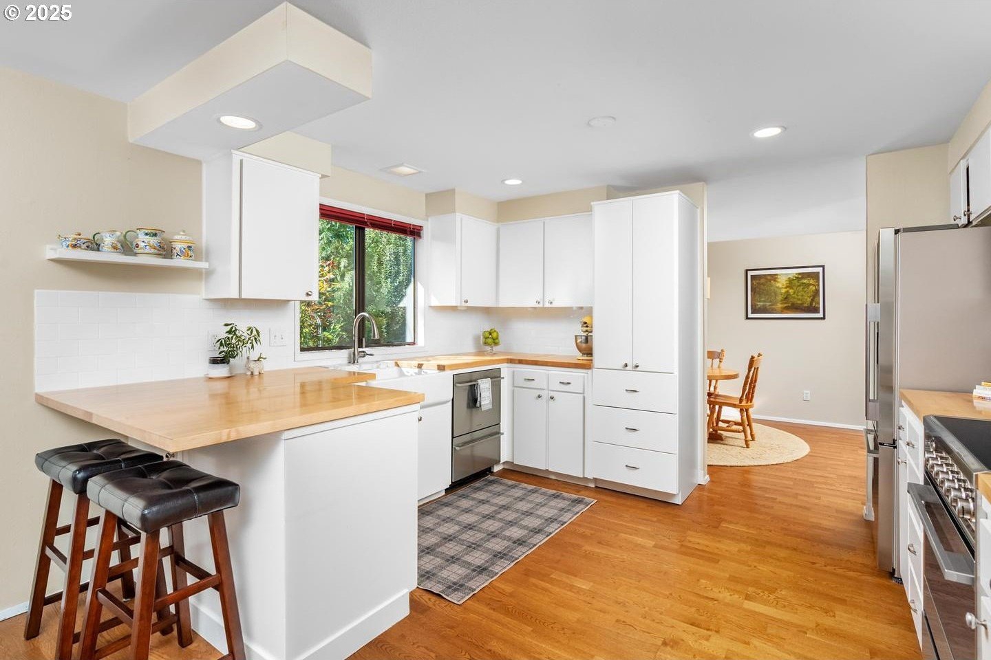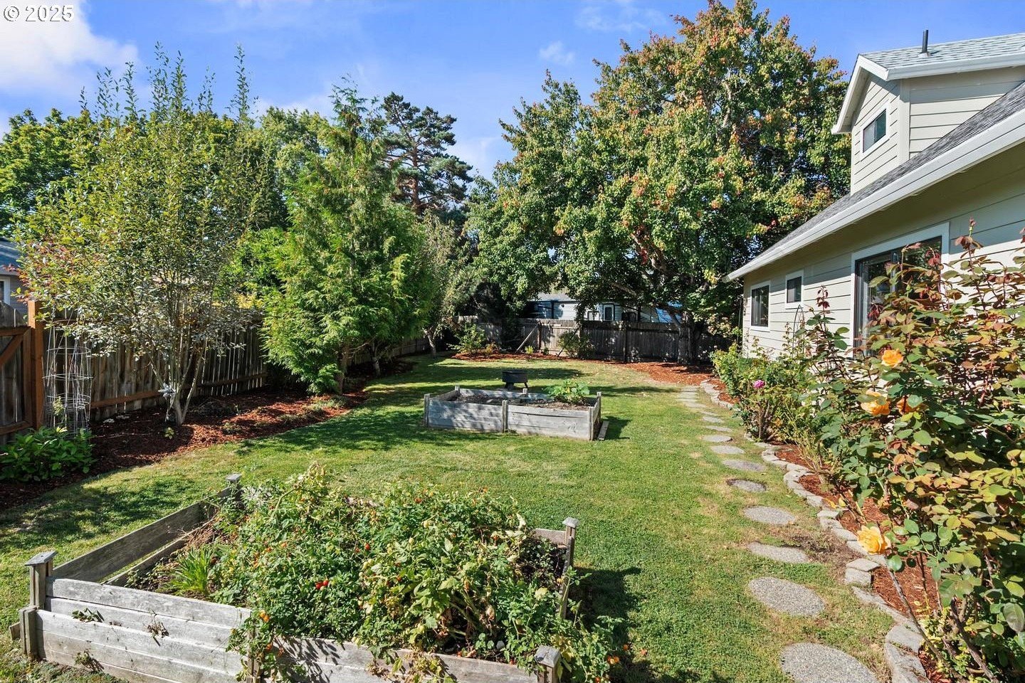 Open House: Sunday 10/5, 12-2 | Charming North Beaverton Traditional on Quiet Cul-de-sac, Conveniently Located Between Cornell Rd & Walker Rd Within Westview High School Boundary. Perched Above Street Level With a Welcoming Front Porch & Tremendous Curb Appeal This Lovingly Maintained Home Awaits Its New Owner. The Gorgeous Remodeled Farmhouse Style Kitchen Features White Custom Cabinetry, Upscale Stainless Steel Appliances & Butcher Block Counters. The Kitchen Opens To The Family Room & Sunny Entertainer's Patio. Gorgeous Engineered Hardwood Floors Extend Throughout The Entire Main Level To Complete The Updated Look. The Layout Offers Nice Separation Between Bedrooms With The Primary & Second Bedroom on Main + 2 More Large Bedrooms Upstairs. Each Bathroom Is Updated With Designer Style & Tub/Shower Combination. The Fully Fenced, South Facing & Flat Backyard Is a Gardener's Dream With Mature Fruit Trees & Raised Garden Beds! All Major Systems & Mechanicals Have Been Installed Within Last 10 Years. Located Just 3 Blocks From 10 Acre Autumn Ridge Park With Playground & Trails. Quick Access to Hwy 26, Intel, Nike, THPRD, Tanasbourne Conveniences. This Home is Very Special!