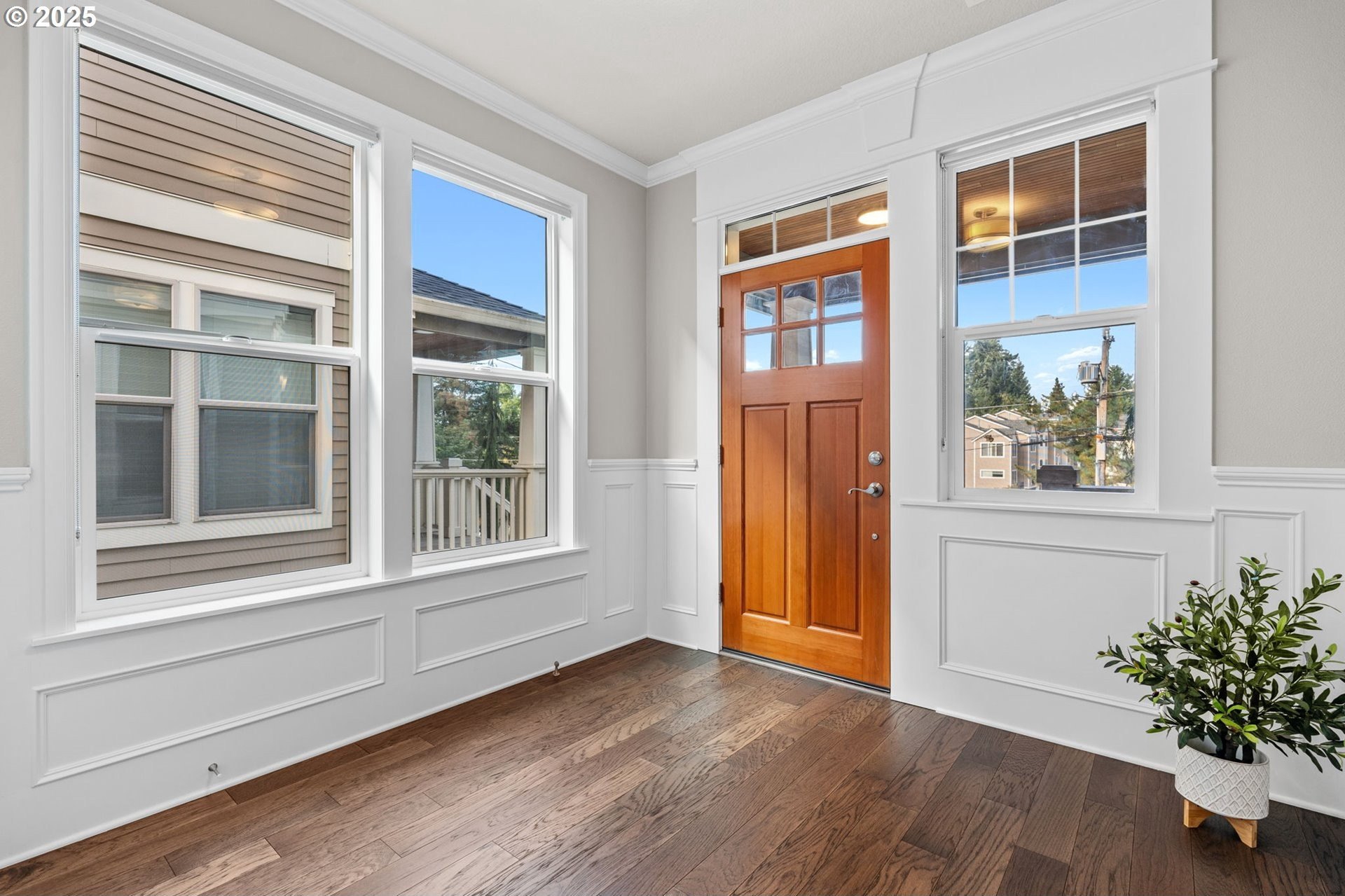 Welcome to this energy-efficient, beautifully designed home in the heart of Portland’s beloved Multnomah Village. Thoughtfully crafted with modern conveniences and timeless details, this residence offers a perfect blend of style, comfort, and location. Inside you’ll find engineered hardwood floors, box-and-beam ceilings, wainscoting, custom built-ins, and amazing storage throughout. The gourmet kitchen features slab quartz countertops and stainless steel appliances, ideal for everyday cooking or entertaining.Upstairs, the spacious primary suite is a retreat with double sinks, a soaking tub, a tiled shower, and a walk-in closet. Additional bedrooms and flexible living spaces provide room for family, guests, or home office needs. High-efficiency systems and quality construction deliver comfort and lower utility costs year-round. The lower level includes a separate entrance and offers ADU potential with only minor modifications, providing future flexibility for multigenerational living or rental income. Ideally situated near Portland’s best shopping, dining, and entertainment, with downtown just minutes away, this residence offers the perfect blend of energy efficiency and modern living in a highly sought-after neighborhood.