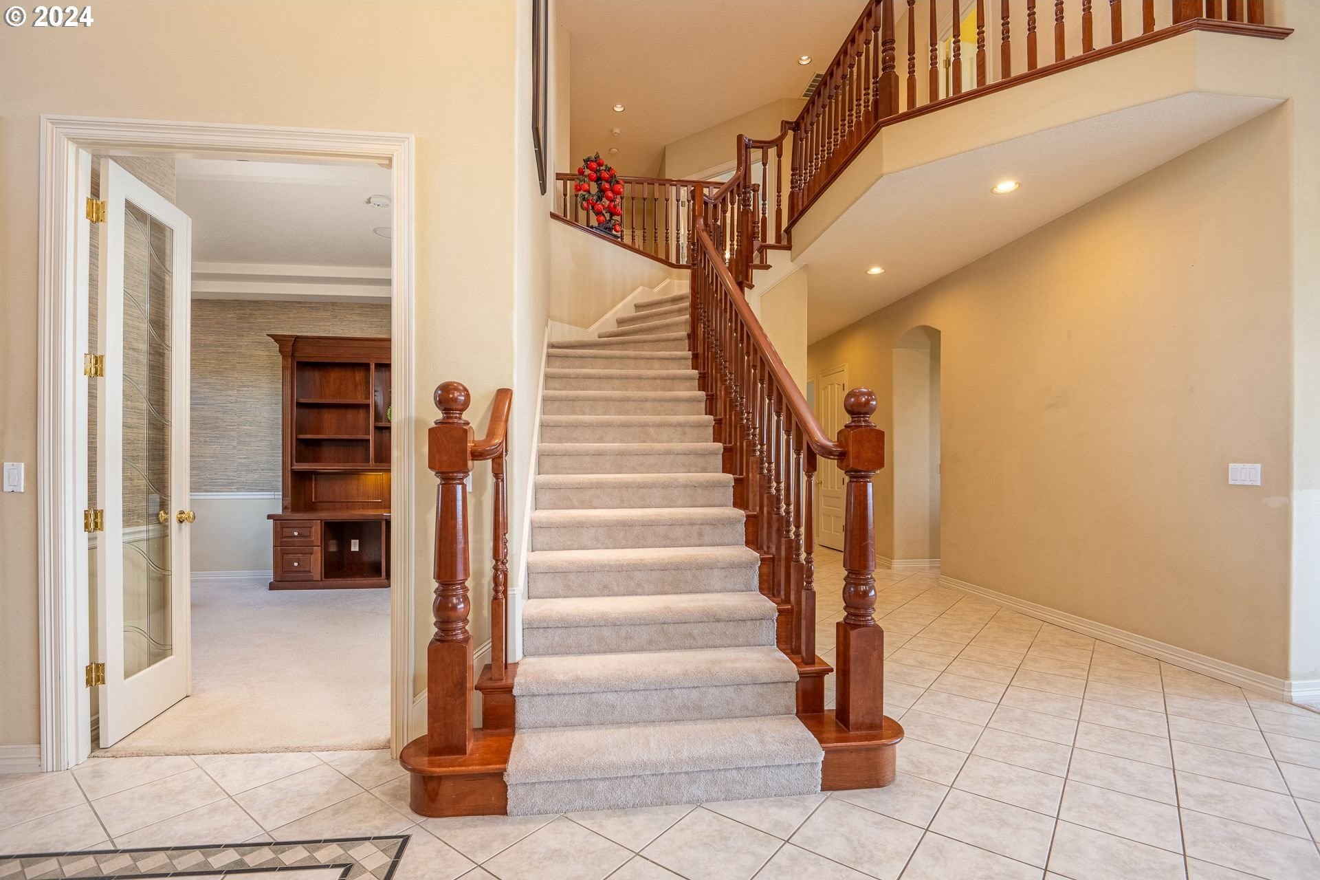 Open house 10/5/25 12-3PM. Price reduced. Welcome to an exquisite, fully custom-built residence with City view at the John Creek of Happy Valley, this luxury home was one of the Altamont 1999 streets of dream house. This spacious and elegantly designed house with 5 bedrooms, and three car garage, offers ample space for family and guests. one bedroom and office and gym room on the main floor. The open, gourmet kitchen with refinished cabinets. special commercial hood, dishes warmer and extra cooler, built in gas range, pantry, abundance of storage, and gorgeous island. It is perfect for culinary adventures. Special mahogany cabinets are installed in the office and family room. The master suite is a luxurious retreat, complete with a fireplace, spa-like, en-suite bathroom, walk-in closet, and balcony with view. Two bedrooms on the 2nd floor with adjoining bathroom and balcony. Enjoy the City view from living rooms, kitchen and deck area. Maintenance-free backyard, ideal for both lavish parties and serene relaxation. This luxurious home is just moments away from the highway, fine dining and shopping, combining the best of both worlds. Experience unparalleled luxury, convenience, and serenity in this exceptional Happy Valley home, designed for grand living and exquisite entertaining. Central air and vacuum, set up for surround sound, custom build ironwood deck, new carpet, and fresh paint in interior and deck, updated all new LED lights in whole house, refresh landscaping with water features and 4 new sprinkle controls. A Must-see. Don't want to miss this beautiful house.