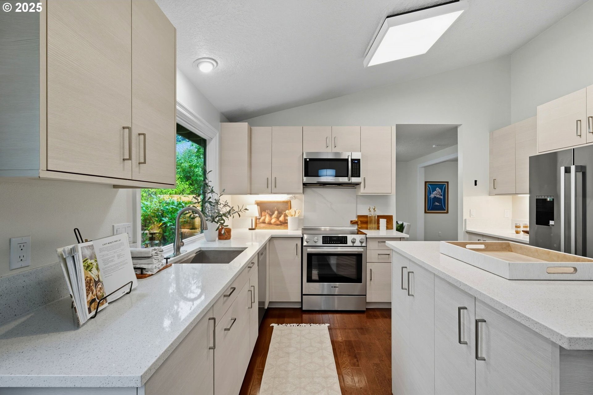 Set in one of Lake Oswego’s most desirable pockets, this 4-bedroom, 2.5-bath home offers nearly 2,700 square feet of light-filled living in the award-winning Lake Oswego School District. From here, you can walk to Lakeridge High School, the brand-new LORAC Aquatic & Recreation Center, and Hazelia Field’s trails, playgrounds, and sports facilities.Inside, oversized wood-trimmed windows and hardwood floors bring warmth and natural light to the formal living and dining rooms. The expansive kitchen with breakfast bar and casual dining flows easily into the family room, creating the perfect hub for gatherings both large and small. Upstairs, a spacious primary suite with walk-in closet and private bath is complemented by generous secondary bedrooms, offering comfort and privacy for the whole household.Outdoors, landscaped pathways lead to a private yard with a level paver patio, ideal for entertaining or unwinding at the end of the day. Additional features include an attached 2-car garage, plenty of storage, and eligibility to apply for Greentree Pool membership.Blending space, lifestyle, and location, this is a rare opportunity to call home in the quiet and coveted Sunny Hill neighborhood