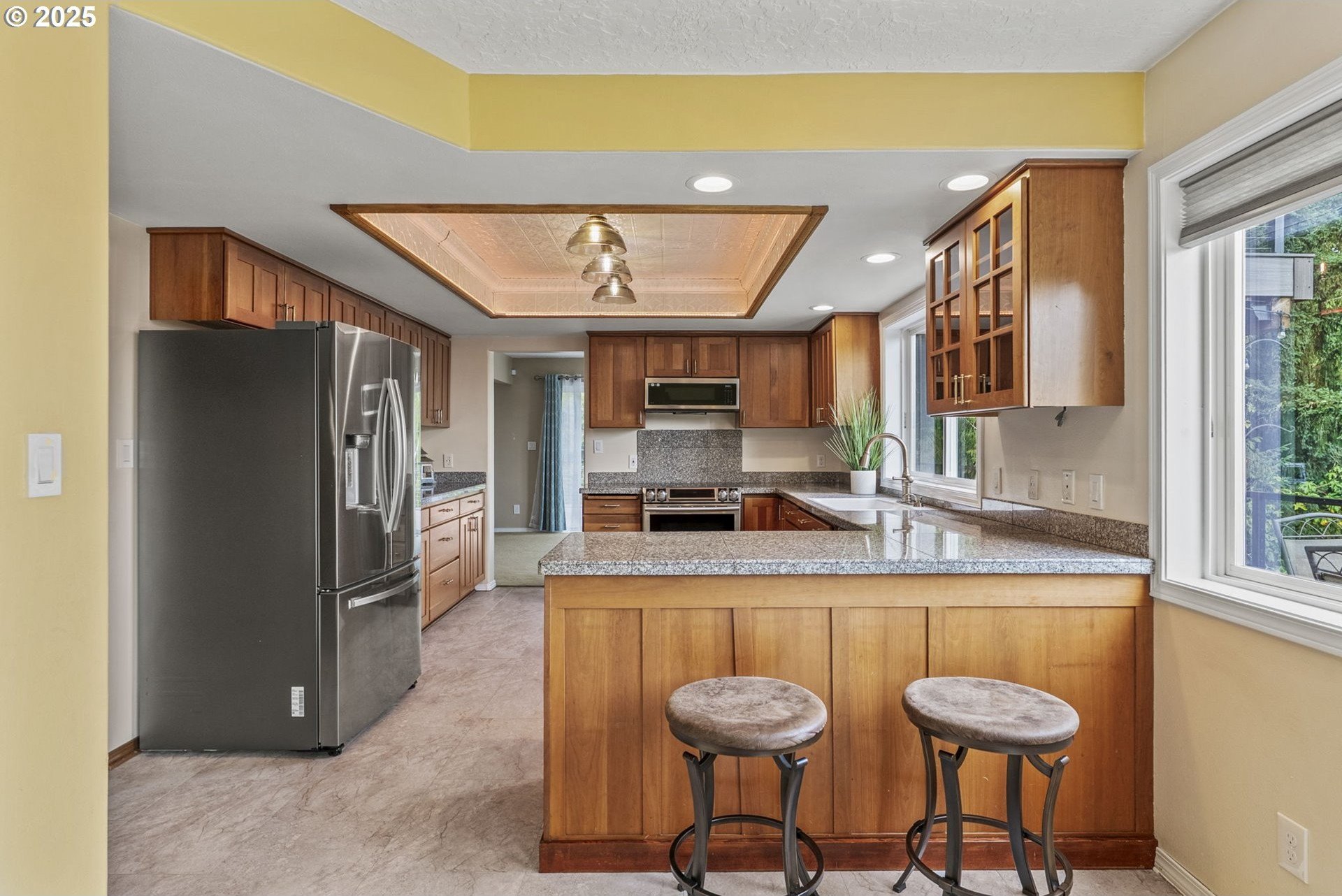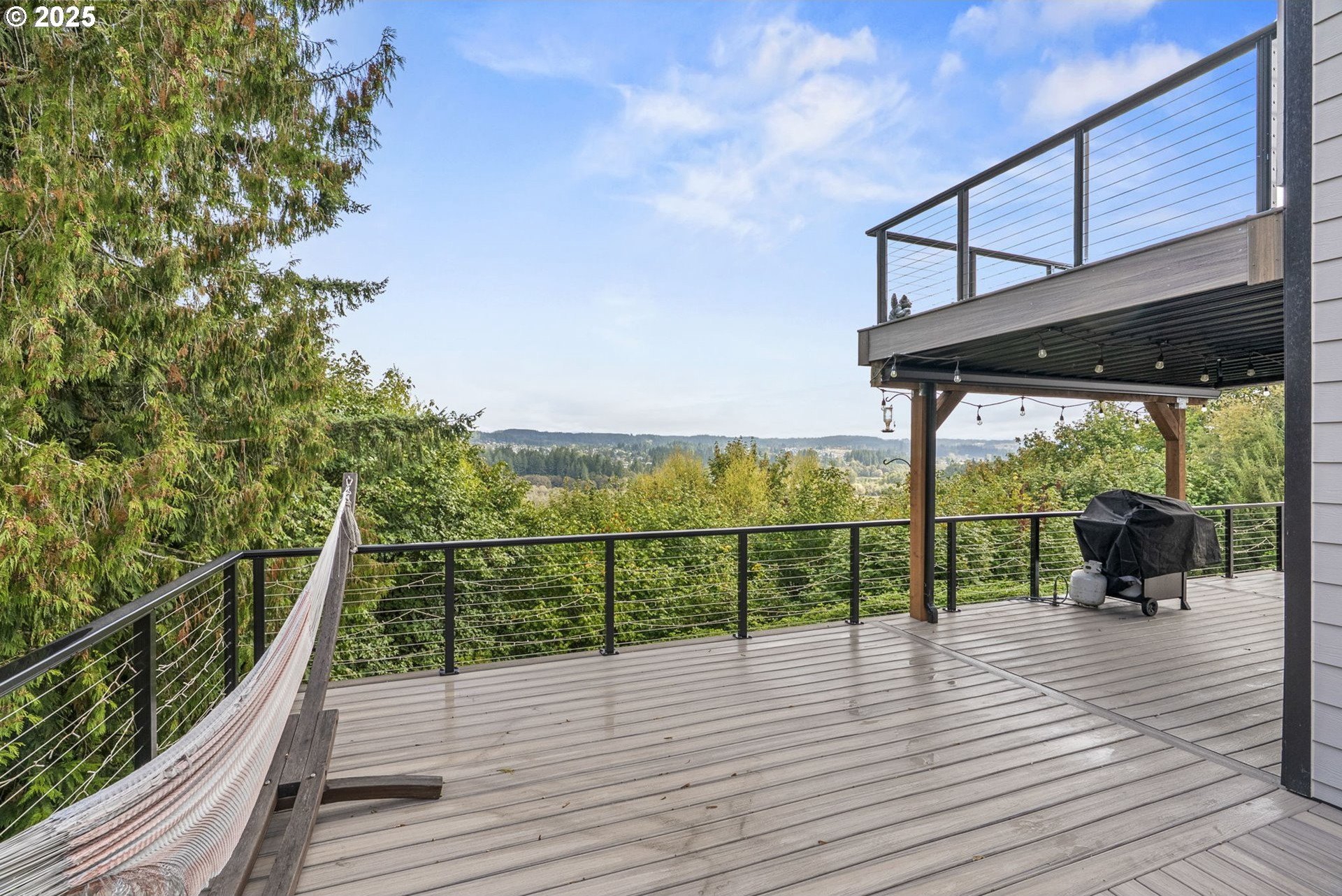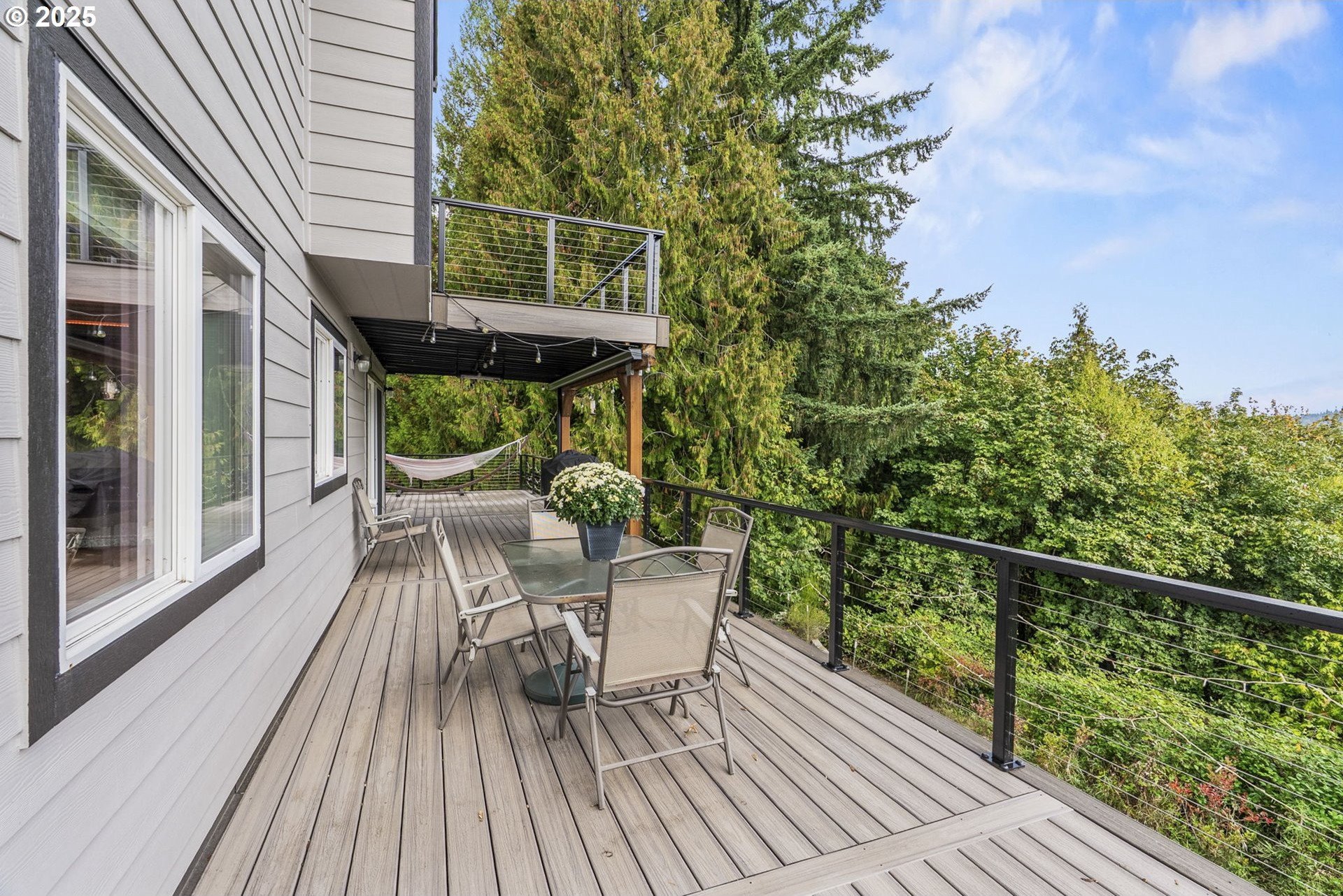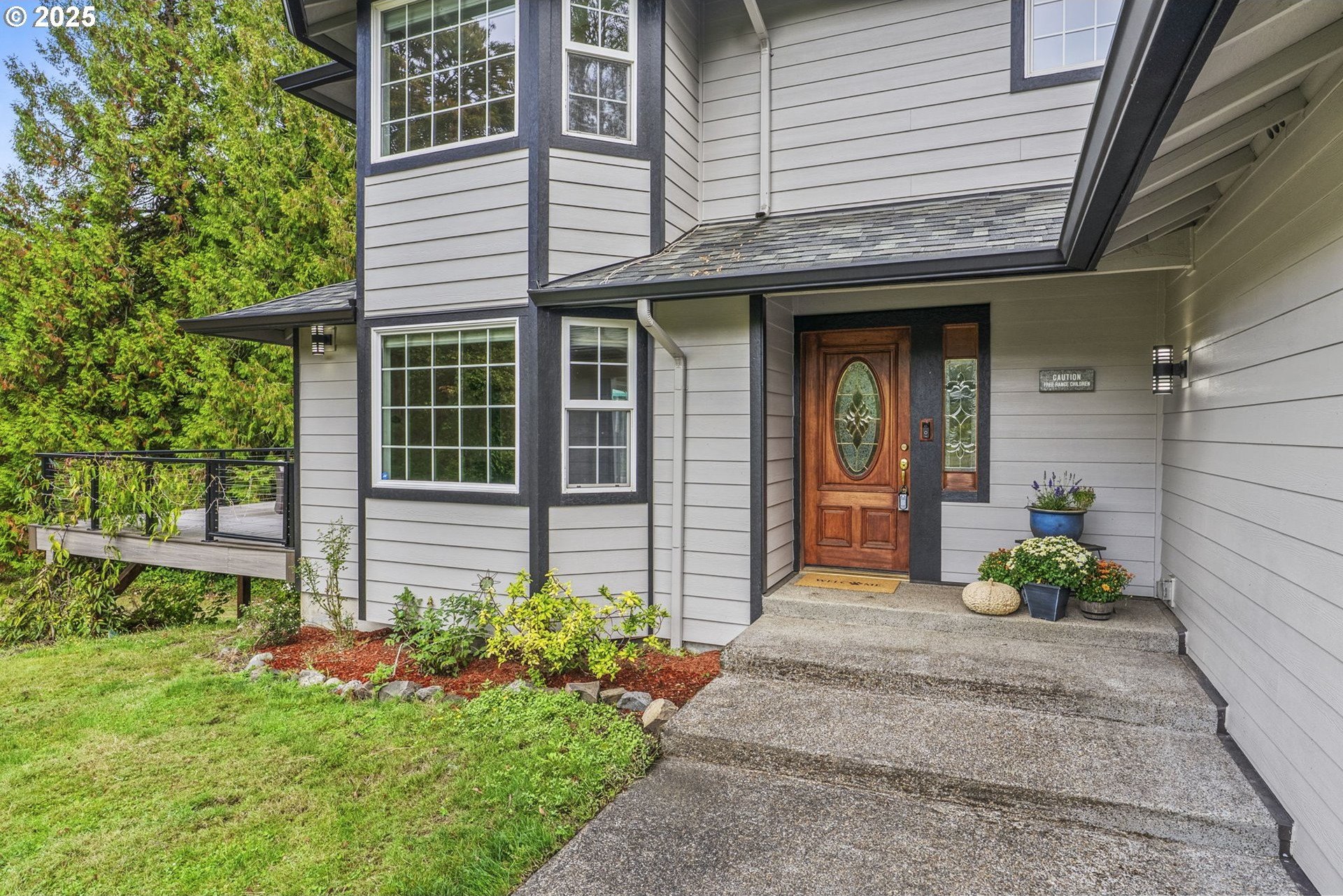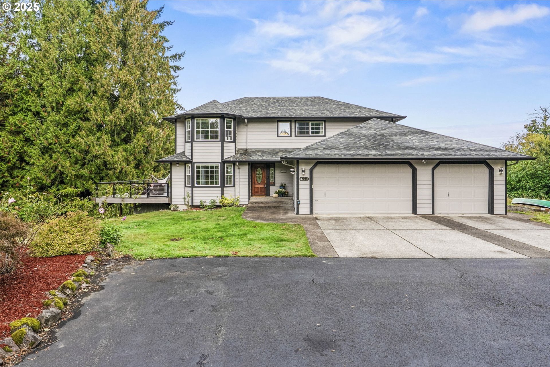 Perched on the rim of the Lewis River, this stunning 3-level Ridgefield home combines breathtaking views, versatile living spaces, and a rare 5-acre setting. From the decks and windows you can take in sweeping vistas of the river valley, the historic town of La Center below, Mt. St. Helens, and Mt. Adams. The surrounding wetlands attract diverse wildlife—bird lovers will especially enjoy watching the white Trumpeter Swans that winter in the lowlands.Designed for indoor-outdoor living, the home features over 1,500 sq. ft. of composite decking across 3 levels. The main wraparound deck extends from the dining and living areas, while the private upper deck connects directly to the spacious Primary Suite. A third covered deck below offers year-round outdoor enjoyment.Inside, the gourmet kitchen shines with granite counters, tiled flooring, stainless steel appliances, inlaid lighting, a huge picture window, and an eating bar. The living room with propane stove, large family room, and oversized bedrooms—each with walk-in closets—create abundant comfort. The luxurious Primary Suite boasts a jetted tub, dual sinks, walk-in shower, and private deck access.The lower level provides flexible multi-generational living with its own primary-style bedroom, full bath, exterior entrance, and covered deck. Exceptional storage is found throughout, plus a 3-car extra-deep garage with workbench.Property highlights include fruit trees, blueberry bushes, RV parking, a paved driveway, and two heat pumps for year-round efficiency. A private trail for Eagle Crest residents leads to the Lewis River for hiking, canoeing, birdwatching, swimming, and paddleboarding.Conveniently located near the new Ridgefield Costco, Ilani Casino, and I-5, this property offers privacy, nature, and accessibility—an extraordinary combination in a classic design home.