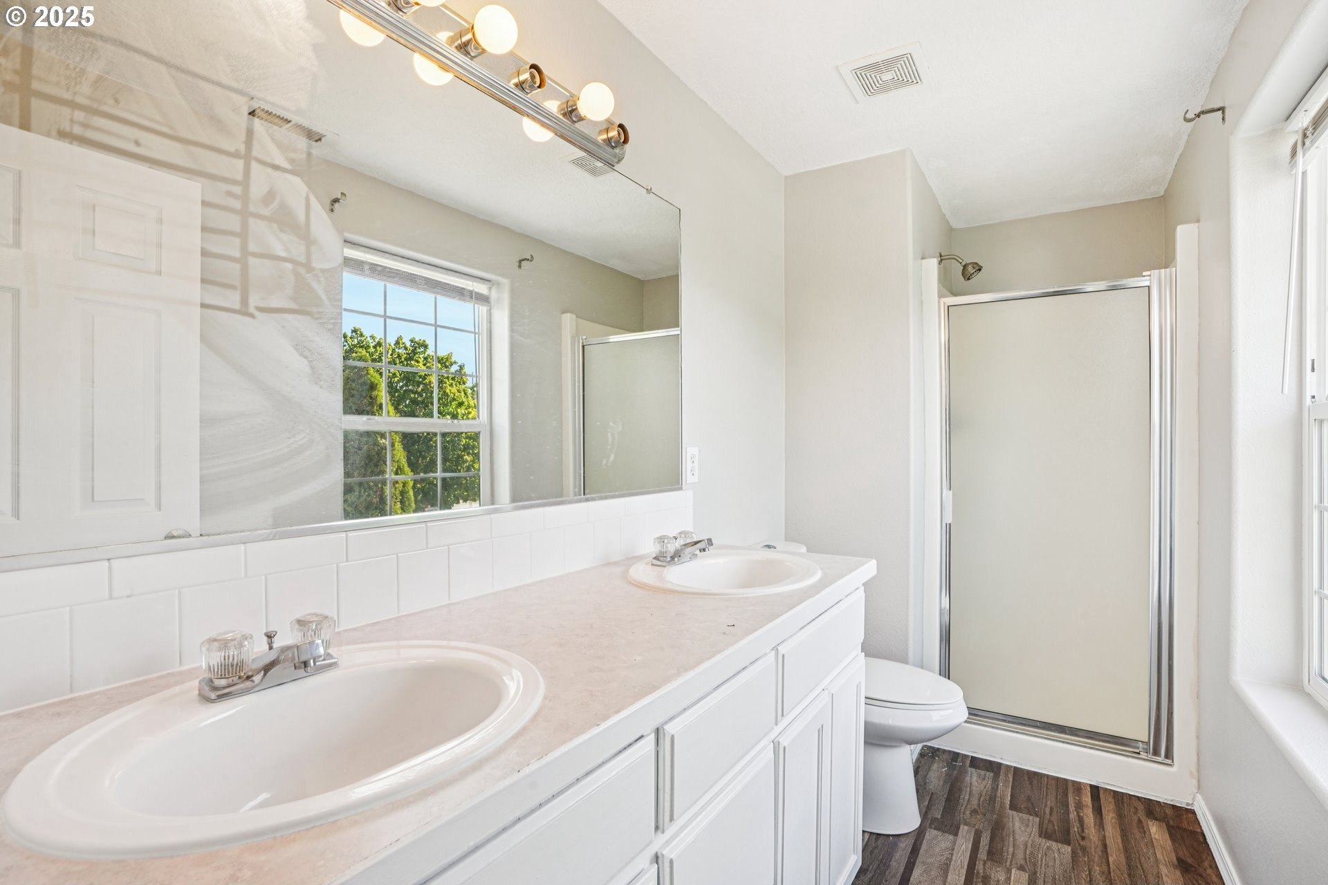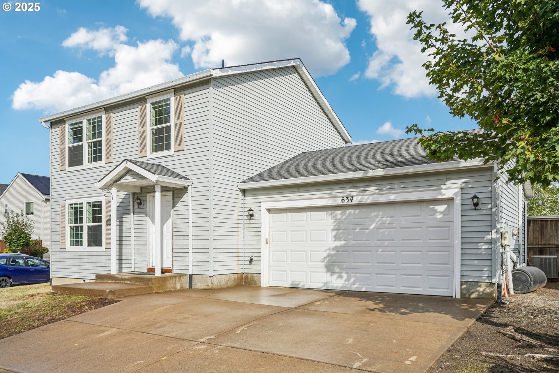 Welcome to this bright, airy, and beautifully maintained 3-bedroom, 2.5-bath home located in the desirable Council Creek Estates community. Fresh interior paint and brand-new carpet throughout make this home truly move-in ready. Designed for easy living, the smart floor plan features all bedrooms conveniently located upstairs, including a spacious primary suite complete with an en-suite bathroom and generous closet space. Two additional well-sized bedrooms and a full bath provide comfort and flexibility for family, guests, or home office needs. Downstairs, enjoy seamless flow between the living room, dining area, and kitchen—perfect for entertaining or everyday living. The cozy gas fireplace in the living room adds warmth and charm, while the tiled kitchen and dining areas offer durability and easy maintenance. Large windows bring in ample natural light, enhancing the open feel of the home. Situated on a sunny corner lot, this property offers a fully fenced yard—ideal for play, pets, or peaceful outdoor relaxation. Whether you're hosting a BBQ, gardening, or simply enjoying the sunshine, you'll appreciate the privacy and space this lot provides. Don’t miss this opportunity to own a well-cared-for home in a fantastic neighborhood close to parks, schools, and local amenities!