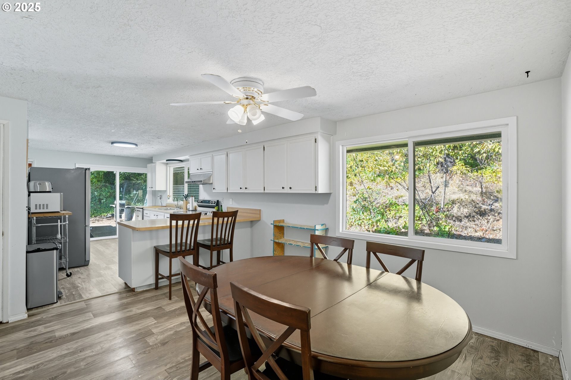 This home offers the perfect blend of privacy and convenience. With a spacious floor plan, it provides 3 bedrooms, 2 baths plus bonus spaces for work and play. Step inside to a bright living room with fresh flooring and bold accent walls. The kitchen is open and functional with ample counter space and a breakfast bar that flows into the dining area. Large windows throughout bring in plenty of natural light with views of the surrounding greenery. The primary suite features its own bath while additional bedrooms and bonus rooms give you space for family, guests or a home office. The setting feels like a woodland retreat while not to far from school, shopping and all that Oregon City has to offer.