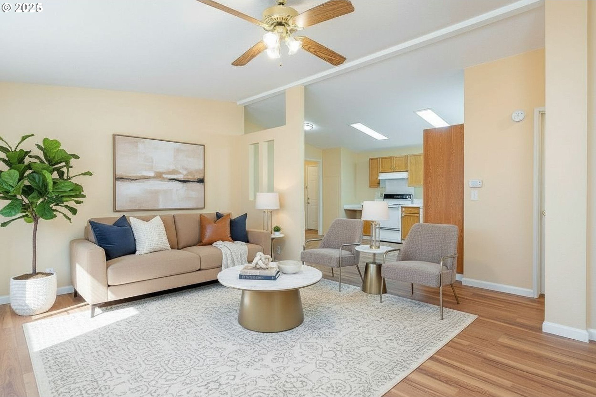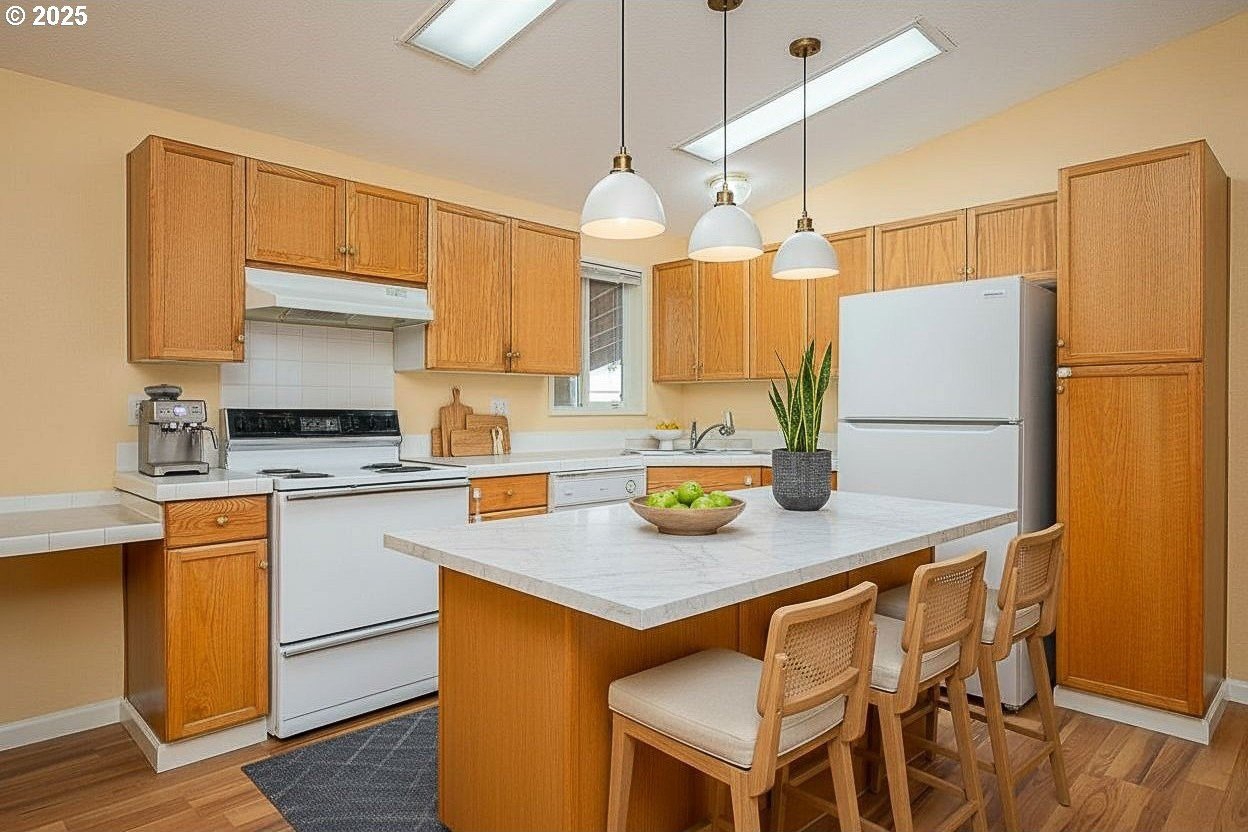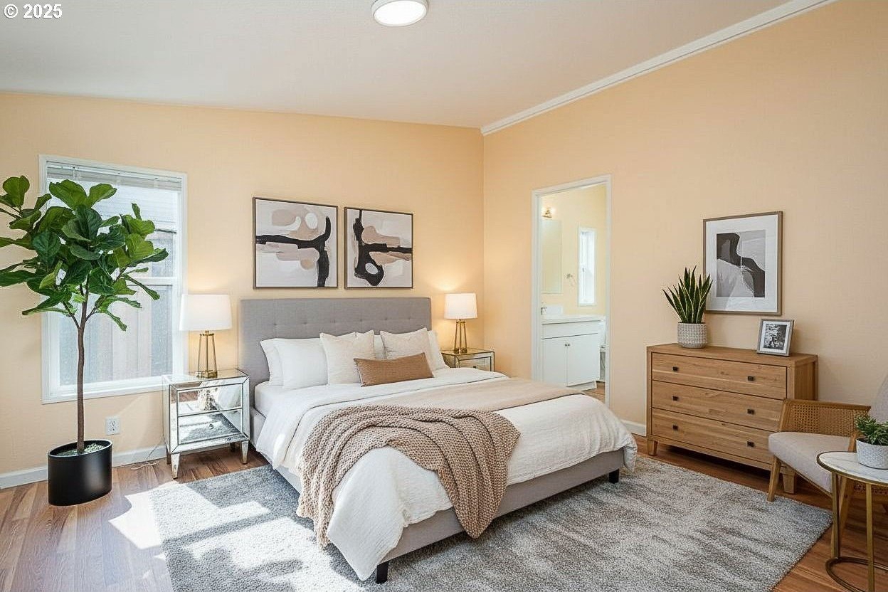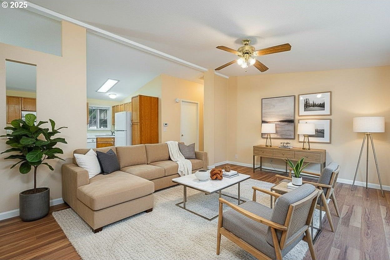Why rent when you can own and start building equity in this beautifully maintained, one-level, move-in-ready home!Step inside this spacious 3-bedroom, 2-bath, 1,188 sq. ft. residence featuring an open-concept design ideal for today’s modern lifestyle. The light and bright inviting living room flows seamlessly into the kitchen and dining areas—perfect for entertaining friends or enjoying quiet evenings at home. You'll love the brand-new plank laminate flooring throughout the home giving every room a fresh, modern wood look with easy care durability. The elegant primary suite offers exceptional privacy, featuring a luxurious ensuite bathroom with a relaxing soaking tub—your own personal spa retreat. Two additional bedrooms are thoughtfully positioned on the opposite side of the home, conveniently located near the second full bath with a tub/shower combination. This home offers you the privacy and pride of having your own home.You’ll also appreciate the dedicated utility room with washer and dryer hookups, built-in cabinetry, and extra storage—making laundry day simple and organized.Additional features include a large separate storage room off the carport, low-maintenance landscaping with fencing, and a peaceful, well-kept neighborhood surrounded by attractive homes. The HOA fee of just $232 per month pays for water and sewer, adding value and convenience.This charming 1999 manufactured home is ideally located in one of Portland’s most desirable close-in areas—just minutes from the Portland Yacht Club and scenic Marine Drive, with beautiful river-view walking and biking paths nearby.A perfect blend of comfort, style, and affordability—come see why this home is such an exceptional find!Home is VIRTUALLY STAGED - to show you the many design options this home has to offer.