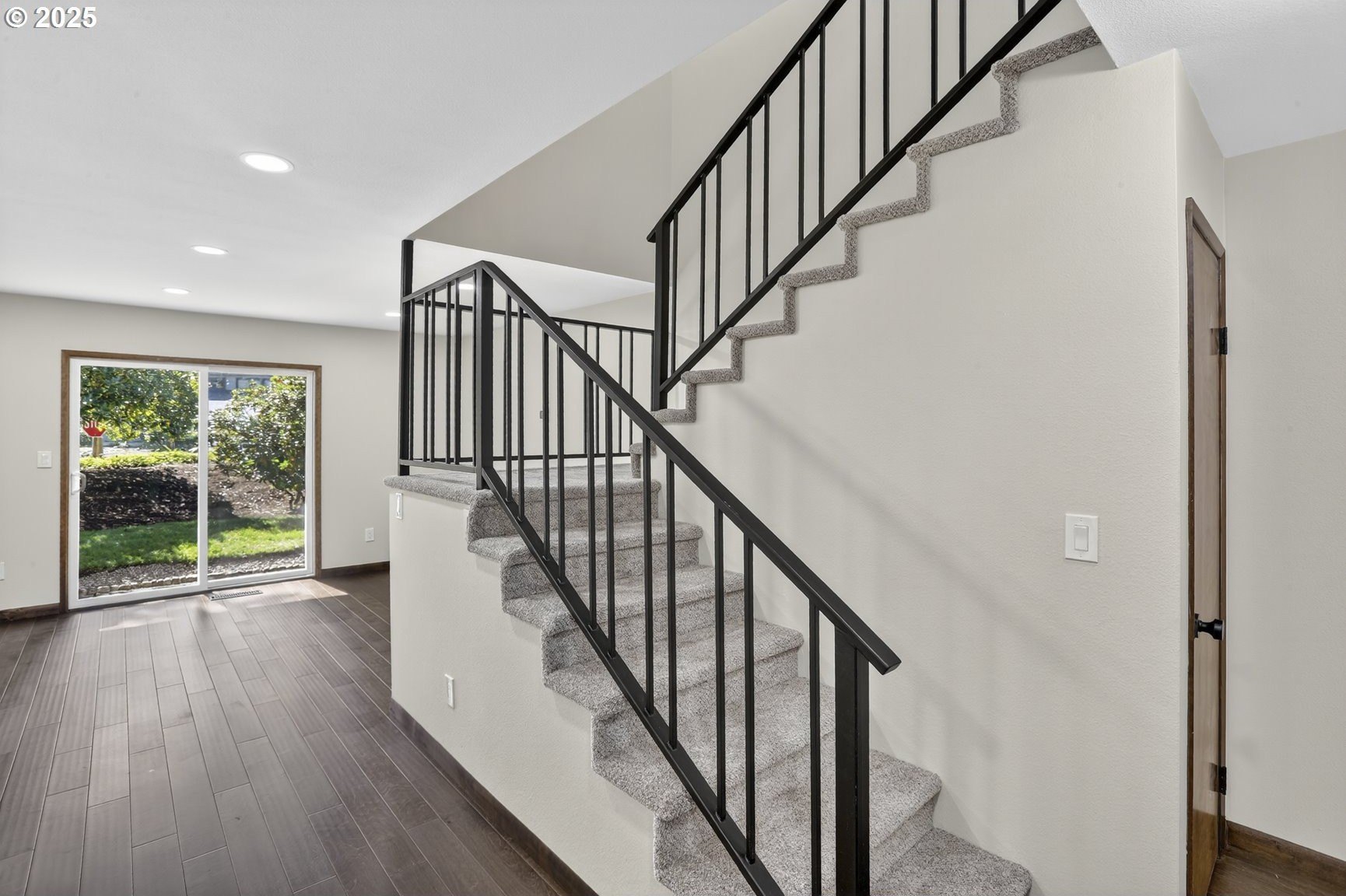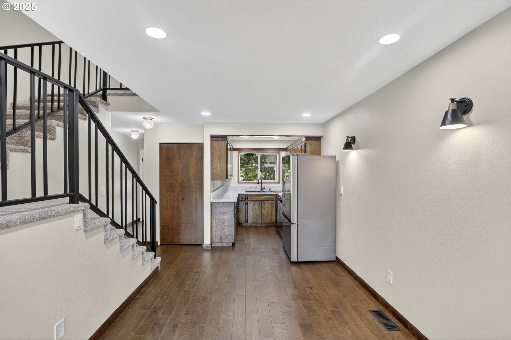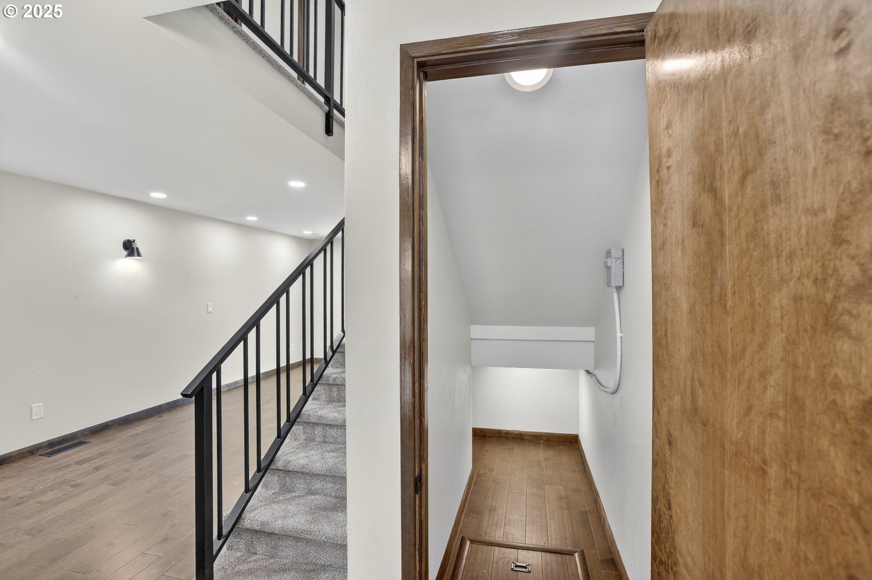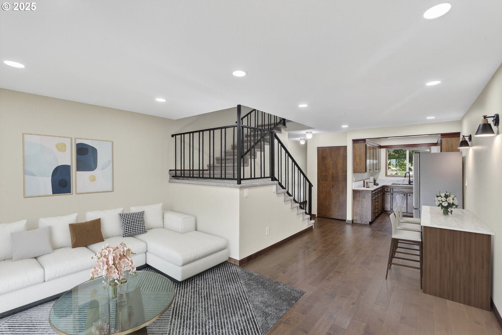 Vintage charm meets Modern amenities in this over-the-top restoration-renovation at Jantzen Beach Village! No surface was left untouched in this methodical and tasteful revitalization. Step back in time with period light fixtures and restored fir millwork, doors, and kitchen cabinetry, juxtaposed amongst all new mechanical systems, surfaces, & fixtures. You won't find any grey LVP nor white pressboard trim in this unit; quality abounds! New air handler, oversized heat pump, water heater, electrical panel, & new lifetime warranty Milguard windows and doors for lowest possible electric bill! NO popcorn ceilings in this unit! Abated to make way for all adjustable-zoned led recessed and fixture lighting throughout! High end Samsung appliances round out the monthly savings! The kitchen has 1" quartz slab, backsplash, and modern black stainless sink. Convenient motion and light sensor led lighting in under stair storage and rear shed will brighten the space as you open and turn off in case forgotten! The main level boasts glue down engineered hardwood flooring and stained hemlock baseboards. Vintage abounds in the 1/2 bath with black hex tile flooring, restored 70's yellow sink and toilet, accompanied with black hardware & fixtures. A custom black railing ascends to the upper level & brand-new carpeting with upgraded pad is solid & cozy underfoot! Both bedrooms have central lighting with remote ceiling fans, solid wood stained & painted millwork, & motion / light sensing lights in closets. The upstairs bath is a work of art with heated porcelain tile floors, walk in shower, high end vanity with soft close, slab top, dual undermount sinks; all in brushed gold, carrying the vintage vibe! And why not..A heated bidet! Attention to detail, period restored elements, all new mechanicals, quality fixtures, fit, & finish make this a truly 1 of a kind renovation! Unit comes with a deeded carport, rear patio, and access to all the amenities Jantzen Beach Village has to offer!!