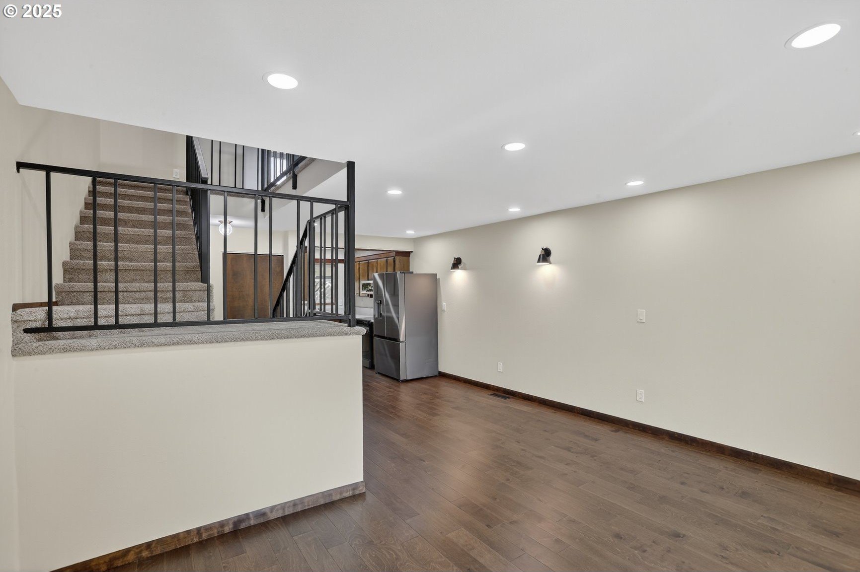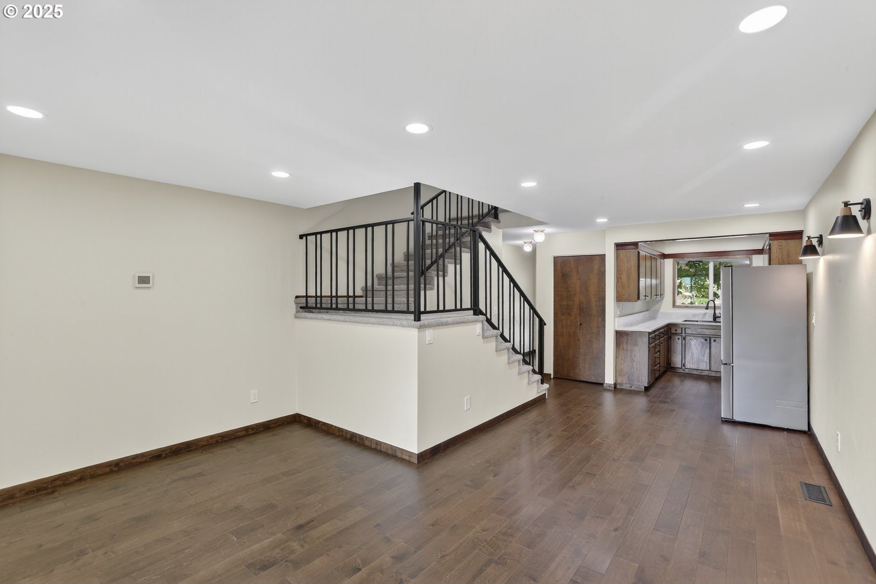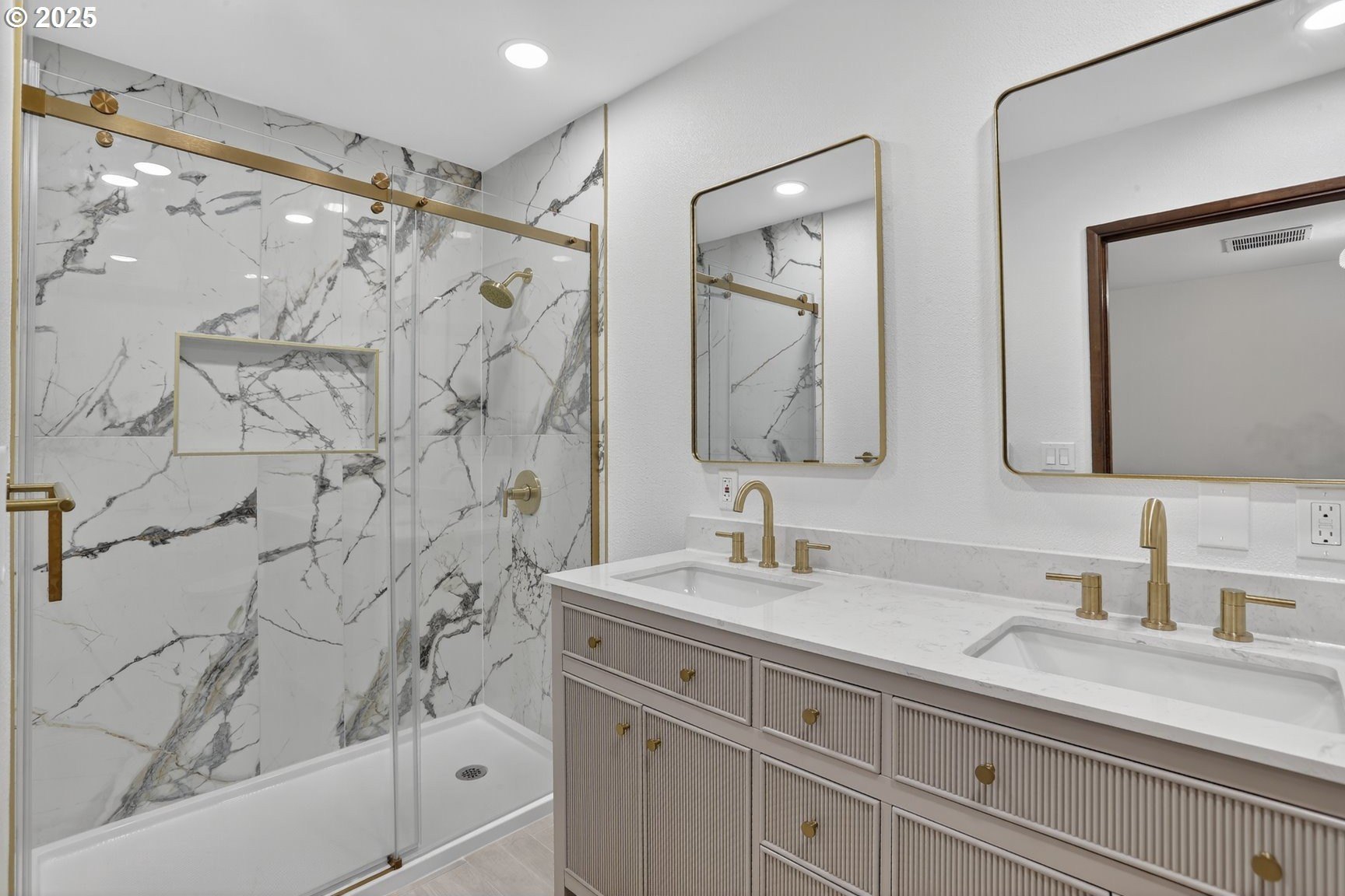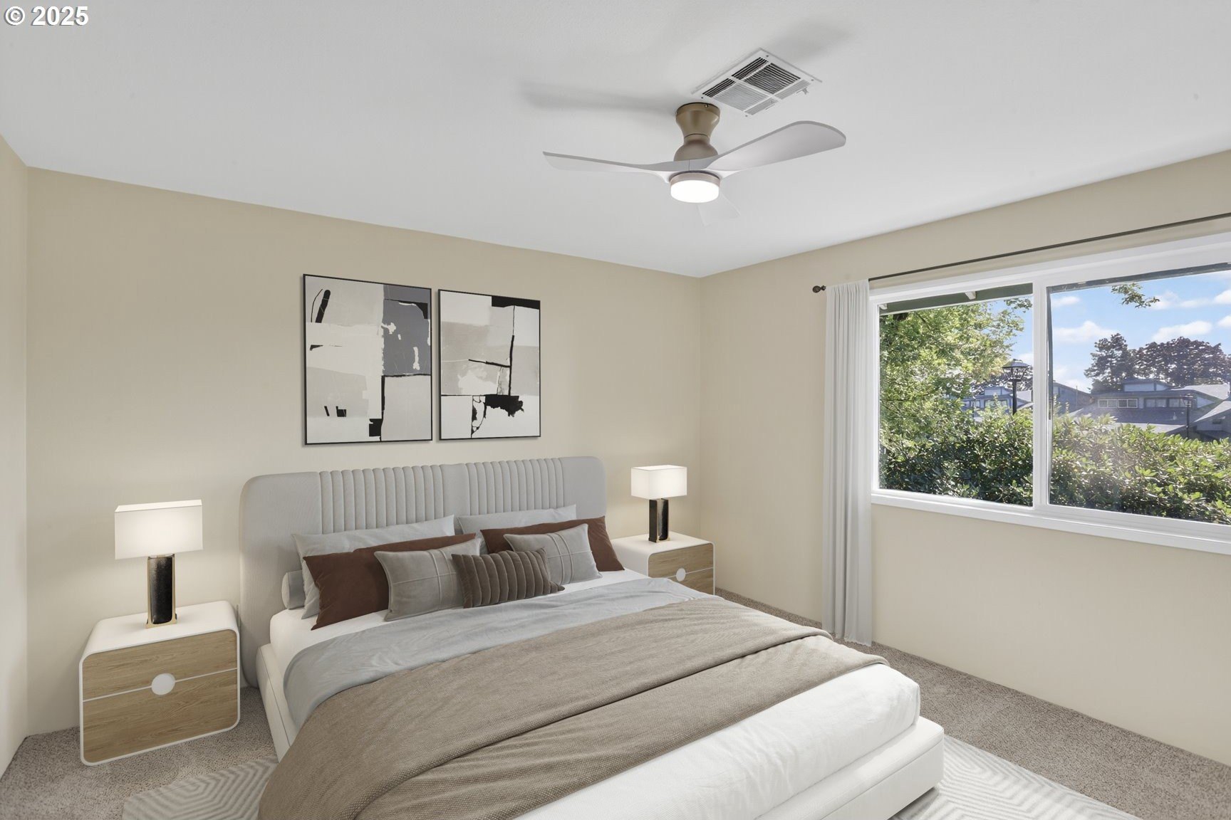 Vintage charm meets Modern amenities in this over-the-top restoration-renovation at Jantzen Beach Village! No surface was left untouched in this methodical and tasteful revitalization. Step back in time with period light fixtures and restored fir millwork, doors, and kitchen cabinetry, juxtaposed amongst all new mechanical systems, surfaces, & fixtures. You won't find any grey LVP nor white pressboard trim in this unit; quality abounds! New air handler, oversized heat pump, water heater, electrical panel, & new lifetime warranty Milguard windows and doors for lowest possible electric bill! NO popcorn ceilings in this unit! Abated to make way for all adjustable-zoned led recessed and fixture lighting throughout! High end Samsung appliances round out the monthly savings! The kitchen has 1" quartz slab, backsplash, and modern black stainless sink. Convenient motion and light sensor led lighting in under stair storage and rear shed will brighten the space as you open and turn off in case forgotten! The main level boasts glue down engineered hardwood flooring and stained hemlock baseboards. Vintage abounds in the 1/2 bath with black hex tile flooring, restored 70's yellow sink and toilet, accompanied with black hardware & fixtures. A custom black railing ascends to the upper level & brand-new carpeting with upgraded pad is solid & cozy underfoot! Both bedrooms have central lighting with remote ceiling fans, solid wood stained & painted millwork, & motion / light sensing lights in closets. The upstairs bath is a work of art with heated porcelain tile floors, walk in shower, high end vanity with soft close, slab top, dual undermount sinks; all in brushed gold, carrying the vintage vibe! And why not..A heated bidet! Attention to detail, period restored elements, all new mechanicals, quality fixtures, fit, & finish make this a truly 1 of a kind renovation! Unit comes with a deeded carport, rear patio, and access to all the amenities Jantzen Beach Village has to offer!!