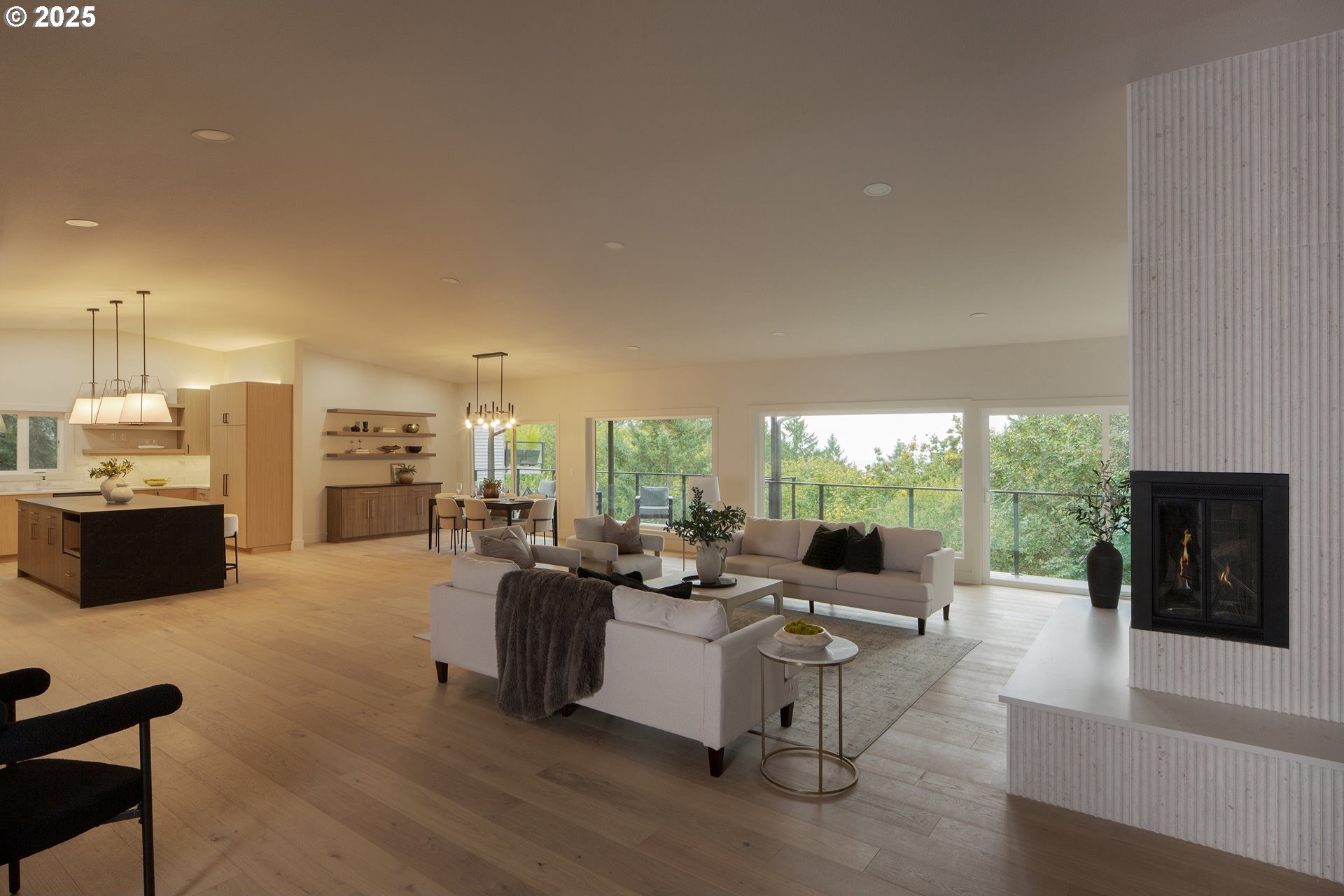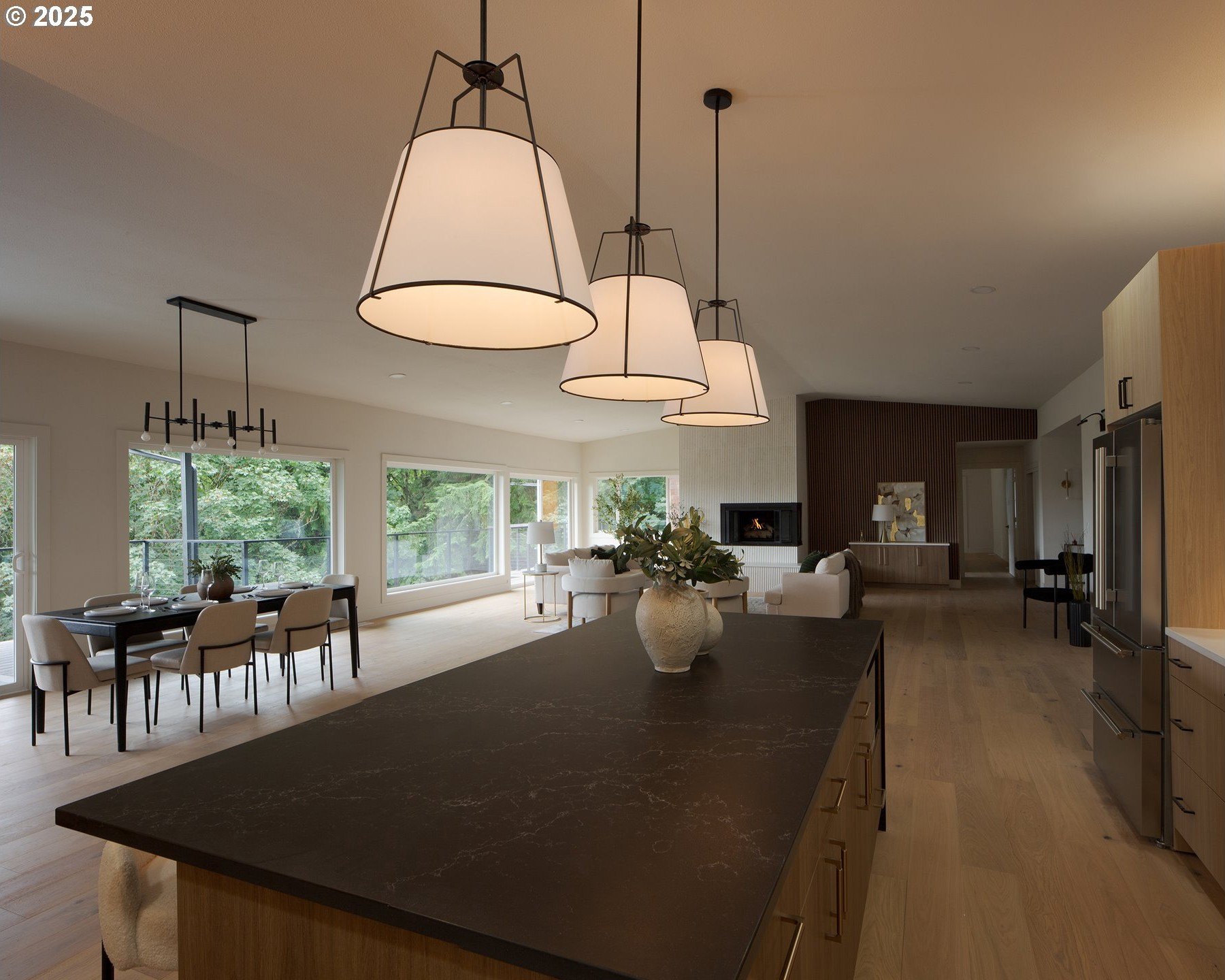 Set above Marquam Nature Park, this home offers privacy, quiet, and horizon views. New remodel in 2025, bringing a fresh perspective to the design while honoring the home’s original feel. The main level opens with vaulted ceilings and hardwood floors that carry through the spacious living room, dining area, and modern kitchen, all filled with natural light. A generous island makes space for conversation while wide glass doors lead to a deck suspended above the forest. Morning coffee, casual dinners, or evenings with friends all seem to belong here. A gas fireplace adds warmth and atmosphere to the living room. The primary suite provides a spa-inspired bath with a walk-in shower, soaking tub, two walk-in closets with built-in storage, and private access to the deck. Downstairs, three bedrooms and a full bath surround a large bonus room ready to become a home theater, game room, or wet bar. A second fireplace here makes the space especially inviting. A walk-in laundry, expansive storage room, and private sauna add thoughtful touches. Outside, a two-level deck extends the living space into the trees. The upper deck frames long views, while the lower places you closer in the canopy. The three-car garage, a rare find in the West Hills, leaves room for more than cars—bikes, tools, and hobbies all have their place. This location combines retreat and connection. Neighborhood schools and shops are nearby, and OHSU is only minutes away. It’s a home that makes both city and nature feel equally close. With its full remodel, open layout, and rare setting above the trees, this property offers a way of living that is both elevated and grounded. A place to gather, to rest, and to step easily between forest paths and city streets. Schedule your private showing today.