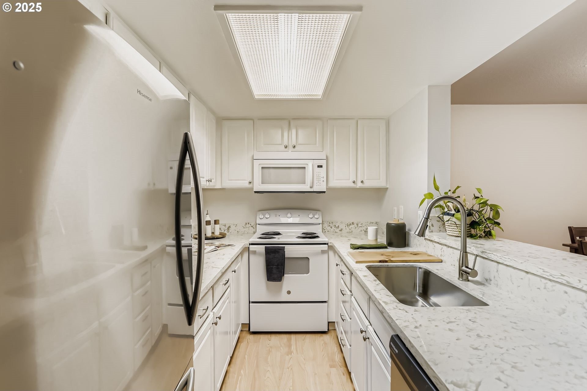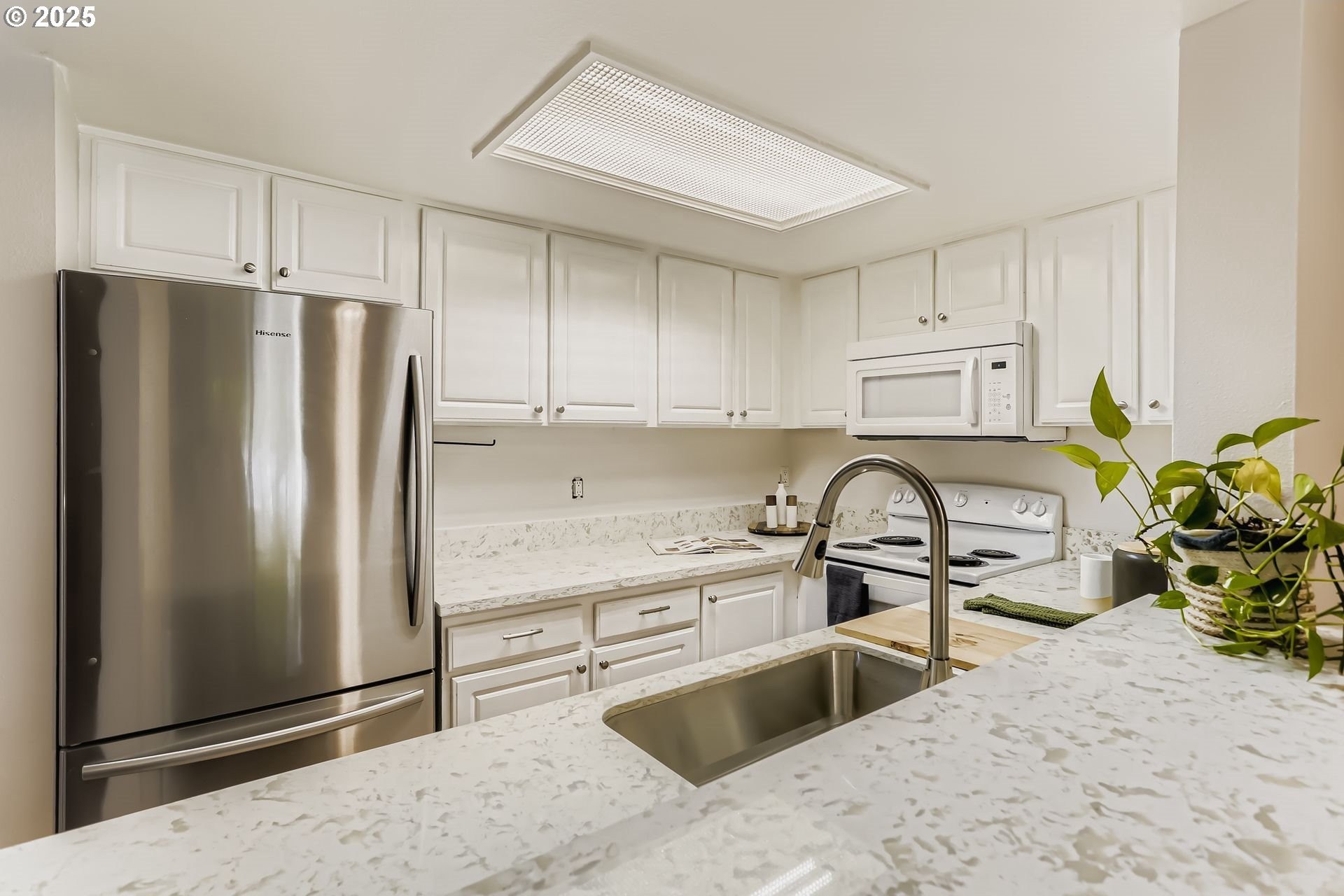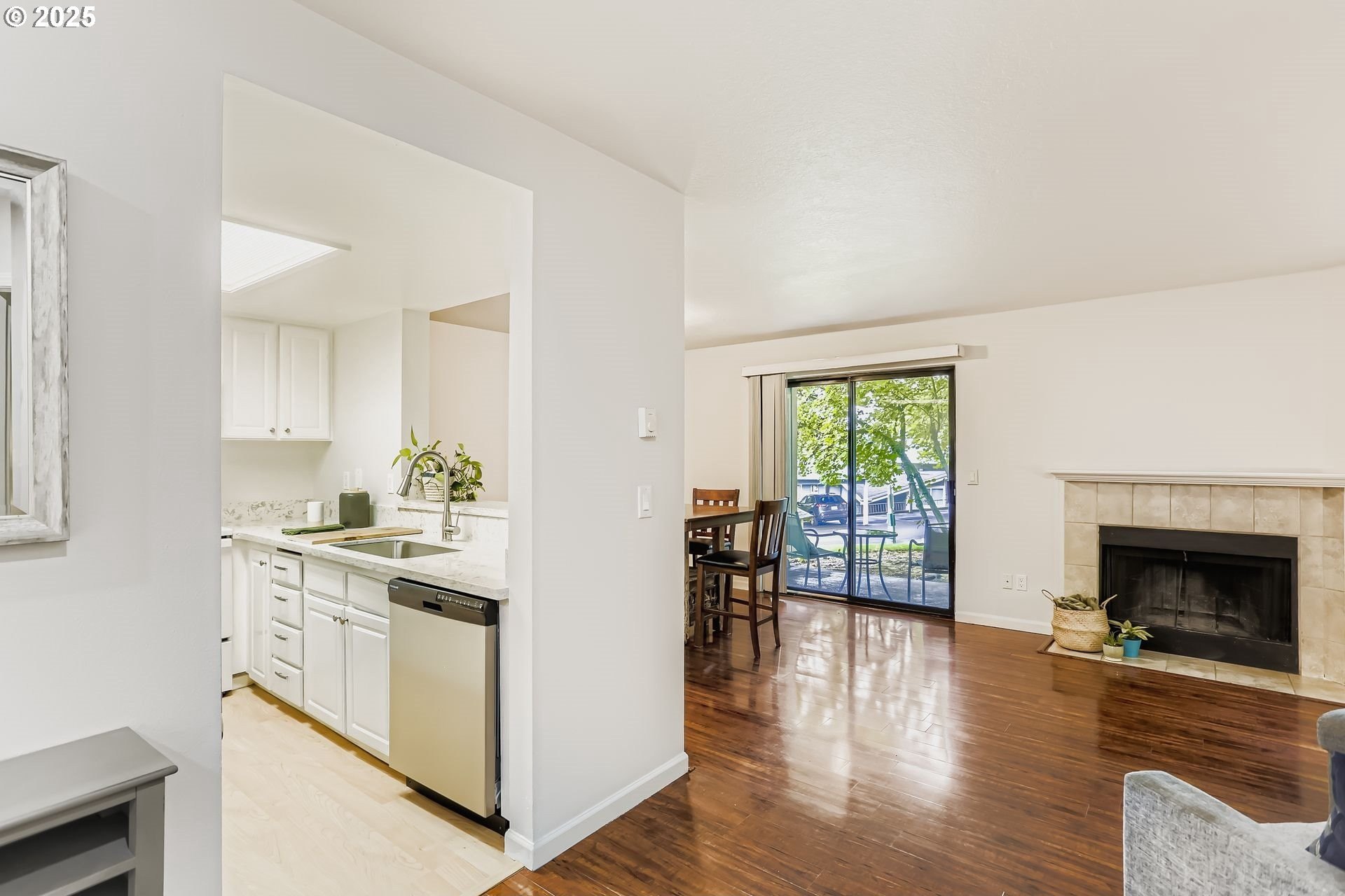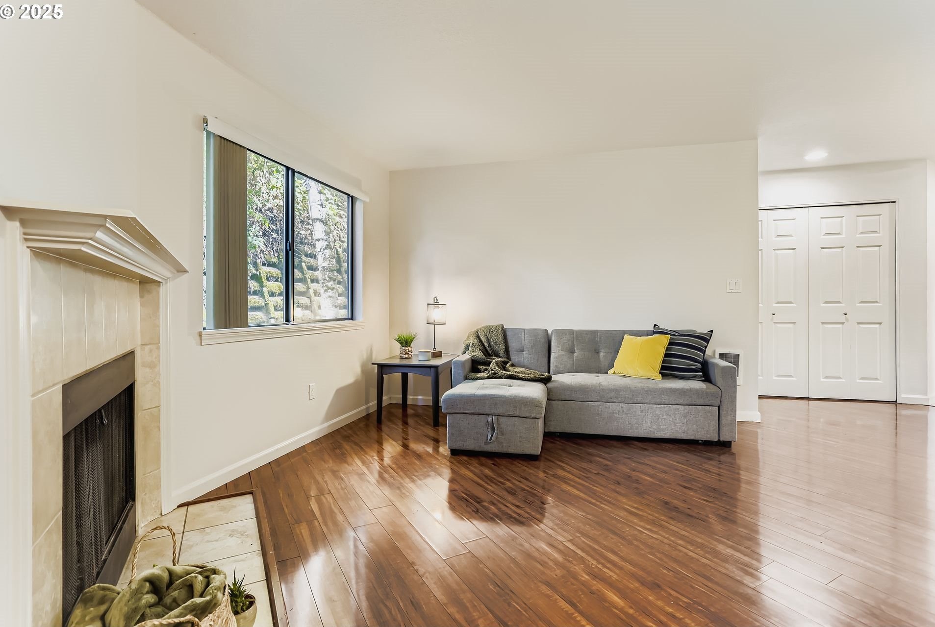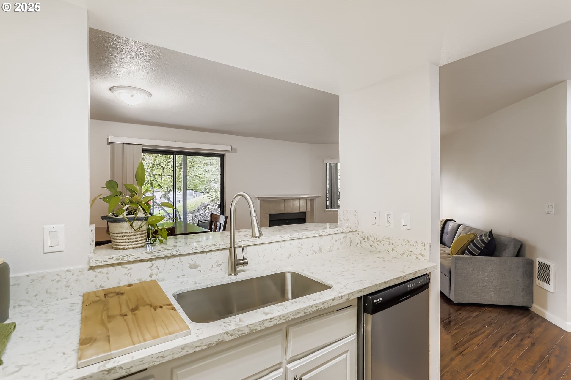 Discover comfort and convenience in this charming 2-bedroom, 2-bath condo ideally located near hospitals, shopping, and restaurants. The kitchen features brand-new quartz countertops and generous cabinet space, while the inviting living room offers a cozy fireplace and sliding door that opens to a private patio with an additional storage unit. The spacious primary suite includes its own bathroom. Nestled against Mount Talbert Nature Park, you’ll enjoy beautiful natural surroundings and hiking trails. The HOA provides water, sewer, and trash services, plus access to a weight room, outdoor pool, and meeting room—all designed to make life easier and more enjoyable.