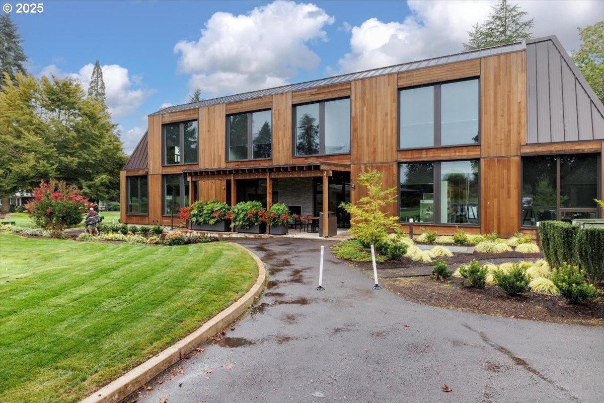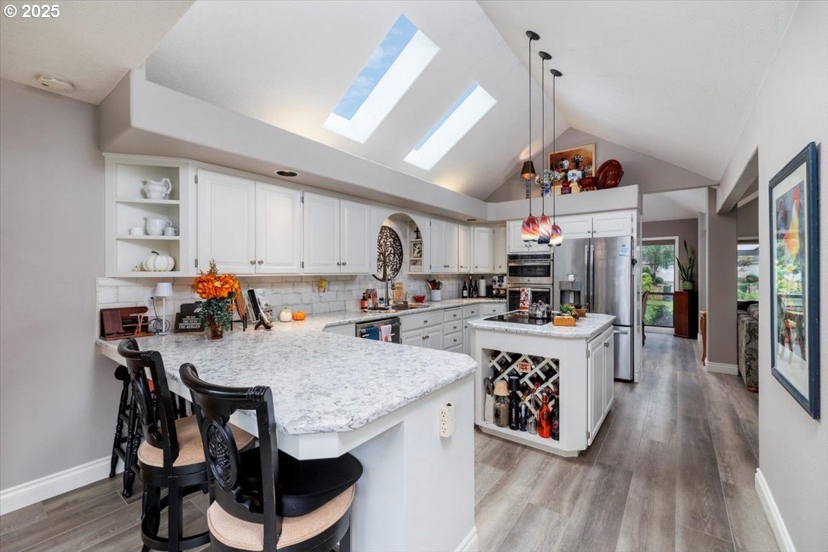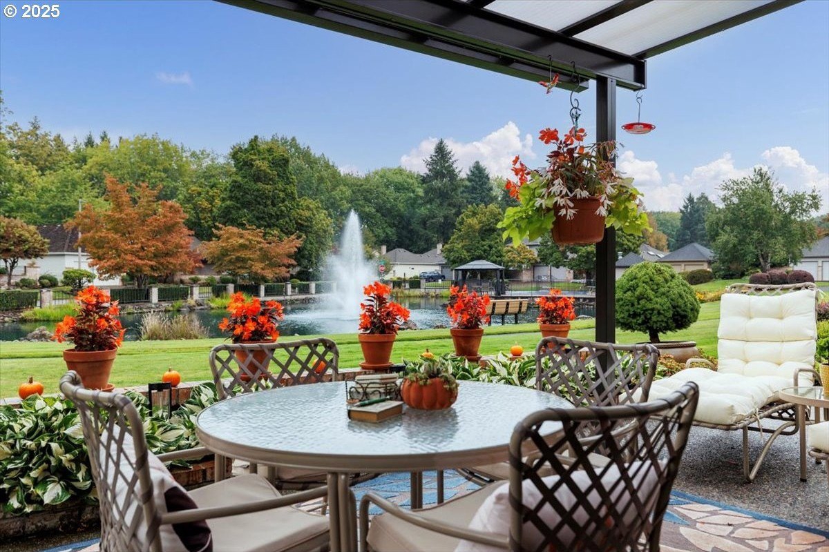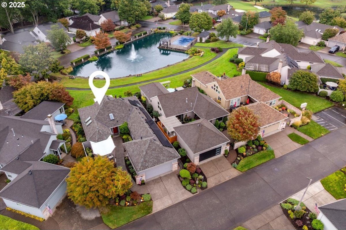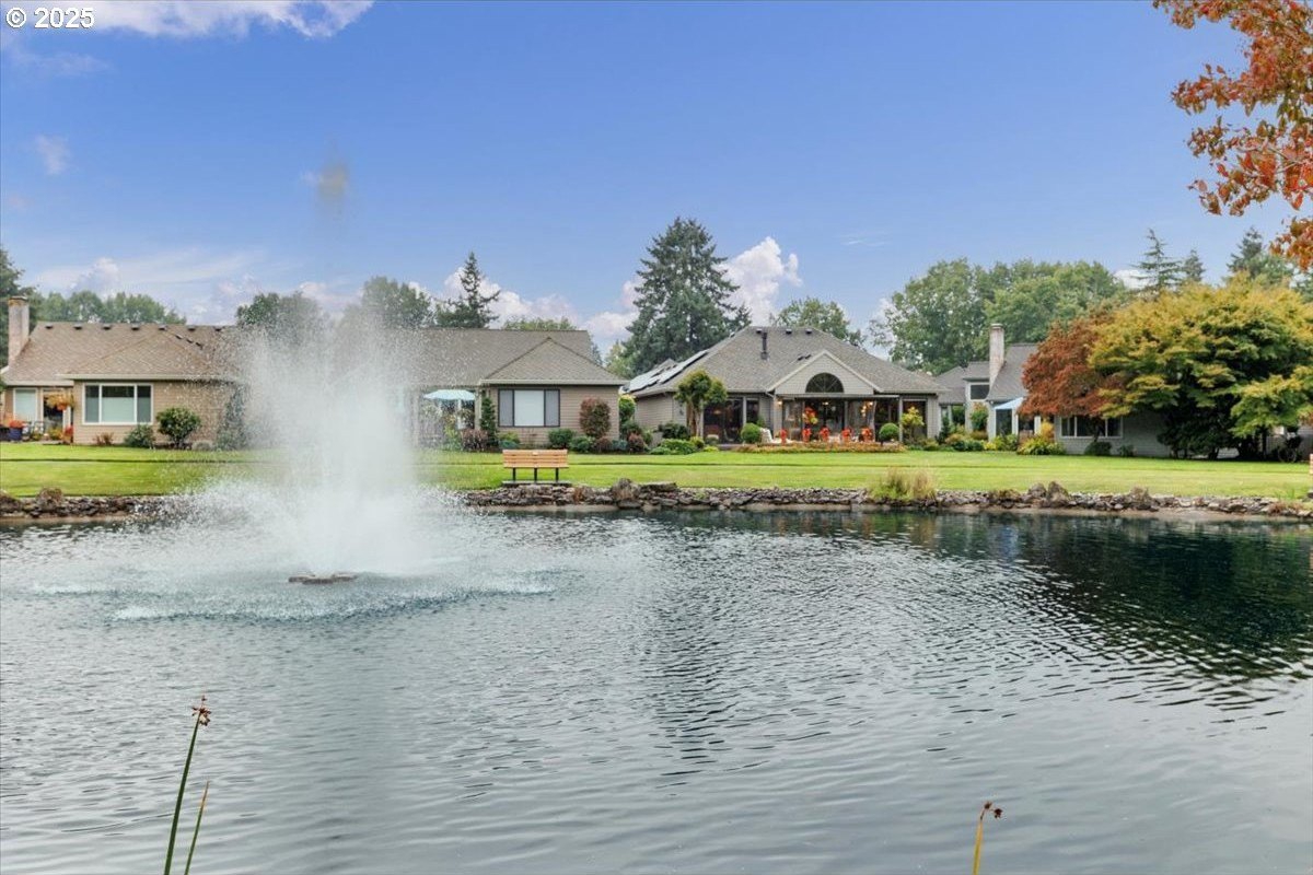 Experience Lakeside living in one of Charbonneau’s desirable lakeside neighborhoods. Relax at the thoughtfully designed front and back covered patios. Perfect for entertaining or taking in the beautiful landscape the owners have enjoyed and developed over time. The back patio introduces a home with picturesque lake views and its soaring fountain, with visits from ducks and hummingbirds often, adding a touch of nature to relaxing moments. This one-of-a-kind custom one level home is truly impressive. Architecture details showcase striking angles and vaulted ceilings. Luxury vinyl flooring extends throughout, complemented by new carpeting in both bedrooms. Standout features include premium Hunter Douglas blinds on every window, a spacious island kitchen with bay window dining area, quartz countertops, custom lighting pendants above the cook-top, all new stainless-steel appliances and much more. The bathrooms have been beautifully modernized. The primary bath combines contemporary design with practicality, featuring custom cabinetry, quartz counters, elegant tiled flooring, and a walk-in shower. Creative storage solutions and walk-through closets provide added convenience. The living space, open to the kitchen boasts custom lighted built-in cabinets ideal for displaying collectibles, watching TV, and extra storage. Adjacent to the living room is a separate dining room with a coved ceiling. The living room, dining area, and main bedroom all offer stunning lake views and access to the patio. For a complete list of updates, consult the attached Improvements List. Charbonneau’s resort-style amenities include an Activity Center, Club House, Golf Course Pro Shop, Market Café, golfer’s Warm-Up Facility, exceptional bakery, hair salon, and restaurant. Residents also enjoy book clubs, cards, exercise classes, tennis, and pickleball courts to name a few. As you will experience there are plenty of activities to enjoy here in Charbonneau!