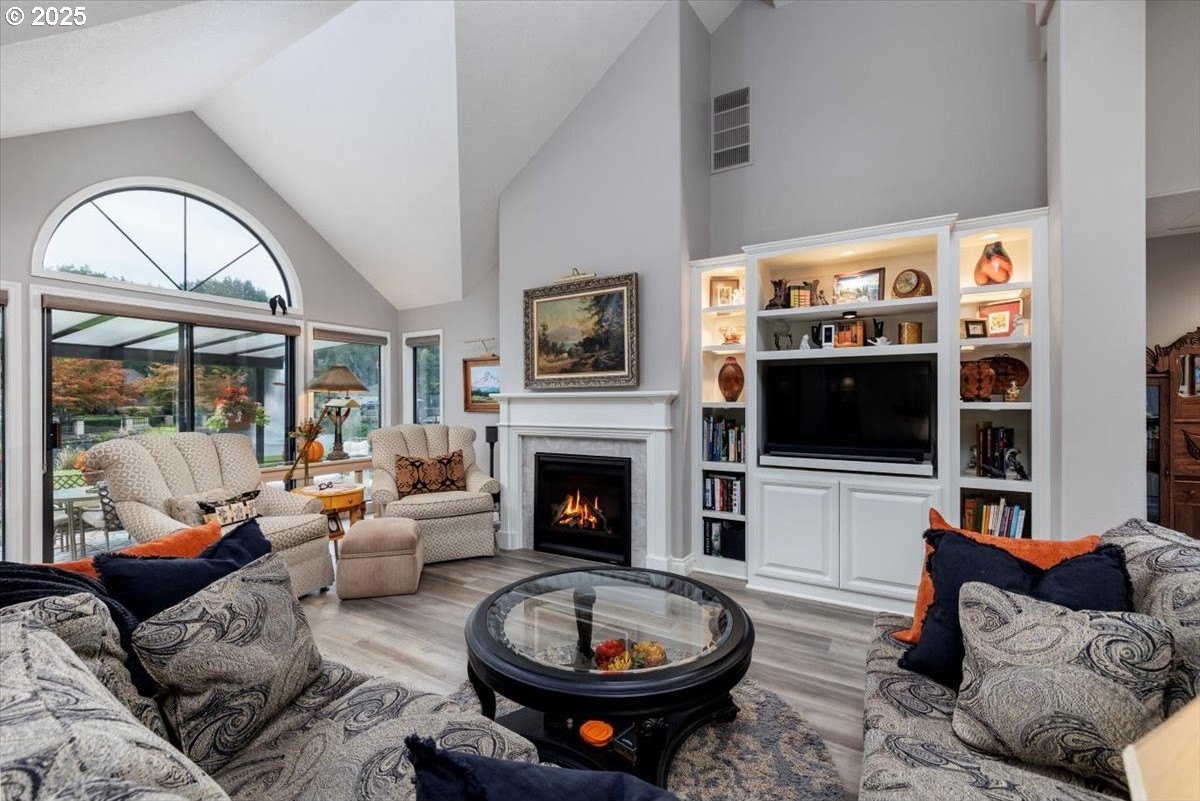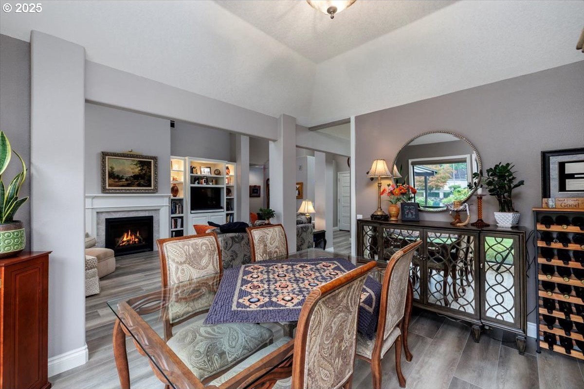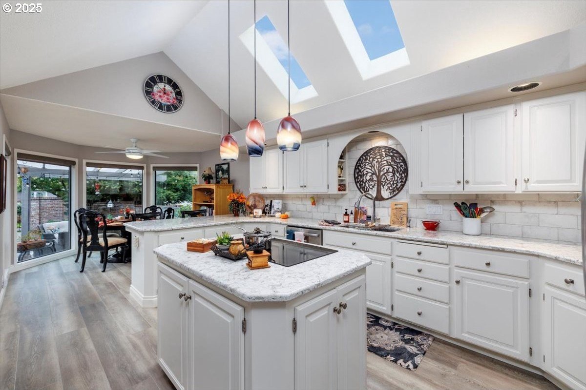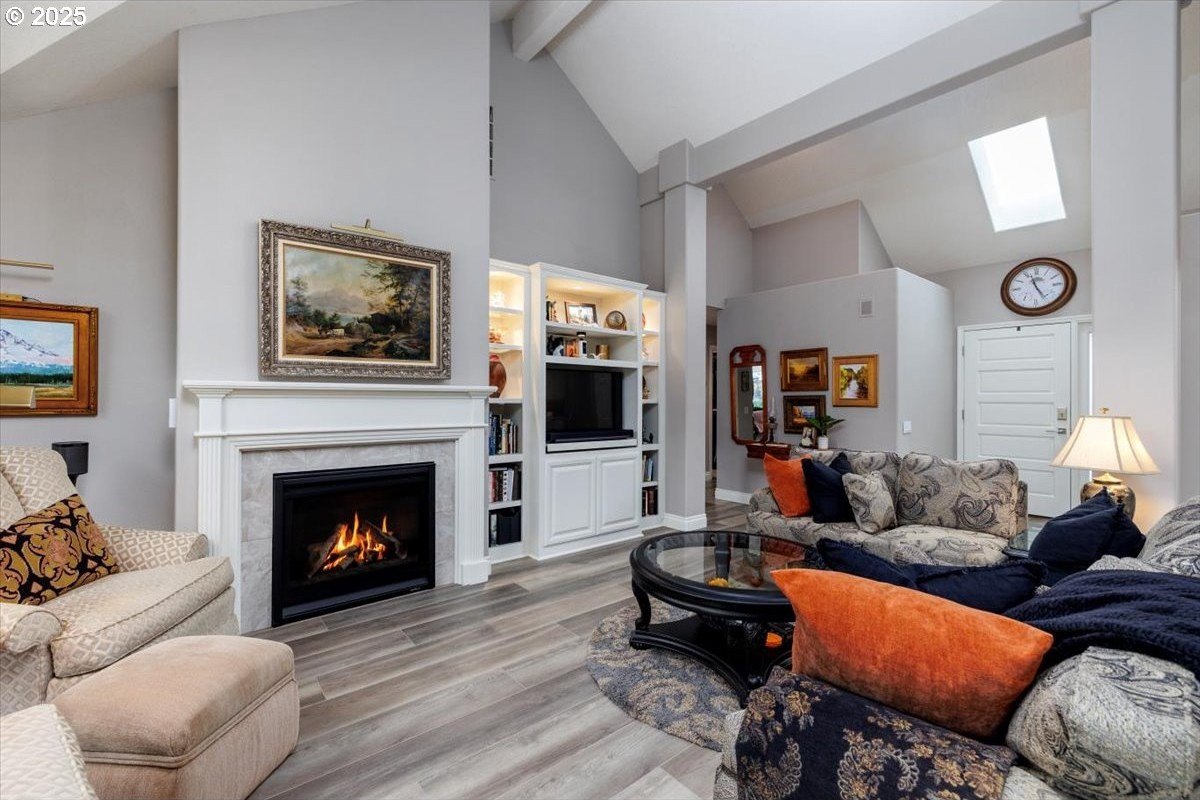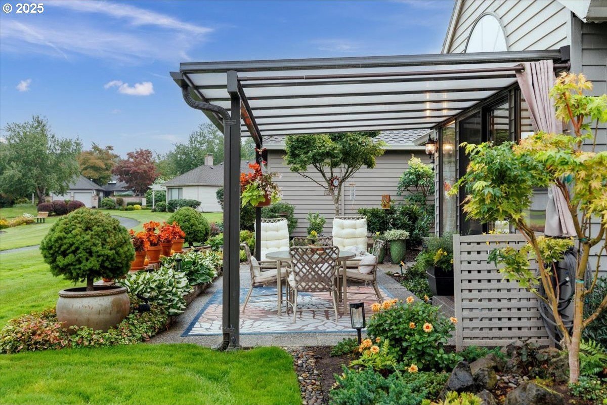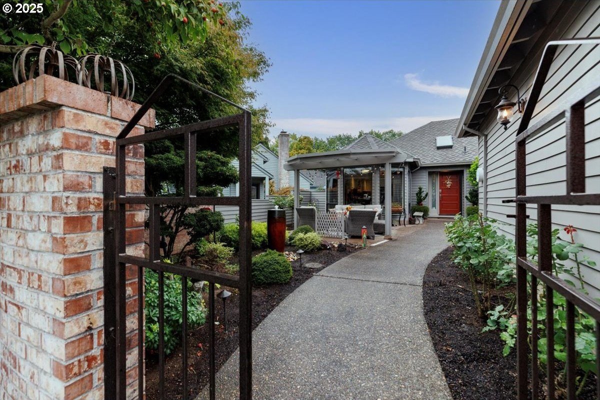 Experience Lakeside living in one of Charbonneau’s desirable lakeside neighborhoods. Relax at the thoughtfully designed front and back covered patios. Perfect for entertaining or taking in the beautiful landscape the owners have enjoyed and developed over time. The back patio introduces a home with picturesque lake views and its soaring fountain, with visits from ducks and hummingbirds often, adding a touch of nature to relaxing moments. This one-of-a-kind custom one level home is truly impressive. Architecture details showcase striking angles and vaulted ceilings. Luxury vinyl flooring extends throughout, complemented by new carpeting in both bedrooms. Standout features include premium Hunter Douglas blinds on every window, a spacious island kitchen with bay window dining area, quartz countertops, custom lighting pendants above the cook-top, all new stainless-steel appliances and much more. The bathrooms have been beautifully modernized. The primary bath combines contemporary design with practicality, featuring custom cabinetry, quartz counters, elegant tiled flooring, and a walk-in shower. Creative storage solutions and walk-through closets provide added convenience. The living space, open to the kitchen boasts custom lighted built-in cabinets ideal for displaying collectibles, watching TV, and extra storage. Adjacent to the living room is a separate dining room with a coved ceiling. The living room, dining area, and main bedroom all offer stunning lake views and access to the patio. For a complete list of updates, consult the attached Improvements List. Charbonneau’s resort-style amenities include an Activity Center, Club House, Golf Course Pro Shop, Market Café, golfer’s Warm-Up Facility, exceptional bakery, hair salon, and restaurant. Residents also enjoy book clubs, cards, exercise classes, tennis, and pickleball courts to name a few. As you will experience there are plenty of activities to enjoy here in Charbonneau!