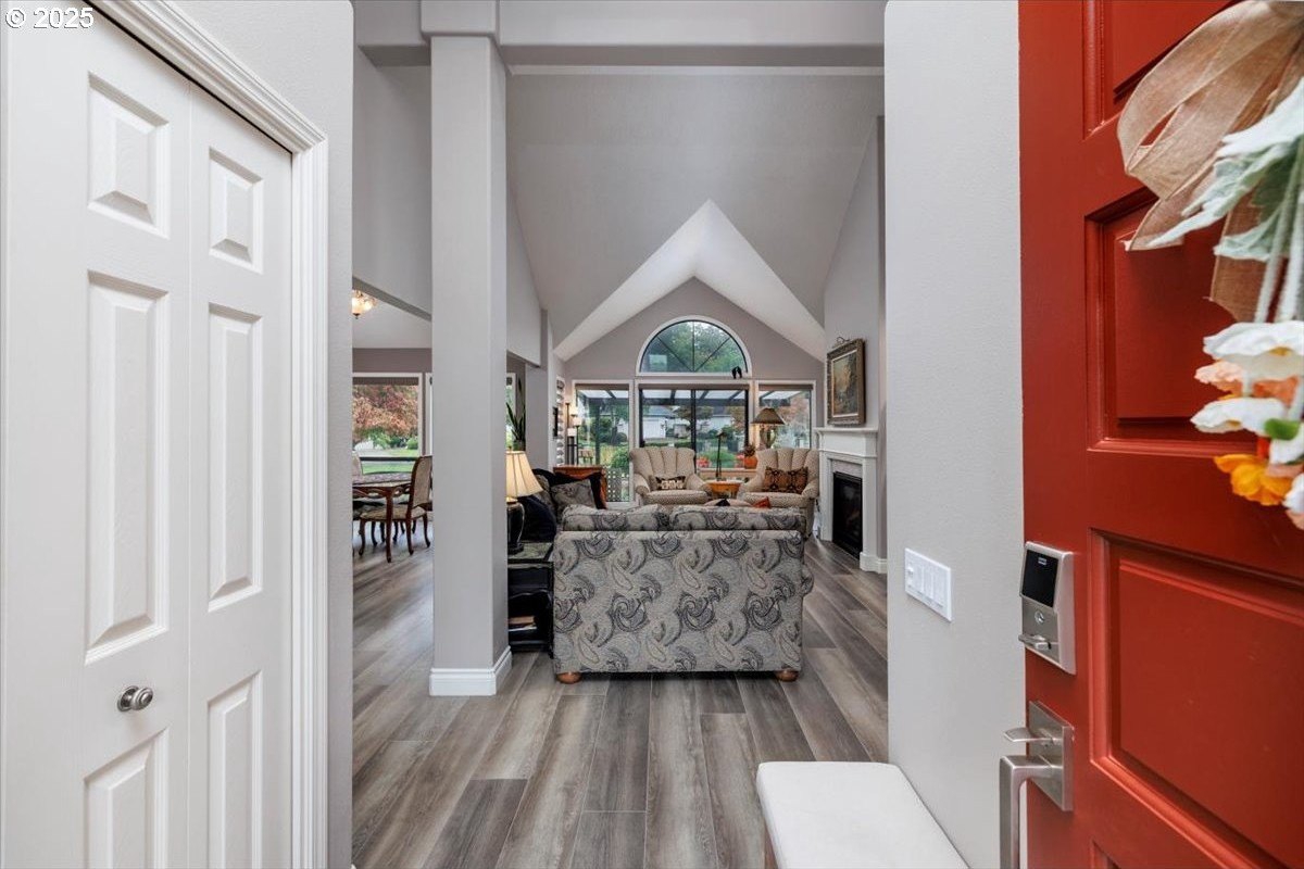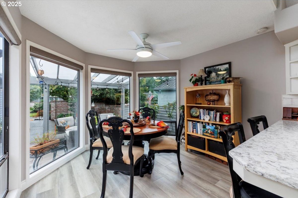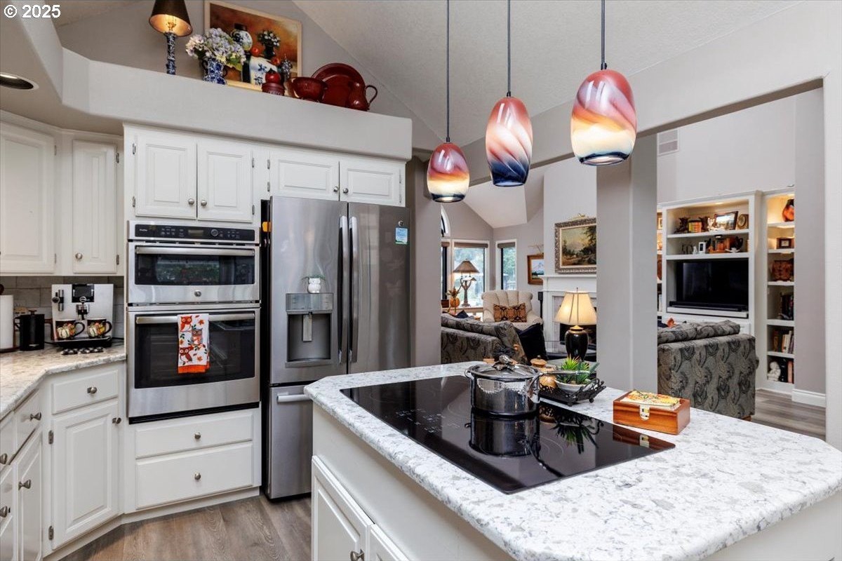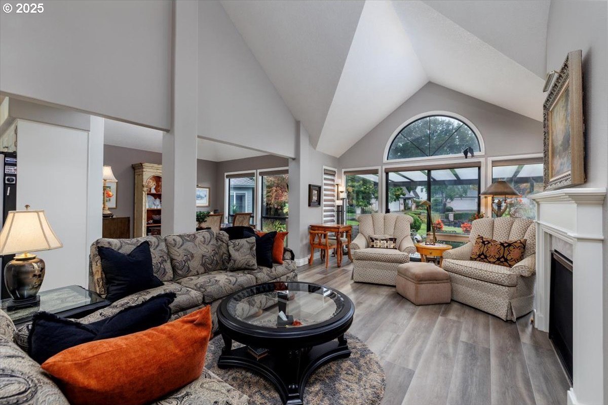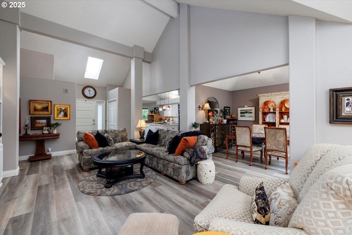 Experience Lakeside living in one of Charbonneau’s desirable lakeside neighborhoods. Relax at the thoughtfully designed front and back covered patios. Perfect for entertaining or taking in the beautiful landscape the owners have enjoyed and developed over time. The back patio introduces a home with picturesque lake views and its soaring fountain, with visits from ducks and hummingbirds often, adding a touch of nature to relaxing moments. This one-of-a-kind custom one level home is truly impressive. Architecture details showcase striking angles and vaulted ceilings. Luxury vinyl flooring extends throughout, complemented by new carpeting in both bedrooms. Standout features include premium Hunter Douglas blinds on every window, a spacious island kitchen with bay window dining area, quartz countertops, custom lighting pendants above the cook-top, all new stainless-steel appliances and much more. The bathrooms have been beautifully modernized. The primary bath combines contemporary design with practicality, featuring custom cabinetry, quartz counters, elegant tiled flooring, and a walk-in shower. Creative storage solutions and walk-through closets provide added convenience. The living space, open to the kitchen boasts custom lighted built-in cabinets ideal for displaying collectibles, watching TV, and extra storage. Adjacent to the living room is a separate dining room with a coved ceiling. The living room, dining area, and main bedroom all offer stunning lake views and access to the patio. For a complete list of updates, consult the attached Improvements List. Charbonneau’s resort-style amenities include an Activity Center, Club House, Golf Course Pro Shop, Market Café, golfer’s Warm-Up Facility, exceptional bakery, hair salon, and restaurant. Residents also enjoy book clubs, cards, exercise classes, tennis, and pickleball courts to name a few. As you will experience there are plenty of activities to enjoy here in Charbonneau!