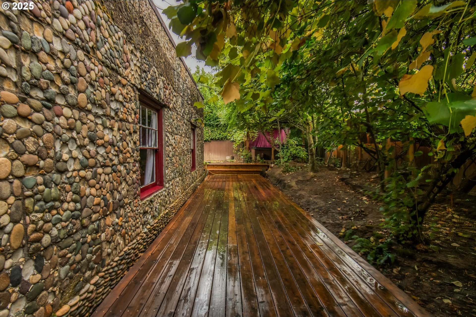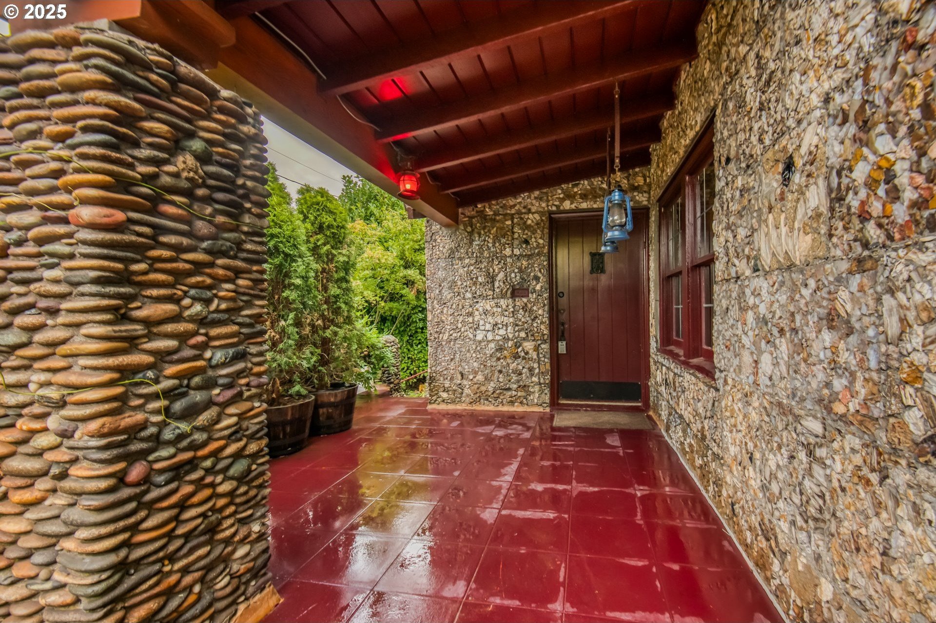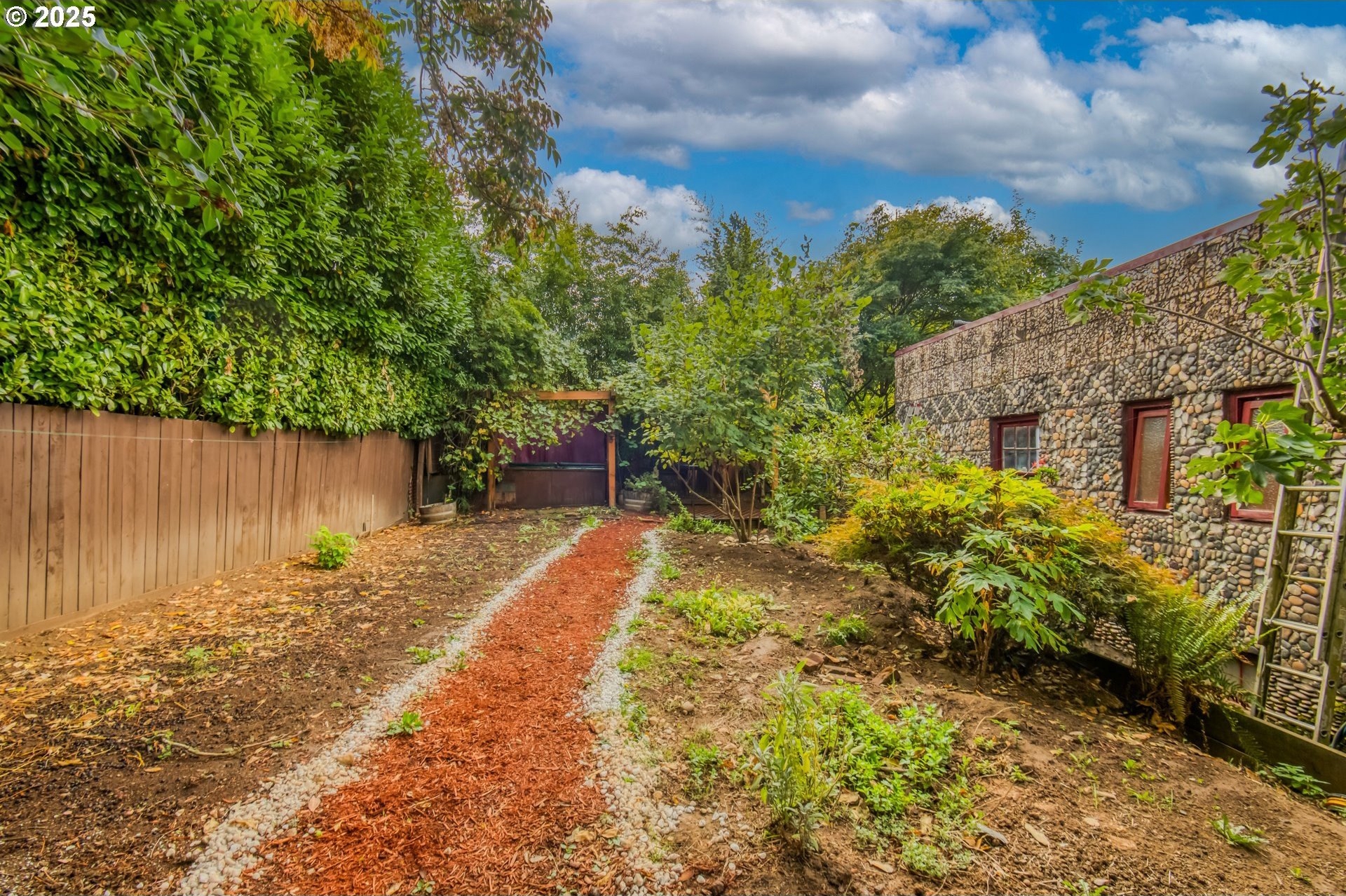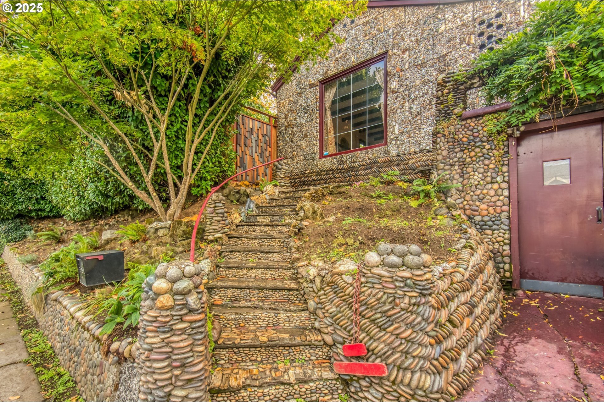 Step into a home as wonderfully weird and artistic as Portland. This thoughtfully updated 1934 gem blends historic character with truly one-of-a-kind details inside and out. The exterior is embedded with gem quality rocks, crystals, and petrified wood, setting the tone for a home that’s anything but ordinary. Enter through a crystal-ceiling entryway, then discover hand-hewn exposed wood beams, 2 show stopping rock-and-crystal fireplaces, 3/4 inch thick hard wood floors, a charming telephone nook with an original laundry chute, and a butler’s pantry with original built-in cabinets. With 3 spacious bedrooms, 1 full bath, and nearly 2,800 square feet of creative space, this home offers room to live, create, and entertain. Step outside to a private sanctuary featuring a tranquil scent garden, wrap-around entertainer’s porch, hot tub, wood shed, and mature landscapingwith grapevines, kiwis, and more. This is not just a home—it's an experience. Own a piece of Portland’s soul. [Home Energy Score = 3. HES Report at https://rpt.greenbuildingregistry.com/hes/OR10241551]