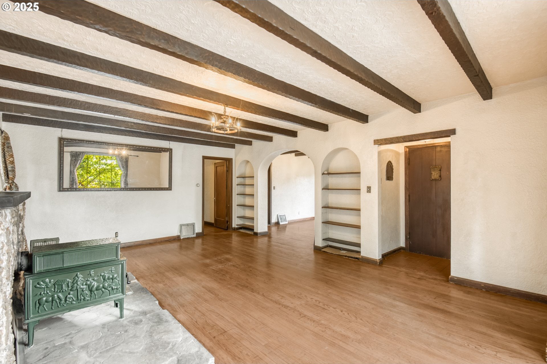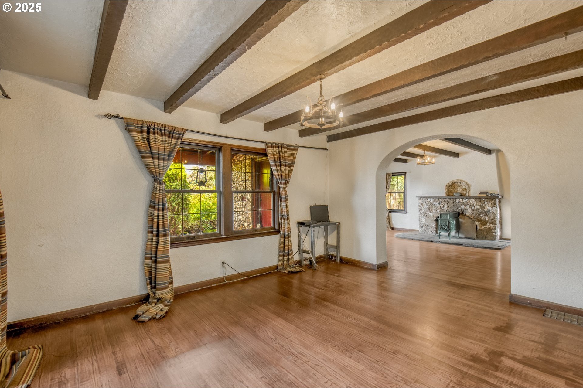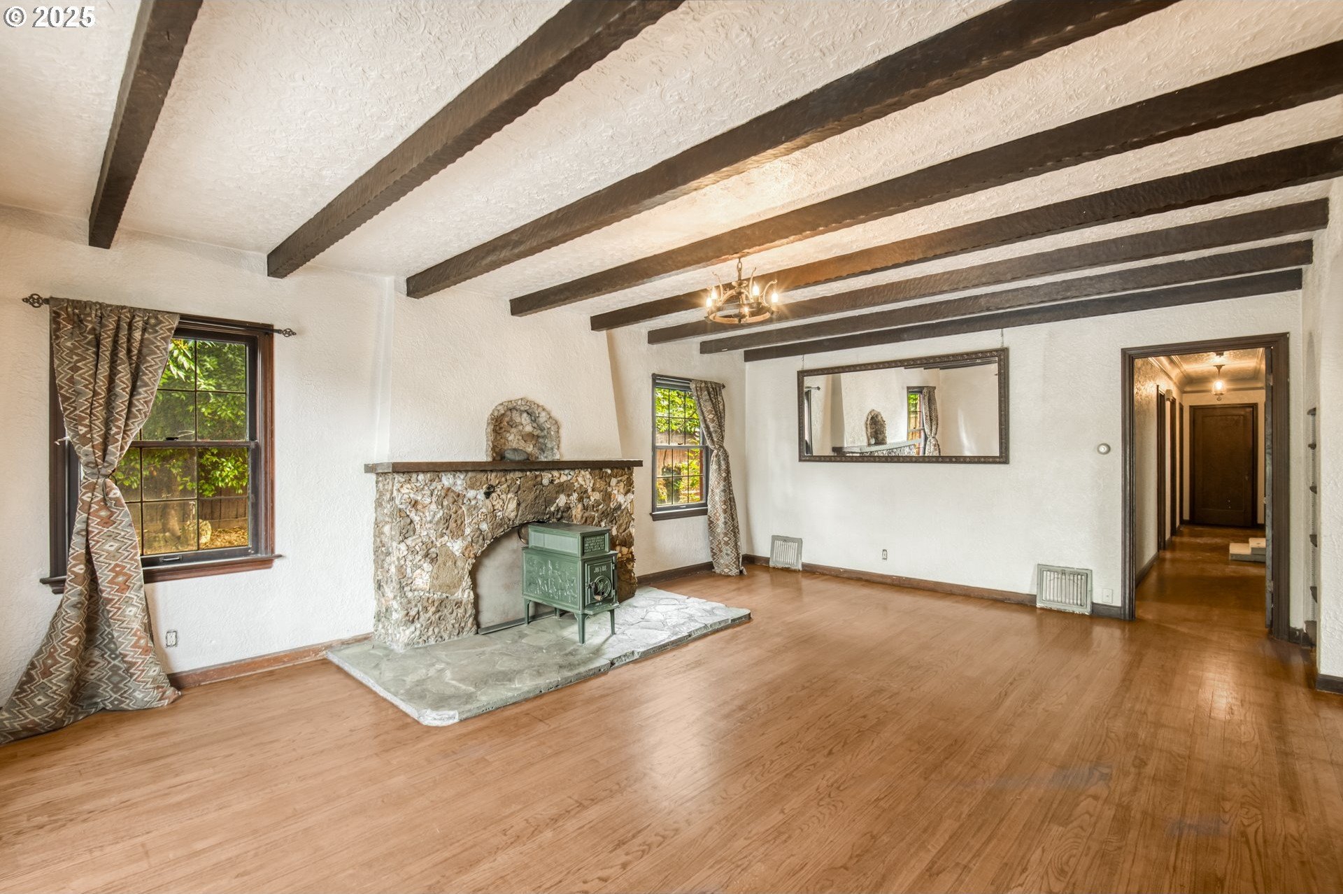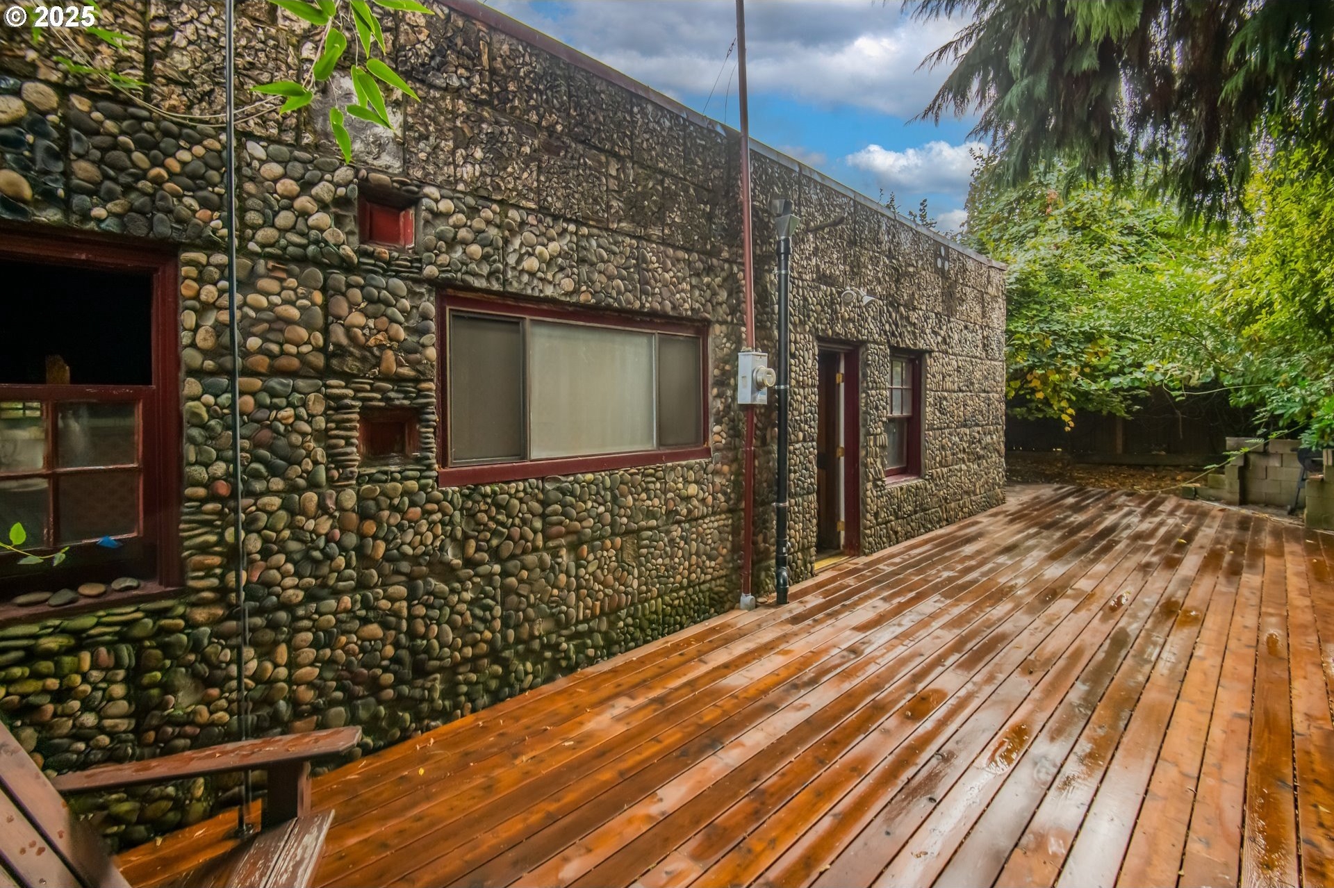 Step into a home as wonderfully weird and artistic as Portland. This thoughtfully updated 1934 gem blends historic character with truly one-of-a-kind details inside and out. The exterior is embedded with gem quality rocks, crystals, and petrified wood, setting the tone for a home that’s anything but ordinary. Enter through a crystal-ceiling entryway, then discover hand-hewn exposed wood beams, 2 show stopping rock-and-crystal fireplaces, 3/4 inch thick hard wood floors, a charming telephone nook with an original laundry chute, and a butler’s pantry with original built-in cabinets. With 3 spacious bedrooms, 1 full bath, and nearly 2,800 square feet of creative space, this home offers room to live, create, and entertain. Step outside to a private sanctuary featuring a tranquil scent garden, wrap-around entertainer’s porch, hot tub, wood shed, and mature landscapingwith grapevines, kiwis, and more. This is not just a home—it's an experience. Own a piece of Portland’s soul. [Home Energy Score = 3. HES Report at https://rpt.greenbuildingregistry.com/hes/OR10241551]