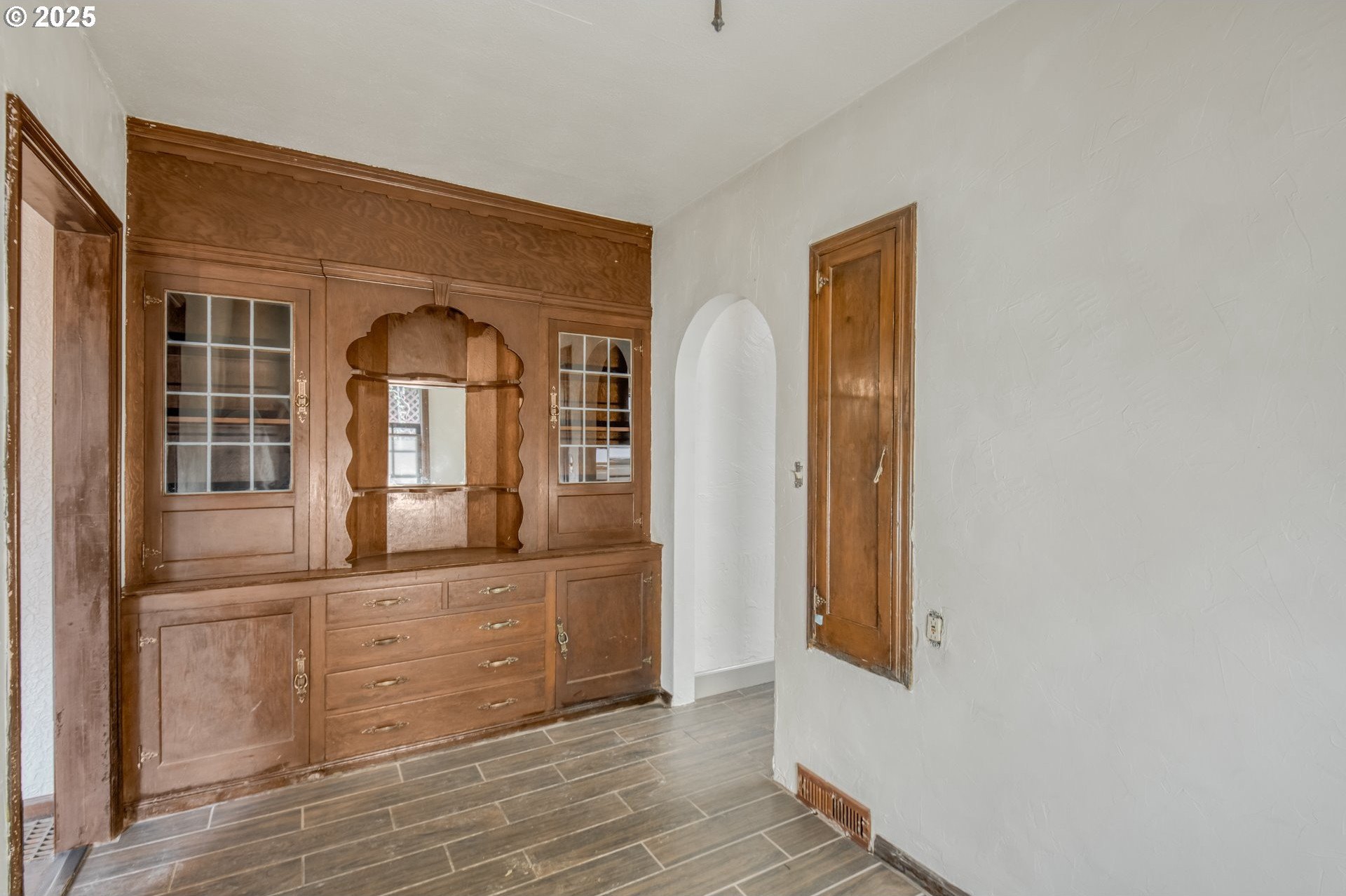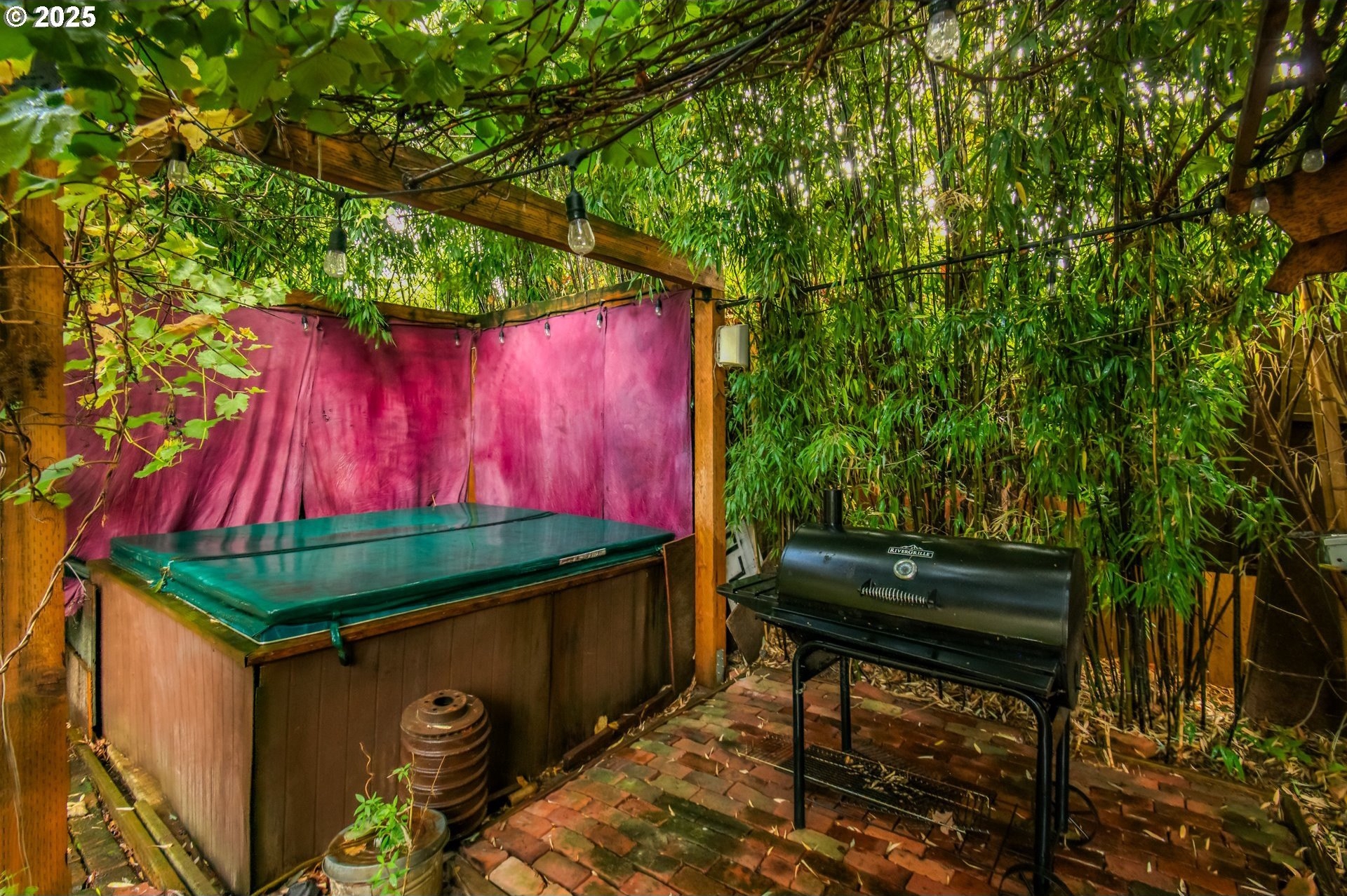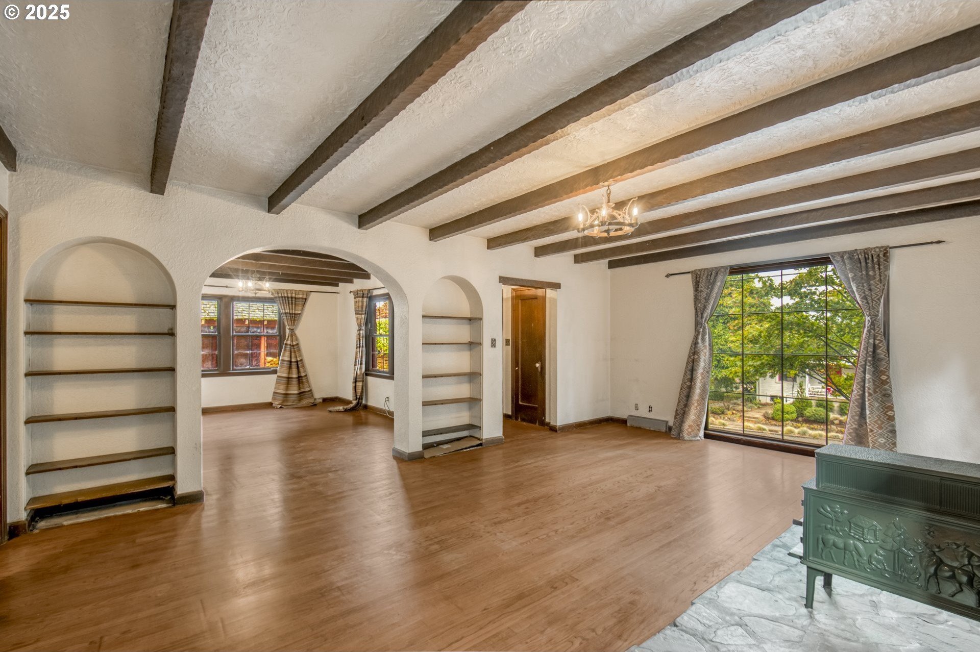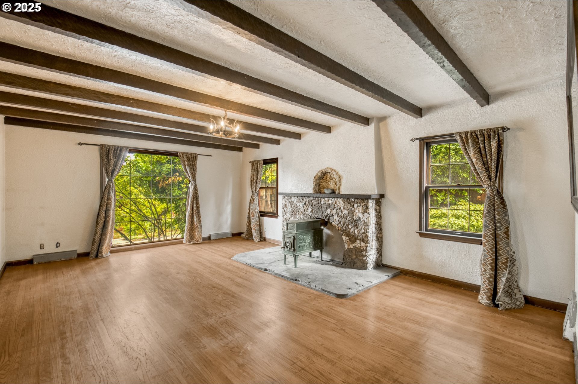Step into a home as wonderfully weird and artistic as Portland. This thoughtfully updated 1934 gem blends historic character with truly one-of-a-kind details inside and out. The exterior is embedded with gem quality rocks, crystals, and petrified wood, setting the tone for a home that’s anything but ordinary. Enter through a crystal-ceiling entryway, then discover hand-hewn exposed wood beams, 2 show stopping rock-and-crystal fireplaces, 3/4 inch thick hard wood floors, a charming telephone nook with an original laundry chute, and a butler’s pantry with original built-in cabinets. With 3 spacious bedrooms, 1 full bath, and nearly 2,800 square feet of creative space, this home offers room to live, create, and entertain. Step outside to a private sanctuary featuring a tranquil scent garden, wrap-around entertainer’s porch, hot tub, wood shed, and mature landscapingwith grapevines, kiwis, and more. This is not just a home—it's an experience. Own a piece of Portland’s soul. [Home Energy Score = 3. HES Report at https://rpt.greenbuildingregistry.com/hes/OR10241551]