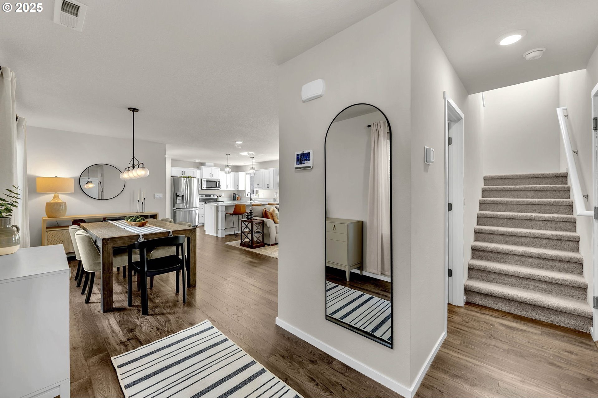 Beautifully upgraded home in Ridgefield’s sought-after Kemper Grove community! This 3-bedroom, 2.5-bath home showcases an open-concept layout with quartz countertops, stainless steel appliances, and modern finishes throughout. Recent upgrades include full landscaping with irrigation, new light fixtures, updated faucets, a refreshed half bath with new vanity and mirror, upgraded dishwasher, EV charging system, built-in garage shelving, front door storm door, and new entry lighting. Directly behind the home, enjoy stunning greenspace with walking trails that wind through the neighborhood, offering a peaceful natural backdrop. Kemper Grove residents have access to community parks, trails, and open green spaces—all just minutes from downtown Ridgefield, the Ridgefield Outdoor Recreation Complex, Abrams Park, and the National Wildlife Refuge. With top-rated schools, nearby shopping, dining, and quick I-5 access, this move-in-ready home offers comfort, convenience, and the best of Ridgefield living!