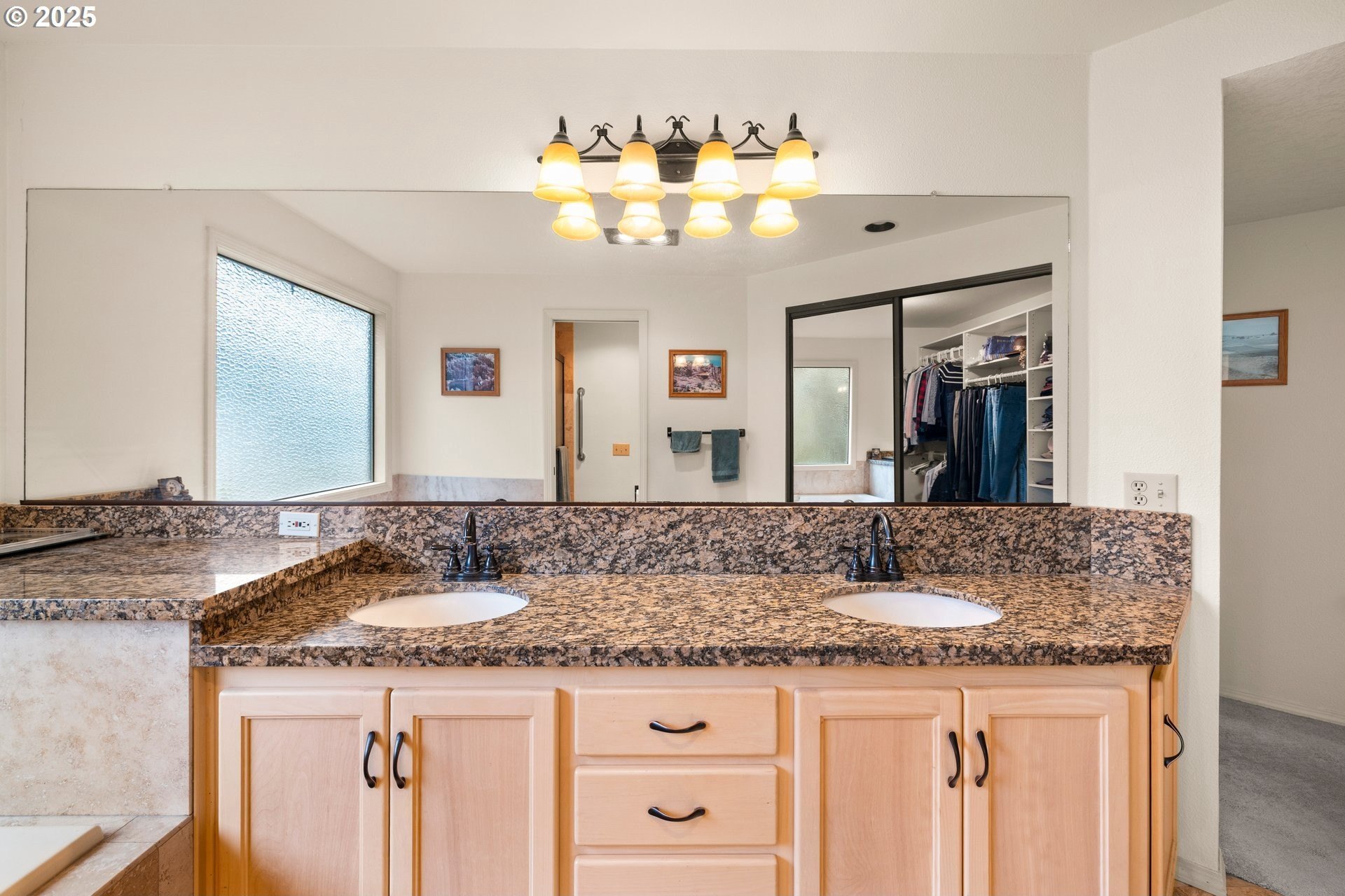 You’ll Love This Home in 55+ Summerplace! Located on a quiet cul-de-sac for extra privacy and tranquility. Fully fenced backyard provides security and peace of mind.The kitchen features spacious granite slab countertops, skylights, and the amenities you desire. The primary suite and bath include one of the largest walk-in closets in Summerplace. Experience a luxurious escape with double sinks, a soaking tub, and a beautiful walk-in shower. The second bedroom is ideal for guests, an office, or a hobby room, and the indoor laundry provides added convenience. Vaulted ceilings and an open floor plan create a connected yet spacious feel. Gas fireplace and central air conditioning ensure year-round comfort. A sliding glass door leads to an oversized, custom-covered patio overlooking the landscaped backyard—perfect for relaxing, gardening, or hosting gatherings in a tranquil, secure setting. Enjoy resort-style living with access to all of Summerplace’s exceptional amenities, including the clubhouse, pool, tennis courts, library, and a wide array of social and recreational events.Don’t miss this opportunity. Experience comfort, community, and connection—schedule your private tour today! [Home Energy Score = 3. HES Report at https://rpt.greenbuildingregistry.com/hes/OR10242299]