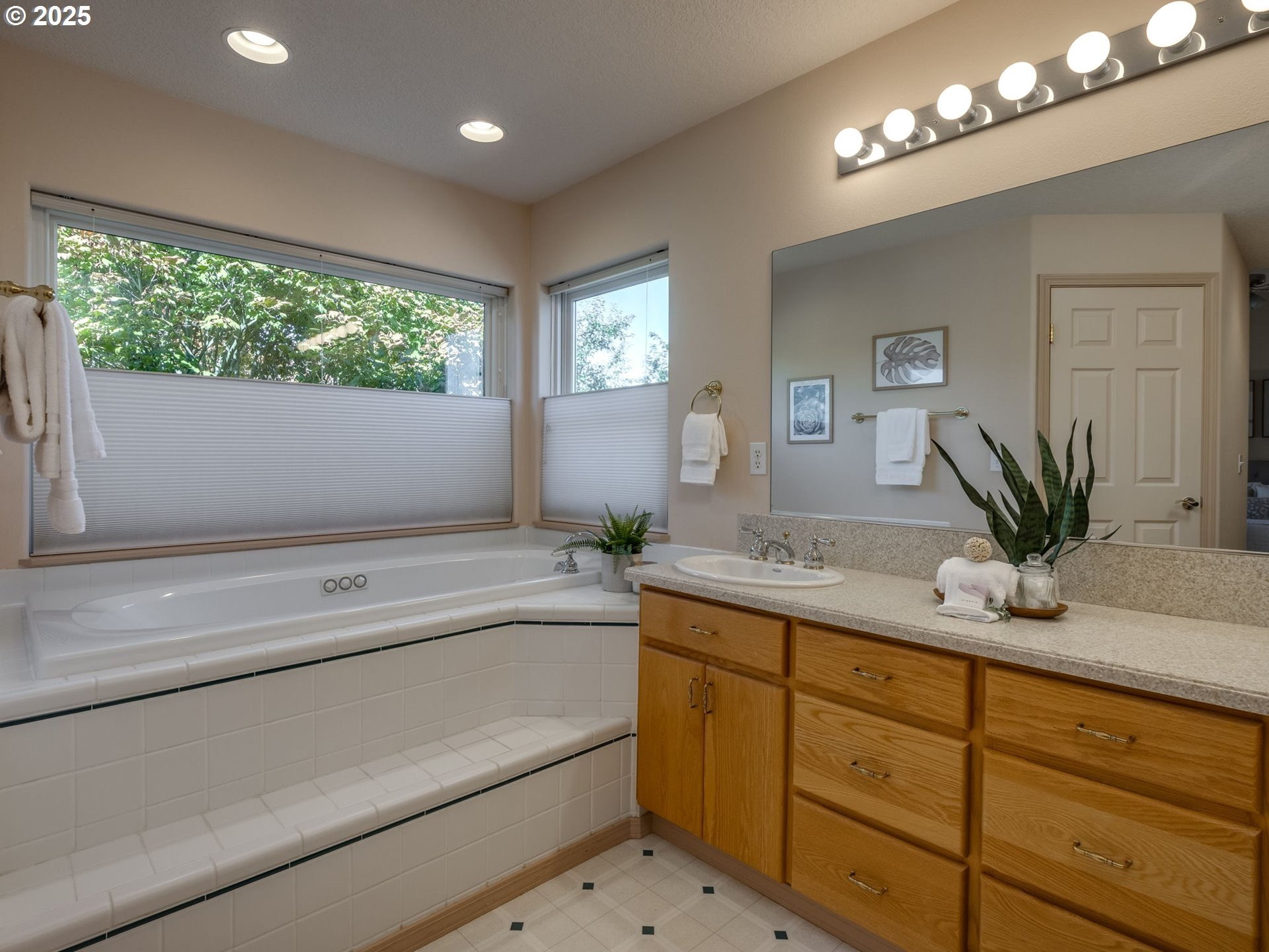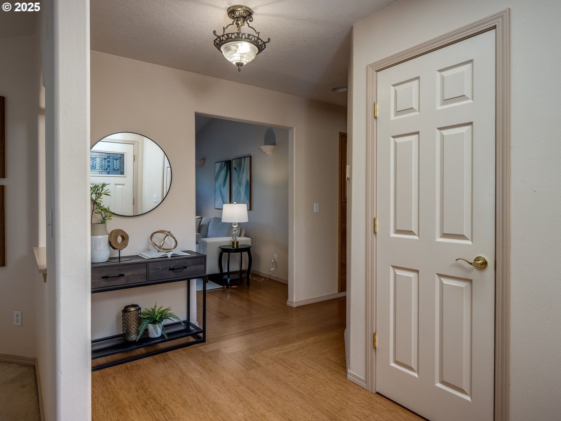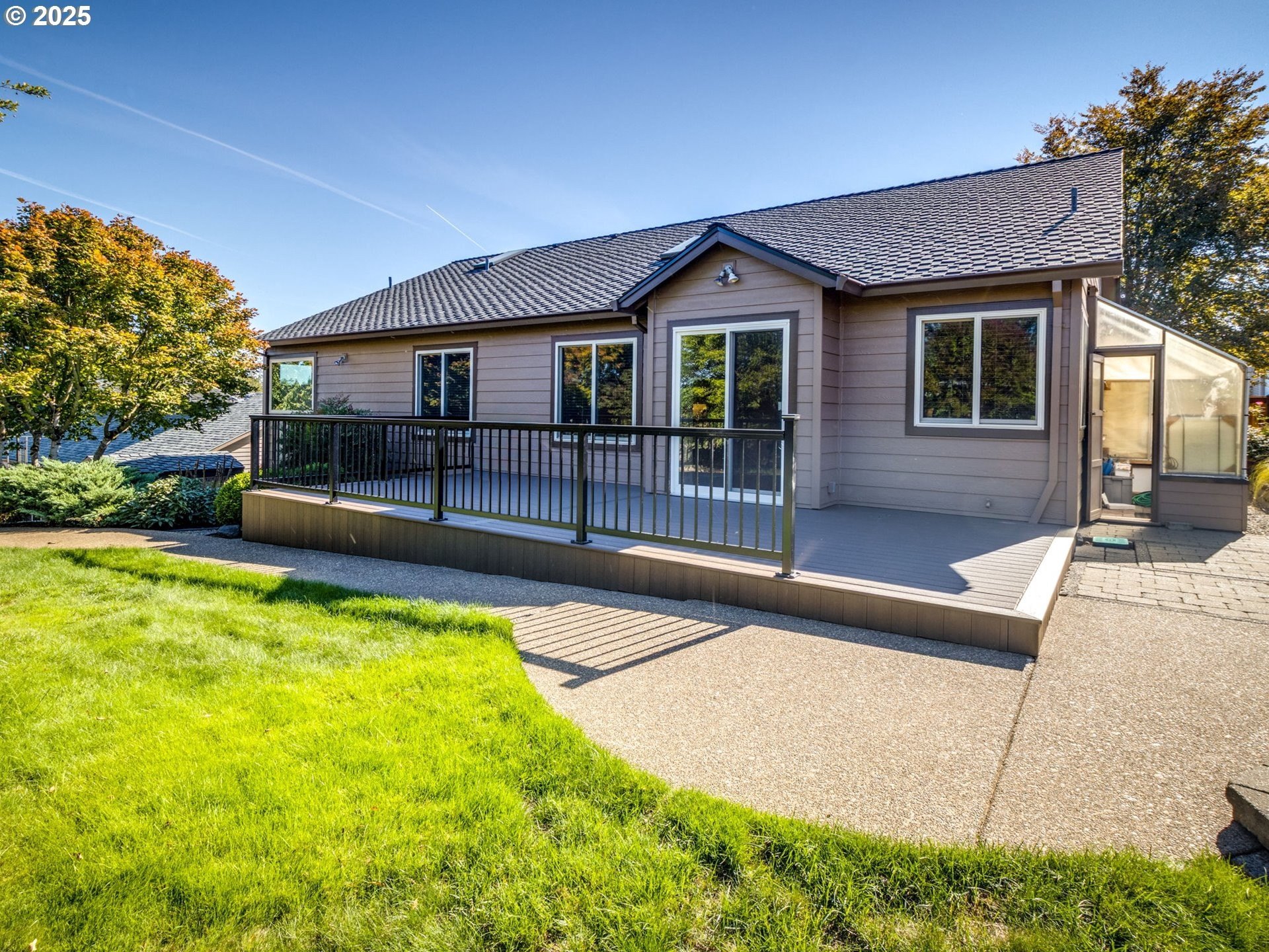 As you enter the peaceful neighborhood, you’re greeted by a beautiful view of Mt. Hood between the trees. This lovely one-level home offers over 2,300 sq. ft. of thoughtfully designed living space. Step inside to a hardwood bamboo entry illuminated by a skylight, leading to a vaulted living room with a cozy gas fireplace, and adjacent dining room. The kitchen features bamboo floors, raised panel oak cabinetry with pull-outs, and quartz-style Corian countertops. A nook with a slider opens to a deck, ideal for outdoor dining. The family room has bamboo flooring, a vaulted ceiling, and a ceiling fan. The primary suite is a serene retreat with a walk-in closet, jetted tub, double vanity, and walk-in shower. There are also two additional bedrooms, one converted to a home office with built-ins, plus a spacious bonus room perfect for a larger home office, or for crafters/artists/makers, or ?. The private and well-manicured backyard features a Trex deck, a sprinkler system, a greenhouse, and an exposed aggregate patio and path leading to a sturdy garden shed with HardiPlank siding & a 50-year Presidential roof. Recent upgrades in the last year or so include new Renewal by Andersen windows, a new high-efficiency Carrier gas furnace, new A/C, new programmable thermostat, and a new Trex deck. The 50-year Presidential roof is about 5-6 years old. Don’t miss this opportunity!