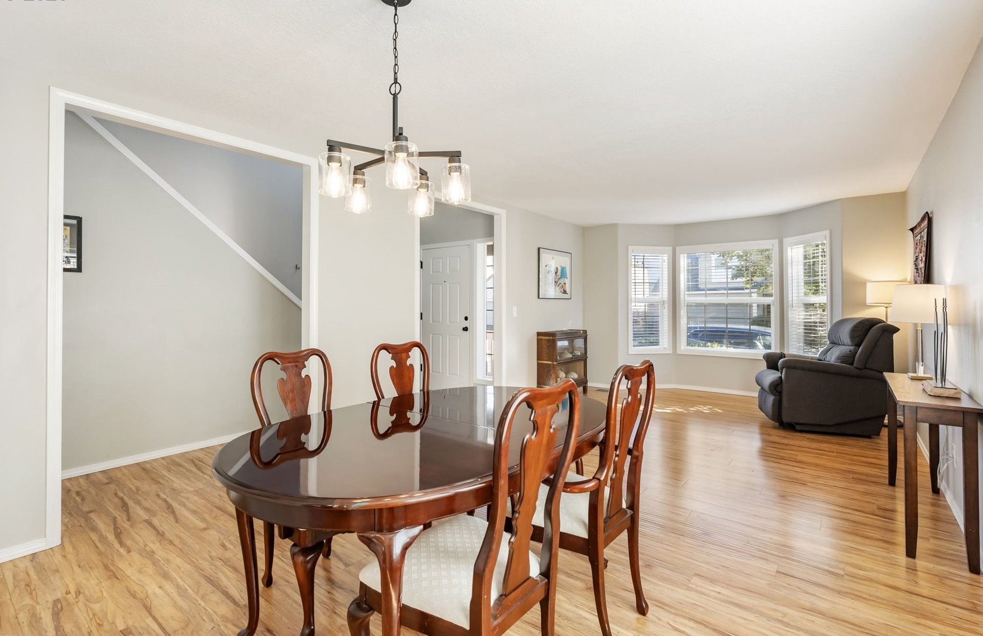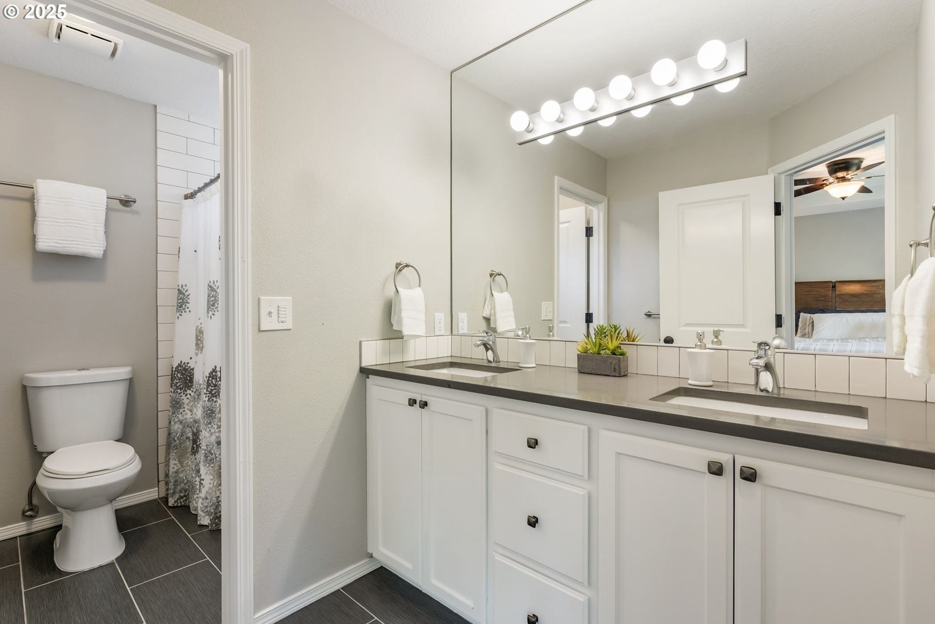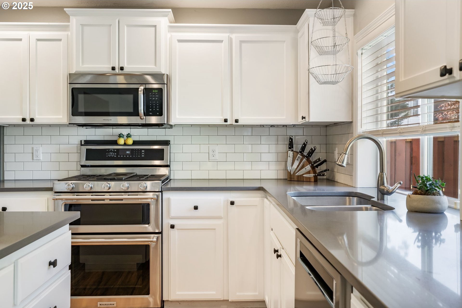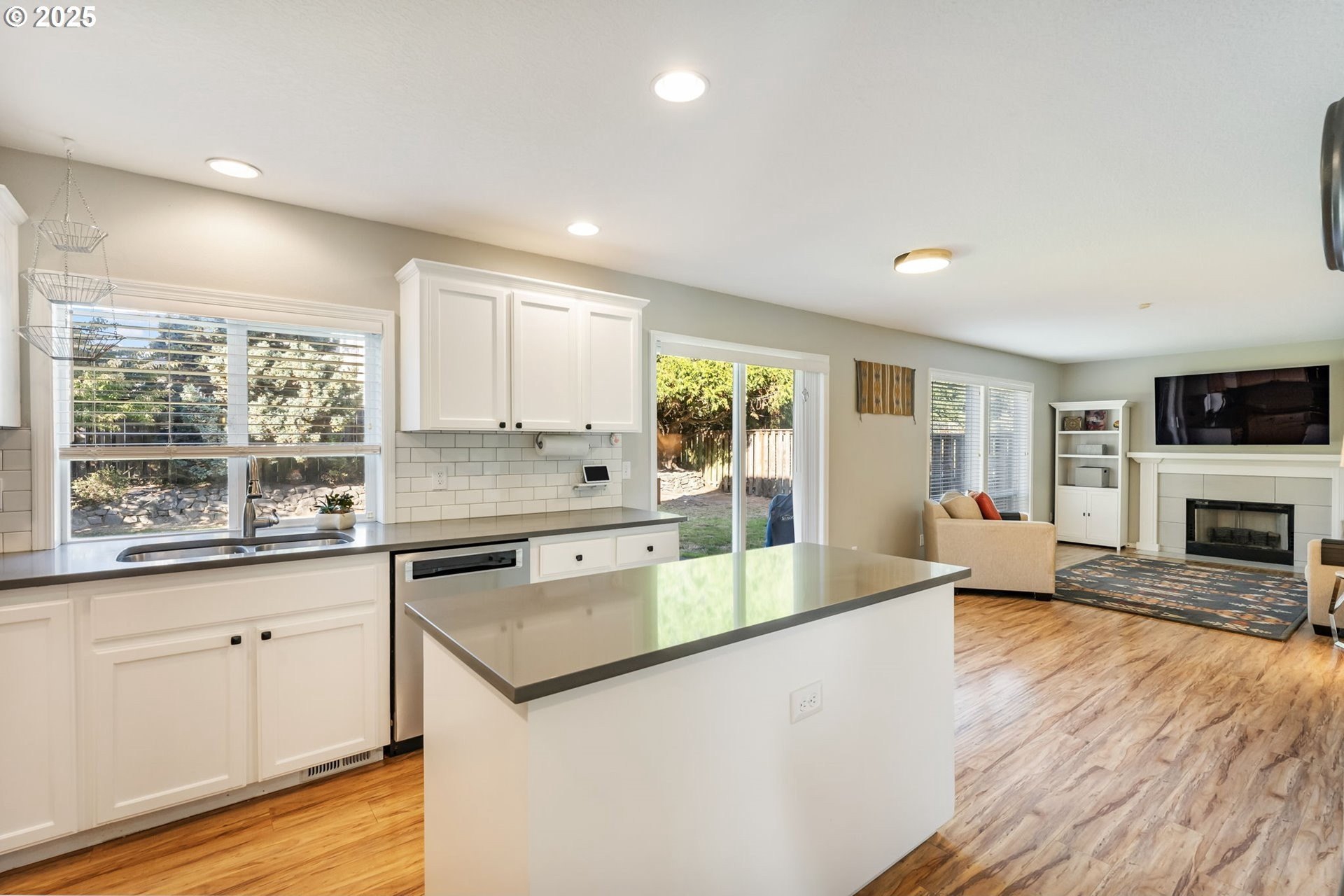 This remodeled home is easy to live in. The updated, light-filled kitchen with island boasts a classic subway tile backsplash, quartz counters, and fancy stainless steel appliances. The island is ideal for food prep and the pantry is essential for storing the staples you need for everyday living. Cozy up to the wood burning fireplace on winter nights and BBQ on the back patio year-round. The spacious primary suite with tray ceilings, walk-in closet, double sink vanity, walk-in shower and private toilet room is an oasis. All bedrooms feature large closets with double doors and the laundry room is upstairs for maximum convenience. New tear-off roof, furnace and A/C in 2024. Rock Creek is a quiet neighborhood yet it is less than 3/4 mile to the Happy Valley Library and just under a mile to Happy Valley Station featuring 20 food carts. Come and tour this house today! We don't expect this gem in Rock Creek to be on the market for long.