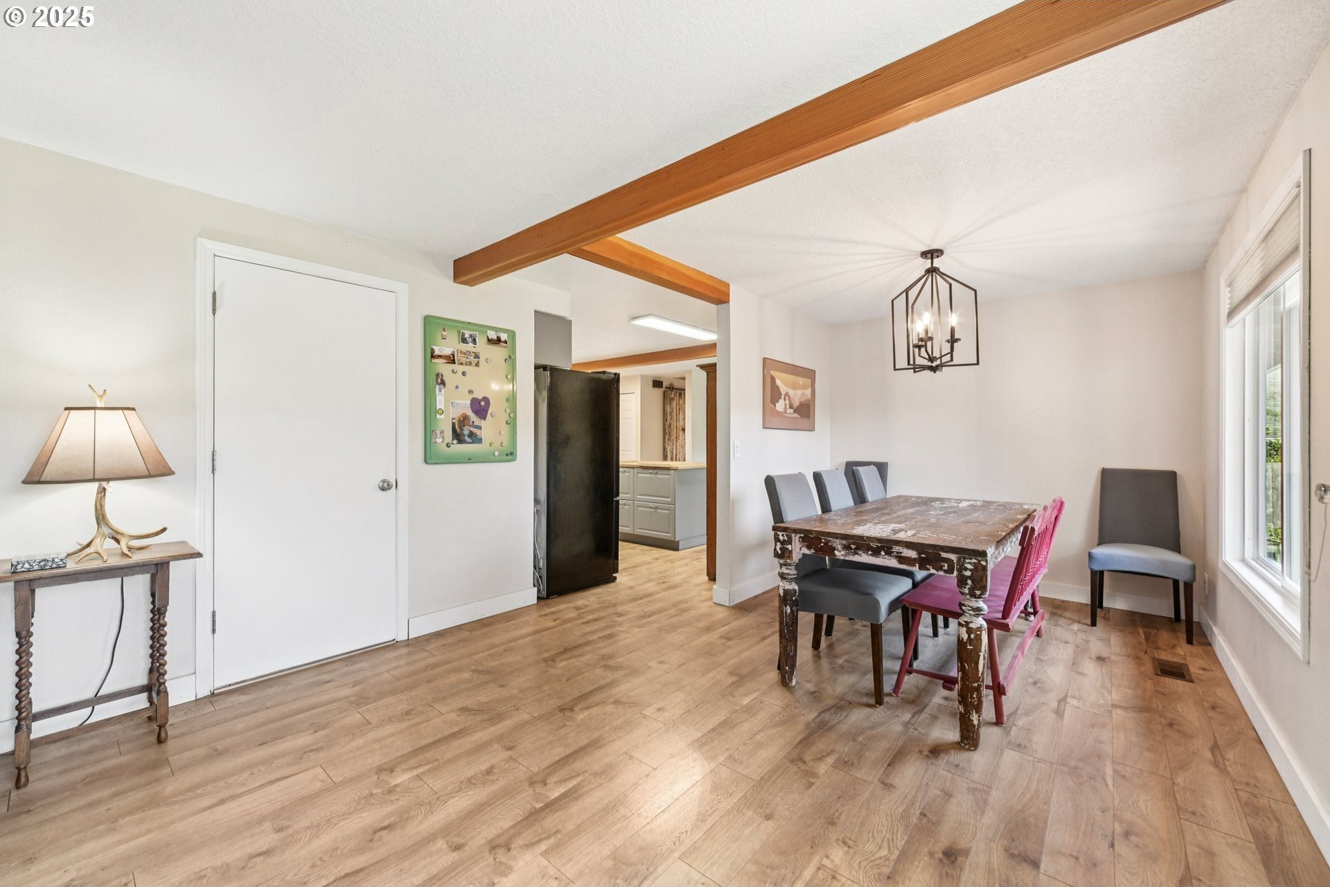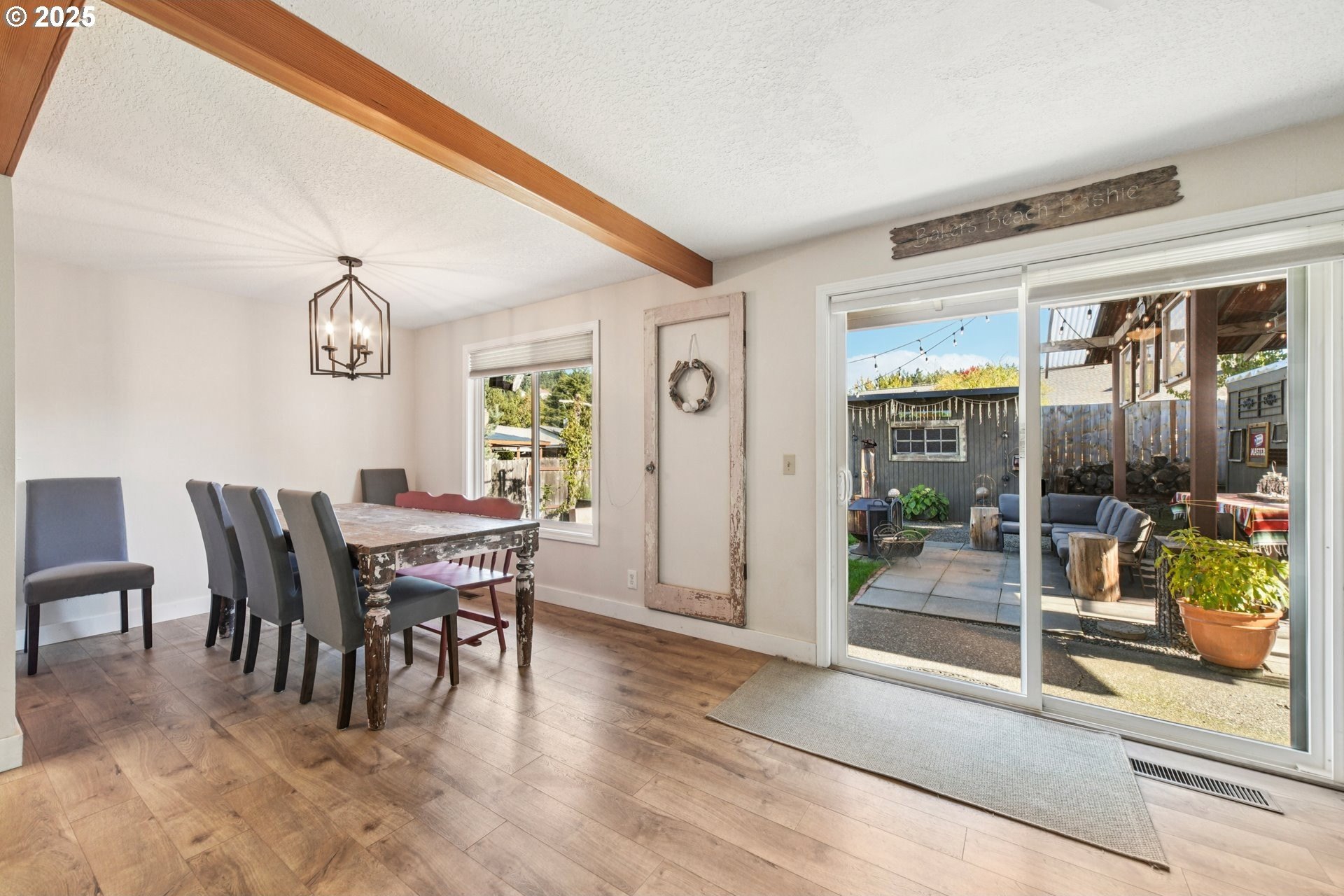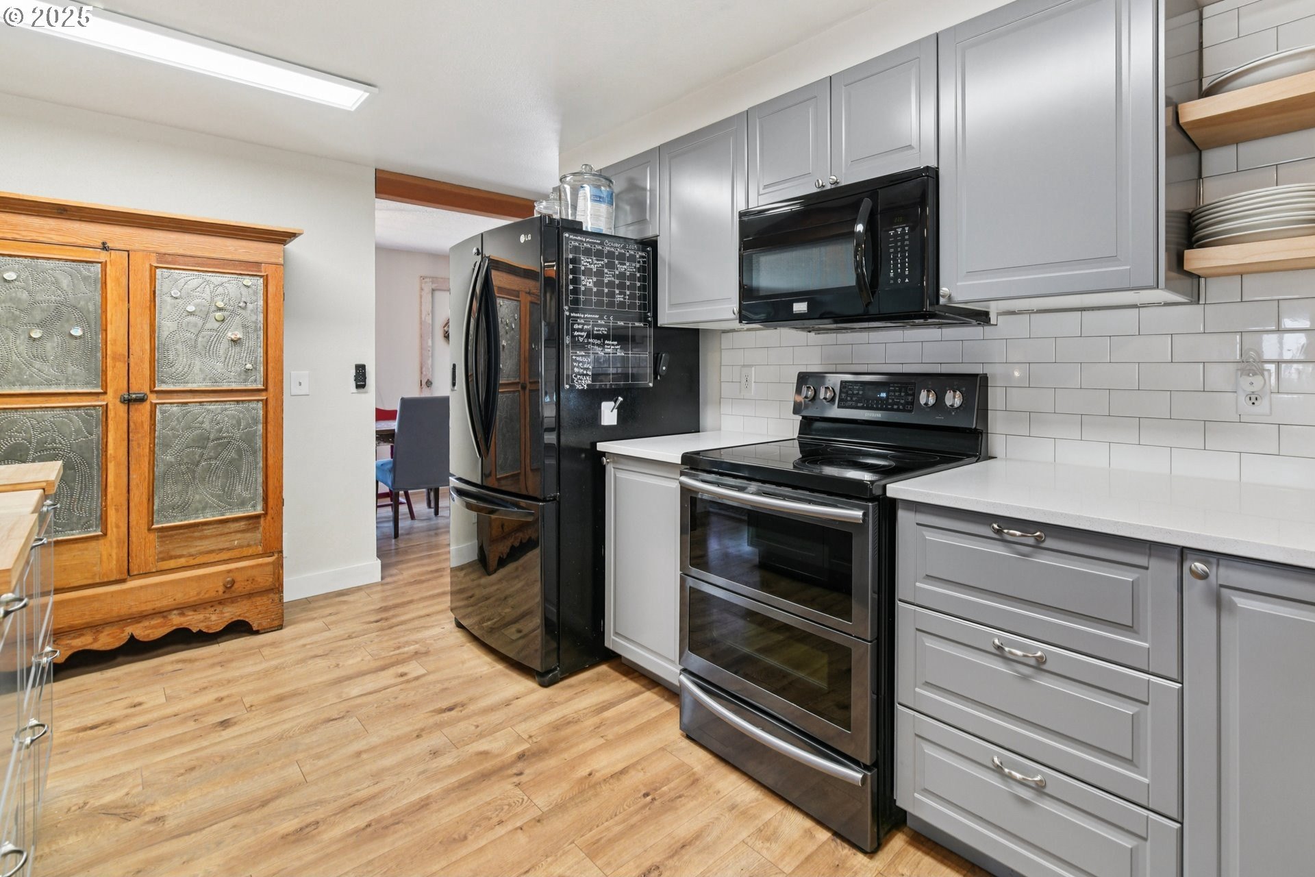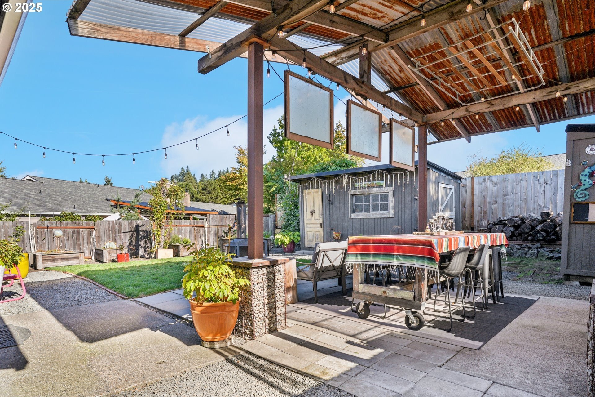 Welcome to this beautifully cared-for, move-in ready one-level home featuring 3 spacious bedrooms and 2 full bathrooms. From the moment you arrive, you'll be greeted by an inviting covered front porch that sets the tone for the warmth and character found throughout.Step inside to discover a stunning kitchen with a perfect blend of style and function, complete with a butcher block island with eat-at seating, sleek quartz countertops, open shelving, and charming exposed beams. The living space is filled with natural light and enhanced by newer LVP flooring and tasteful rustic-modern finishes, including a sliding barn door that adds both style and convenience.The fully fenced backyard is ideal for entertaining with a large covered patio, raised garden beds, and a storage shed—offering plenty of space for gardening, gatherings, or just relaxing outdoors.Additional highlights include a newer roof, located in a quiet and very walkable neighborhood, you'll enjoy the tranquility of suburban living while still being close to all amenities. This home is spotless, full of character, and ready for its next owner.