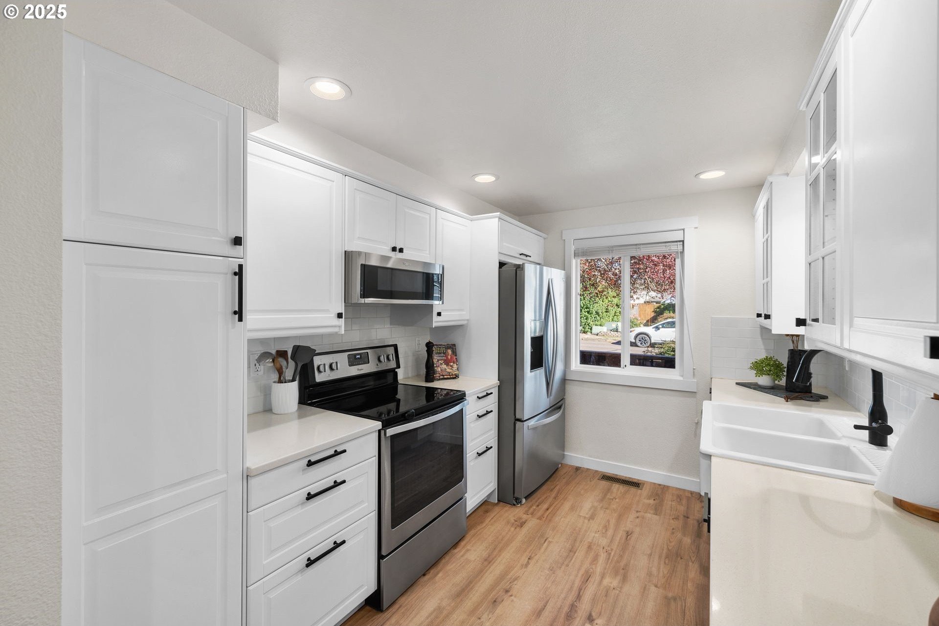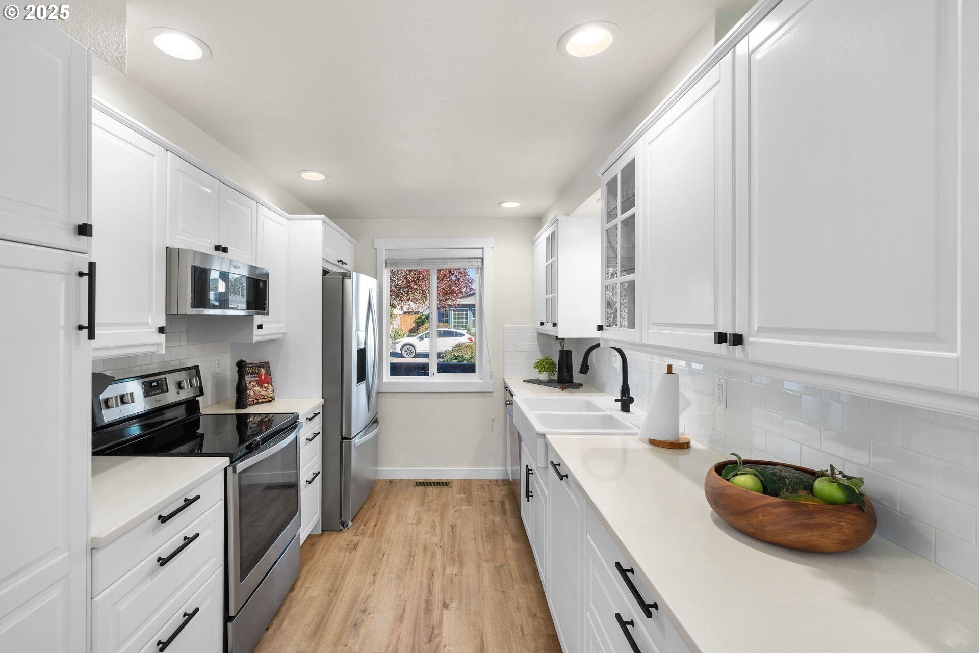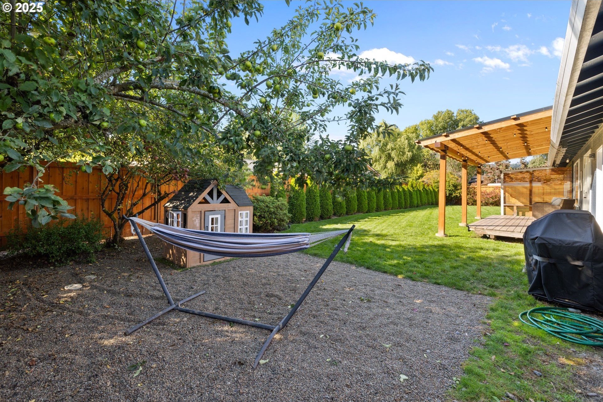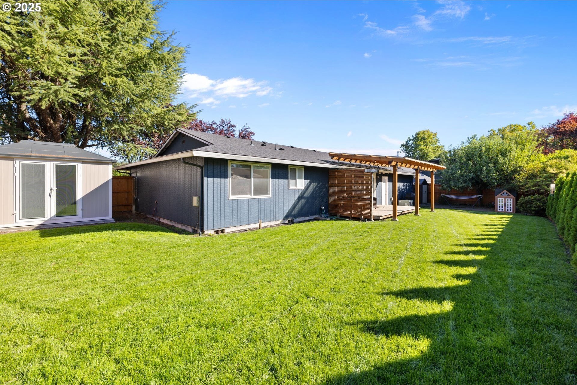 Beautifully updated and move-in ready, this single-level home shines with modern style and thoughtful details throughout. Luxury vinyl plank flooring creates a seamless flow, complementing the fully renovated kitchen and bathrooms featuring elegant quartz countertops and upgraded finishes. Solid core doors and charming barn-style closet doors add a touch of sophistication. Enjoy peace of mind with a new roof installed in 2021 and all-new light fixtures that bring warmth and character to every room. The spacious, fully fenced yard offers both privacy and room to play, complete with an outdoor den equipped with heating and cooling—perfect for a home office, gym, or lounge. Additional highlights include RV parking, a handy garden shed, and quality upgrades inside and out. Designed for comfort and versatility, this home is the perfect blend of modern living and everyday ease. See the virtual tour to experience its full appeal!
