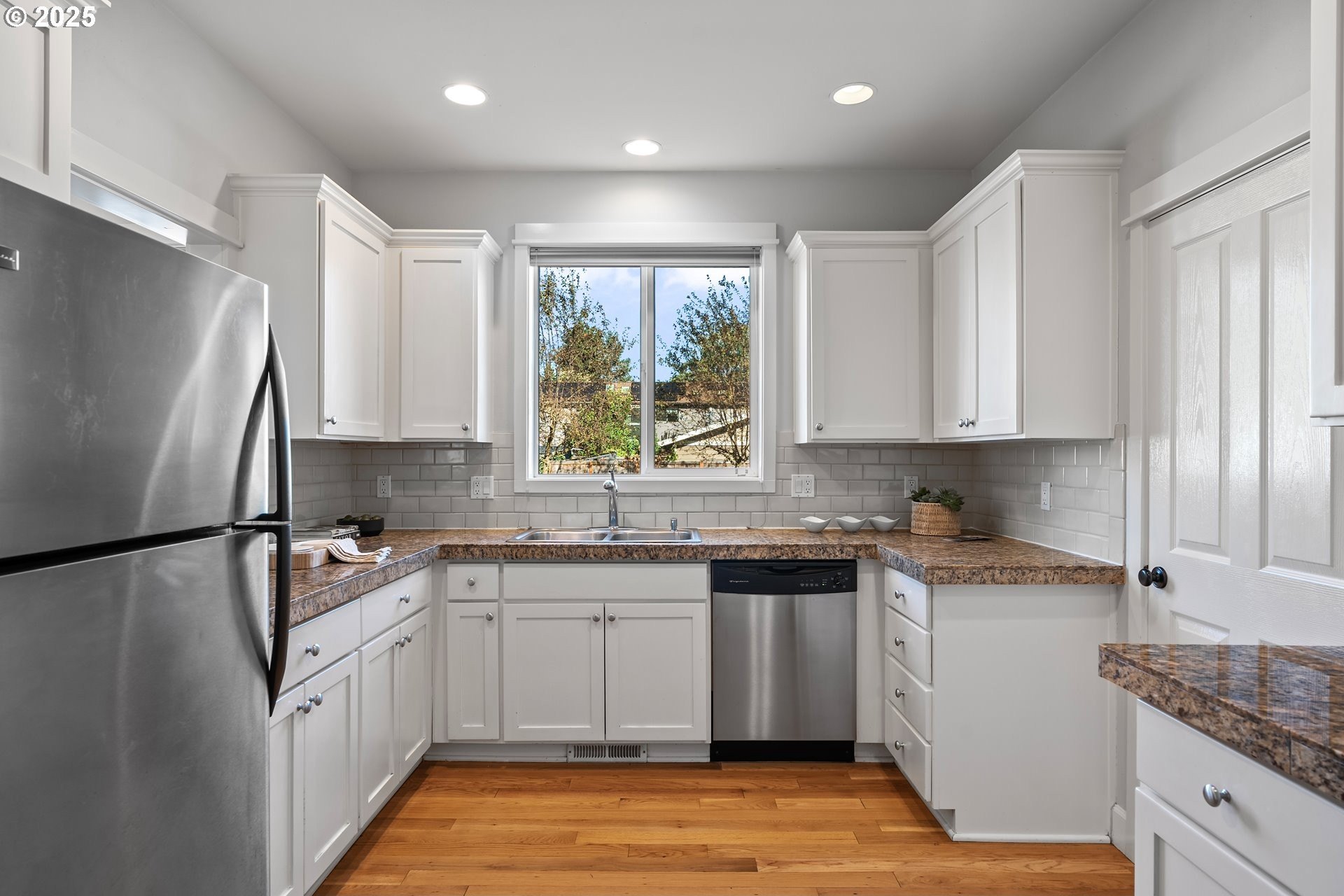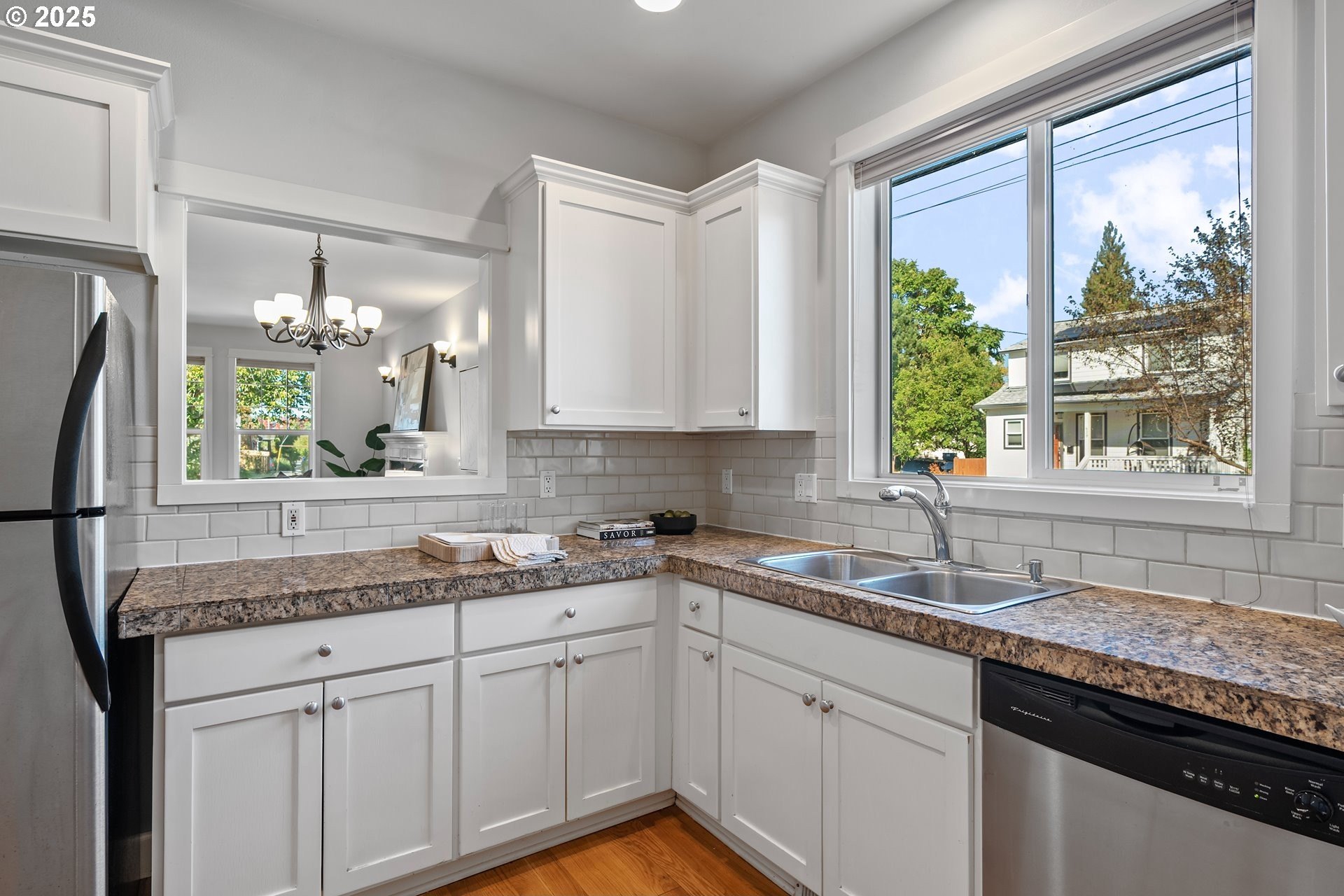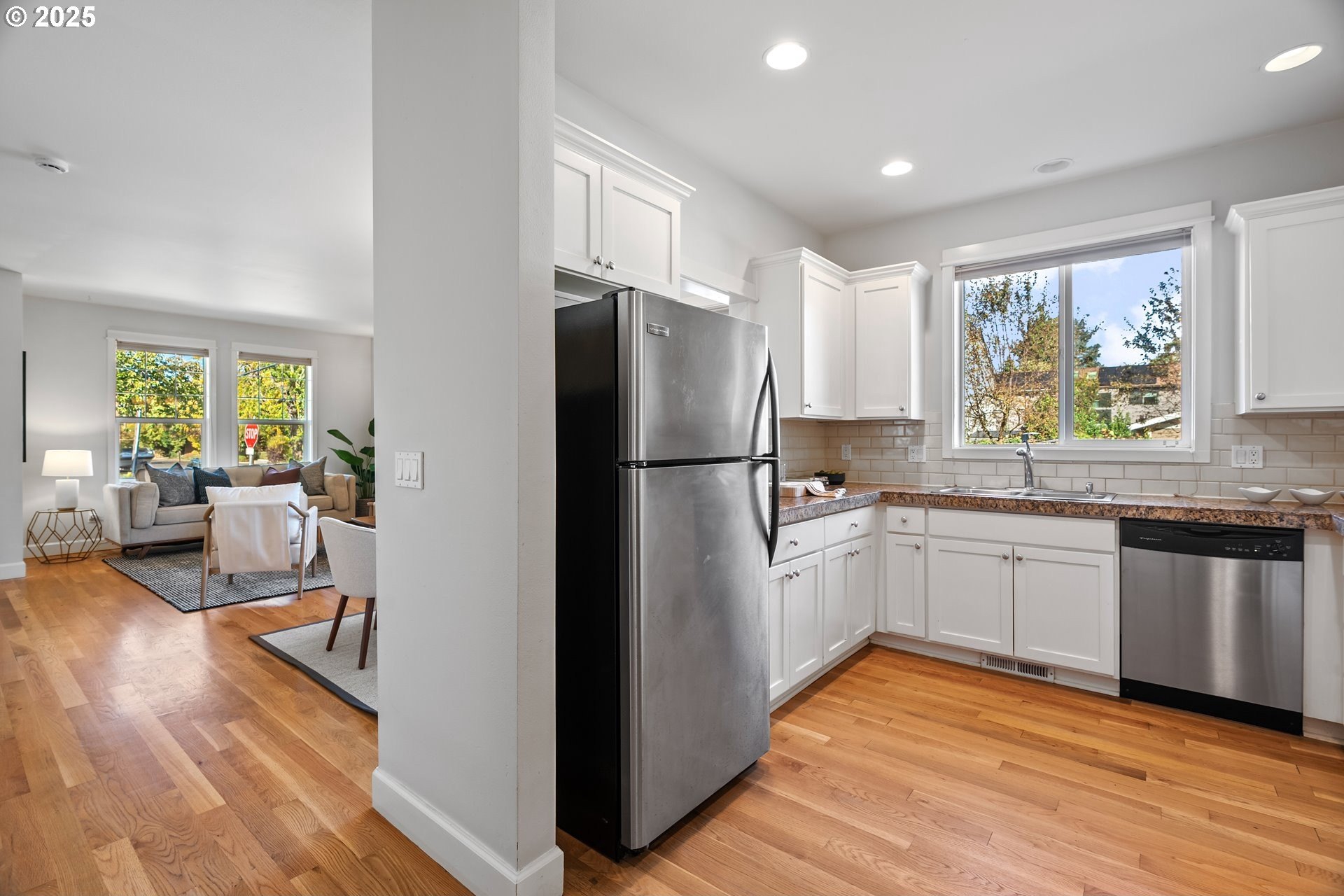 Welcome home! This beautiful 2-story townhouse is light-filled, move-in ready, and full of charm. The main level features an open layout perfect for everyday living and entertaining with hardwood floors, a cozy gas fireplace, and large double-pane windows that fill the space with natural light. The kitchen has a timeless design with stainless steel appliances, ample counter space and cabinetry, plus a convenient pass-through window to the dining area. Upstairs, you’ll find all three bedrooms, including a spacious primary suite with two closets (one walk-in) and a private bath. The bathrooms and laundry room feature durable marmoleum flooring, and the separate laundry area, just off the kitchen, has access to the back patio and the attached garage. Enjoy hanging out on the front porch, perfect for morning coffee or evening unwinding. With no HOA (just a simple maintenance agreement for the two units), you’ll appreciate both independence and ease. Ideally located near the Mississippi District and Williams Corridor, you’re just minutes from shops, dining, and community amenities. Walk Score: 85 | Bike Score: 100. All appliances included—just move in and enjoy! This is a great place that you don't want to miss! **OPEN HOUSE SUN OCT 12TH NOON-2PM**