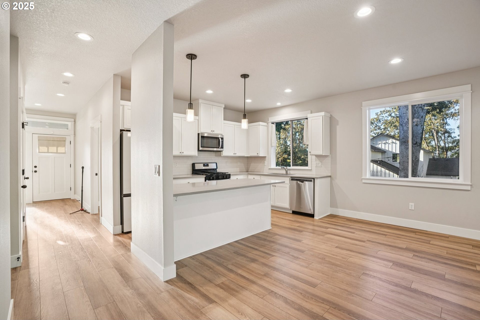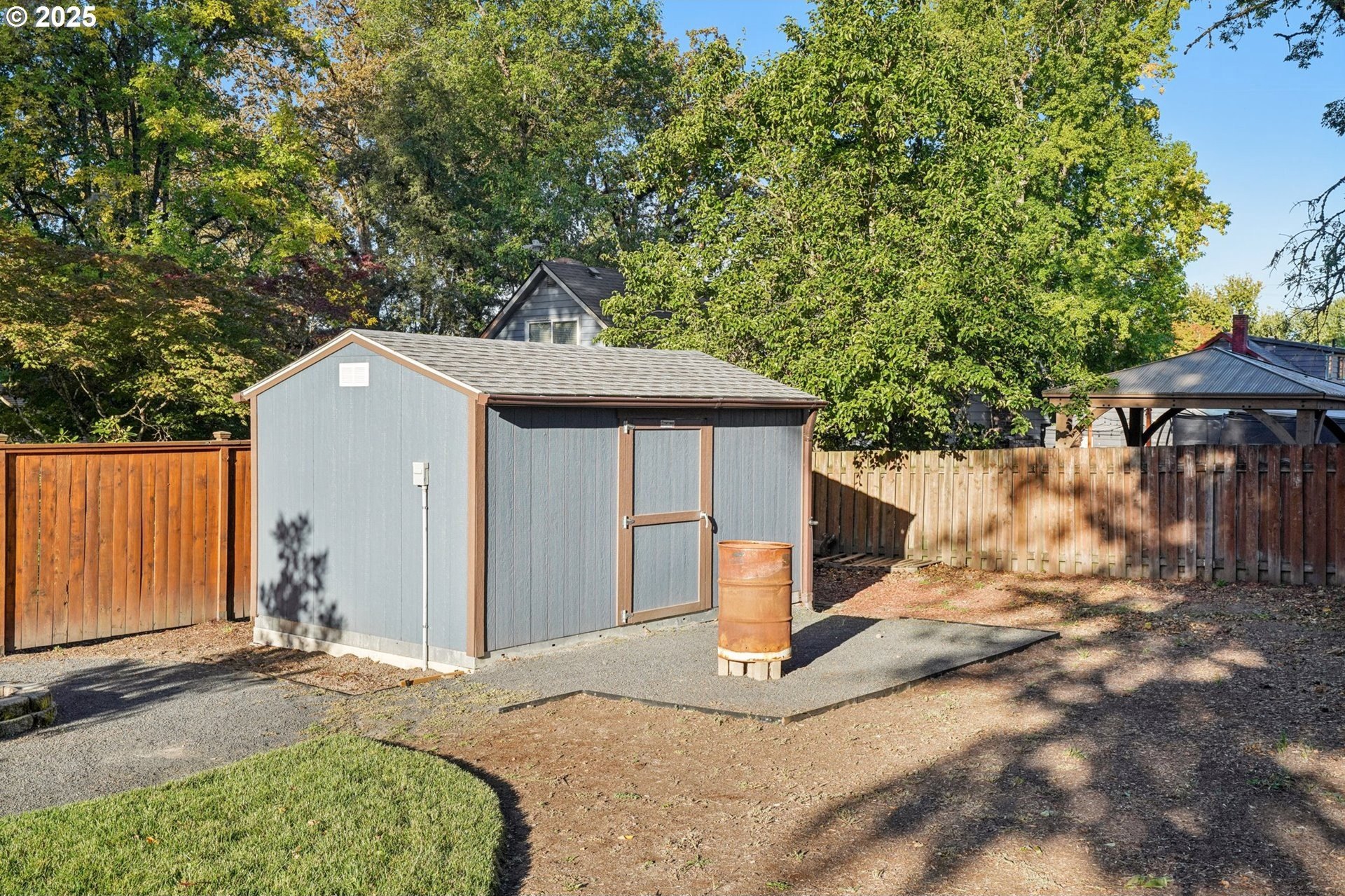 Better than new in Milwaukie! This one-level ranch sitting on nearly a quarter acre packs a punch with 4 spacious bedrooms and a bright open layout filled with natural light. The cozy fireplace makes the living area feel extra inviting, and the large kitchen is ready for anything—featuring ample counter and cabinet space, sleek quartz counters, a gas range, stainless steel appliances, and a convenient eating bar. The Primary Suite offers a relaxing retreat with a beautifully designed bathroom and a generous walk-in closet. Step outside to your own park-like backyard. Yard has been completely leveled and upgraded with french drains and a retaining wall. The oversized covered patio is perfect for year-round use, and there’s even a powered tool shed for extra storage or projects. This home has all the updates you’re looking for— move right in and enjoy!