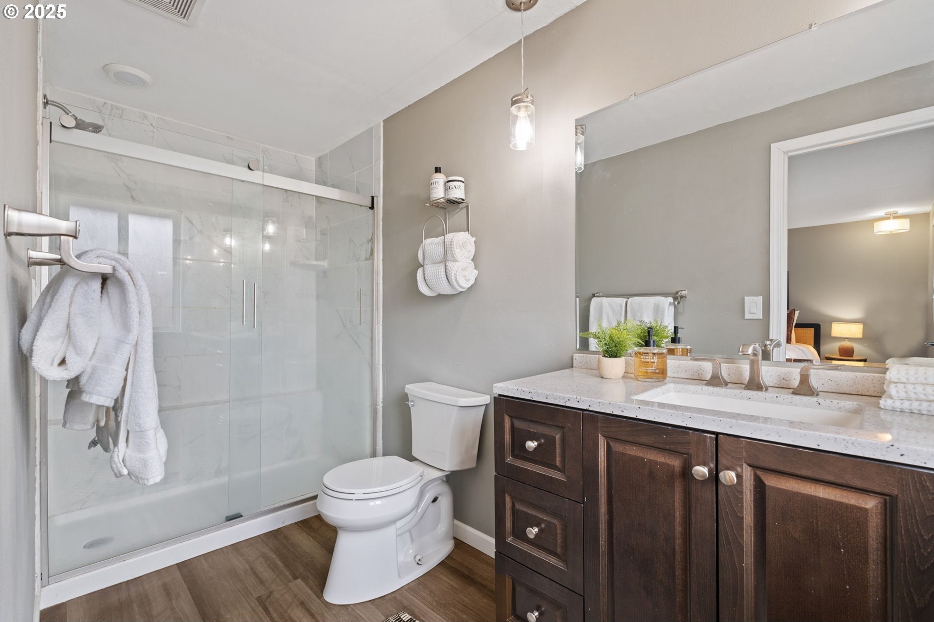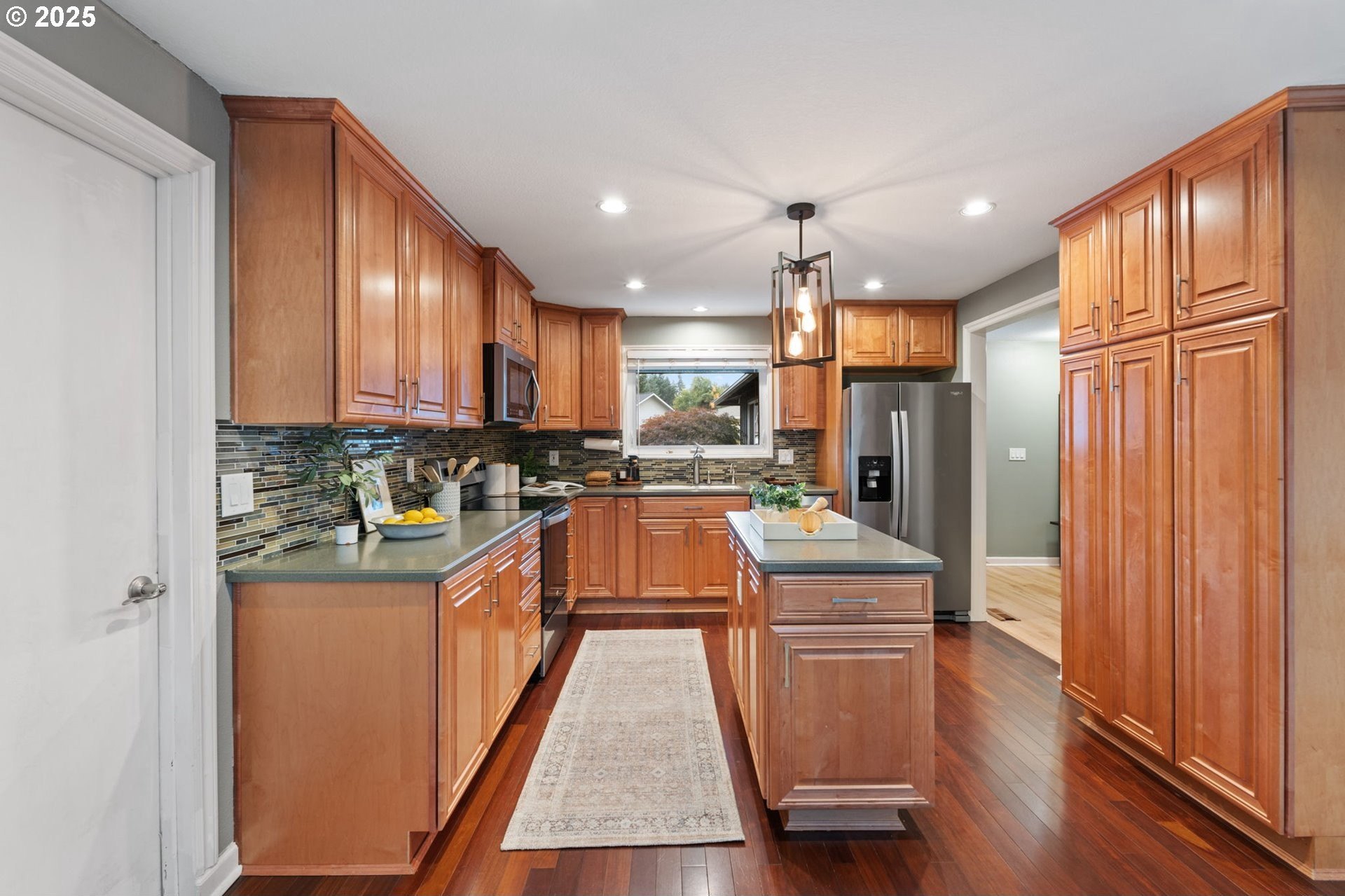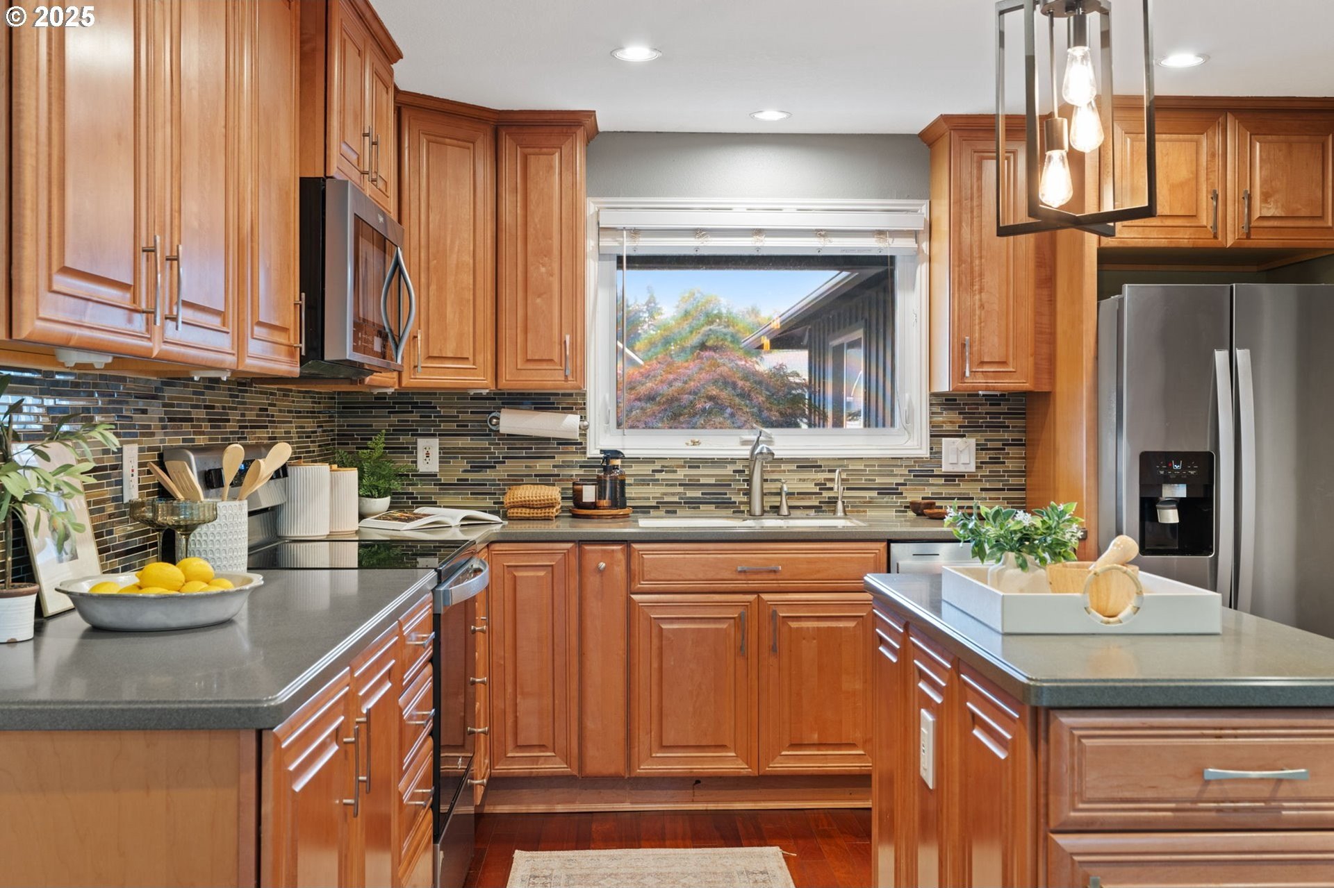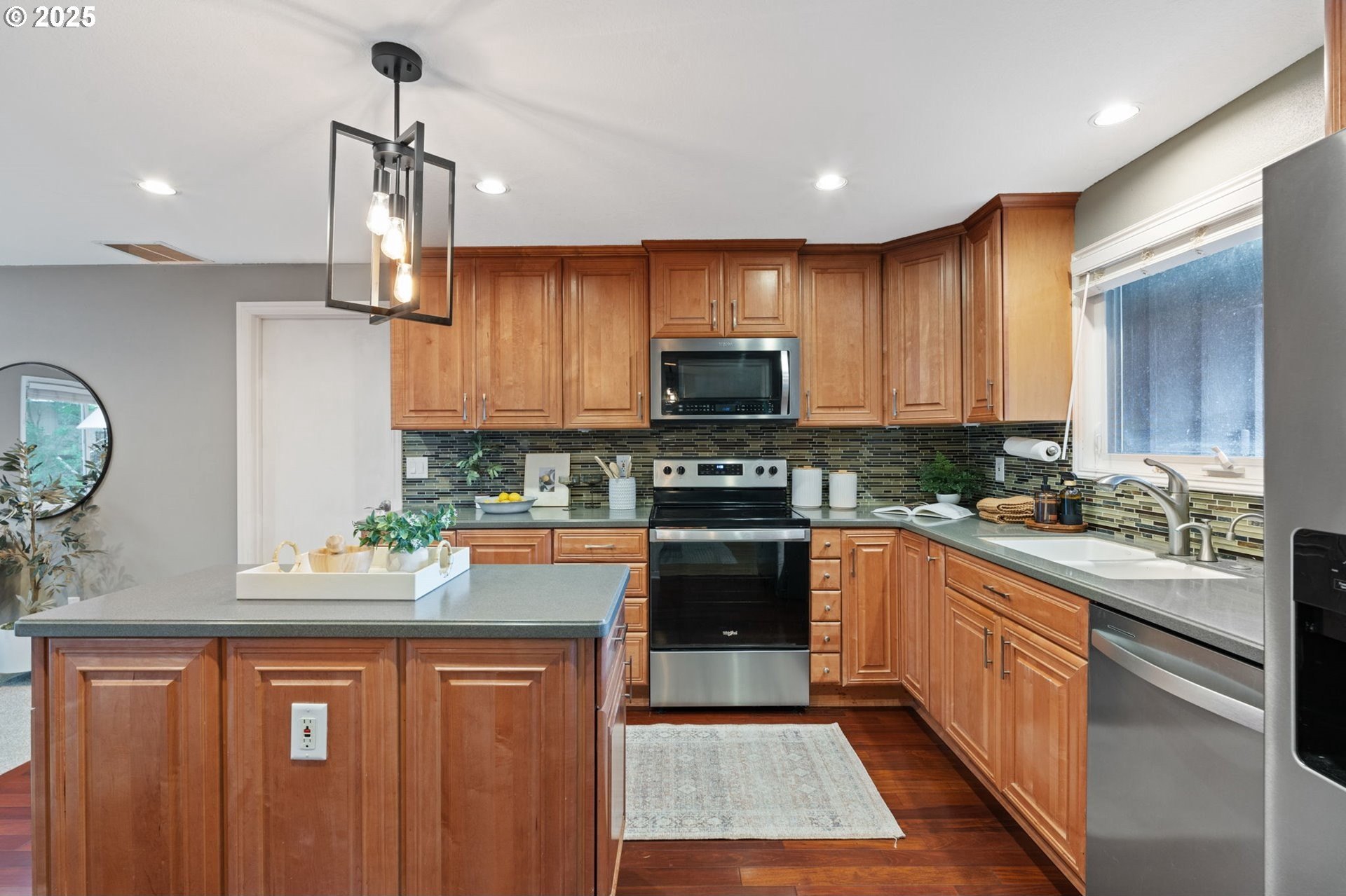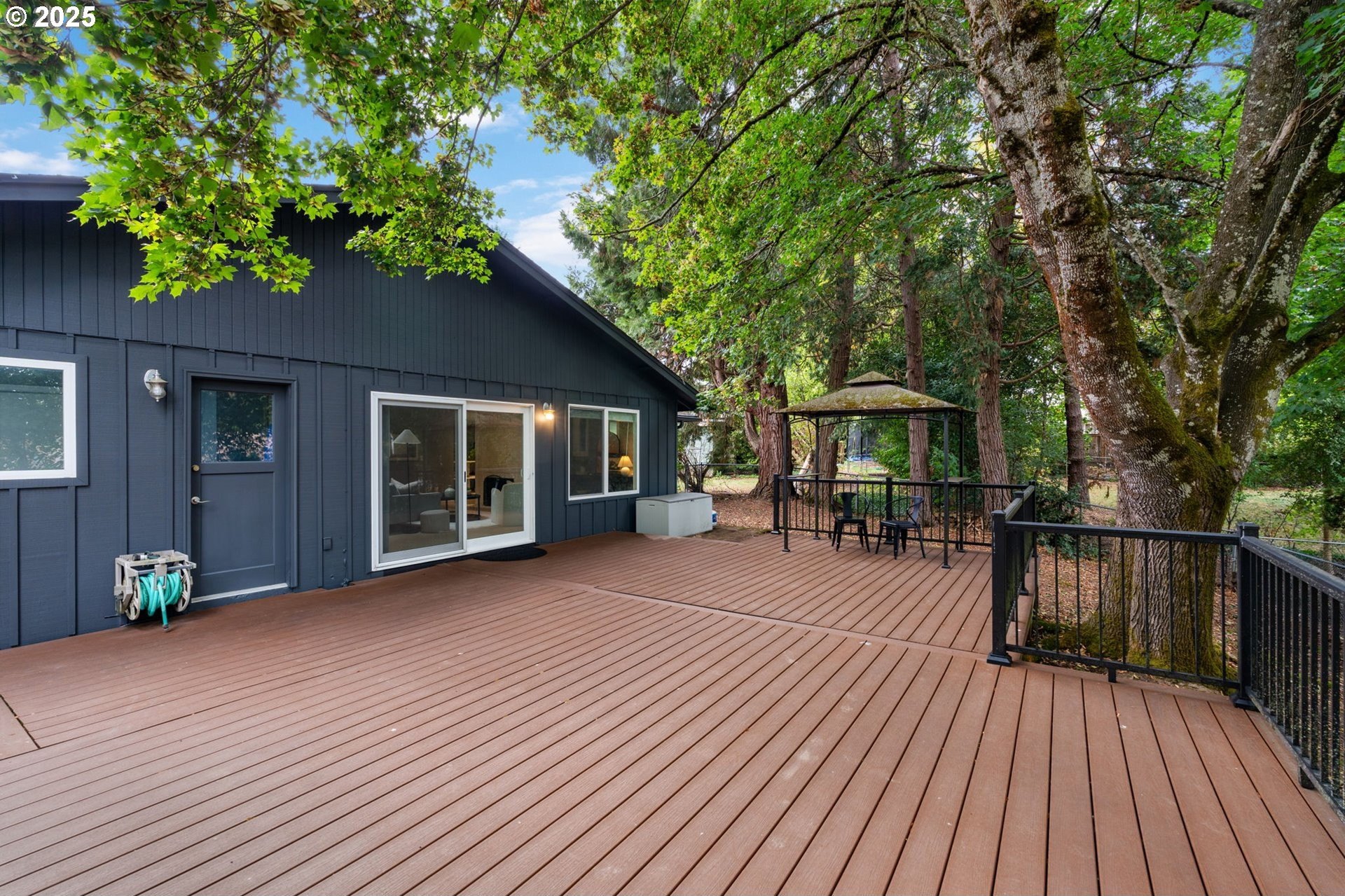 Situated on a quiet cul-de-sac in Tualatin’s Navajo Hills, this single-level ranch offers thoughtful updates and modern efficiency. The open floor plan flows easily from the remodeled kitchen—featuring maple cabinetry, island storage, and updated stainless steel appliances—into the dining, living, and family rooms, anchored by a double-sided fireplace.Recent improvements include remodeled baths, new carpet and vinyl plank flooring, recent interior paint, and fresh exterior paint. The oversized deck, rebuilt in 2020, is the centerpiece of the property—offering generous space for entertaining and overlooking a large, fully fenced yard that’s perfect for gatherings, play, or gardening.Tesla solar panels with a Tesla Powerwall keep electric costs near zero, while a new furnace and A/C (2023) ensure year-round comfort. With its oversized driveway, RV parking, and a neighborhood known for walkability and safety, this home combines modern upgrades with inviting spaces both inside and out.