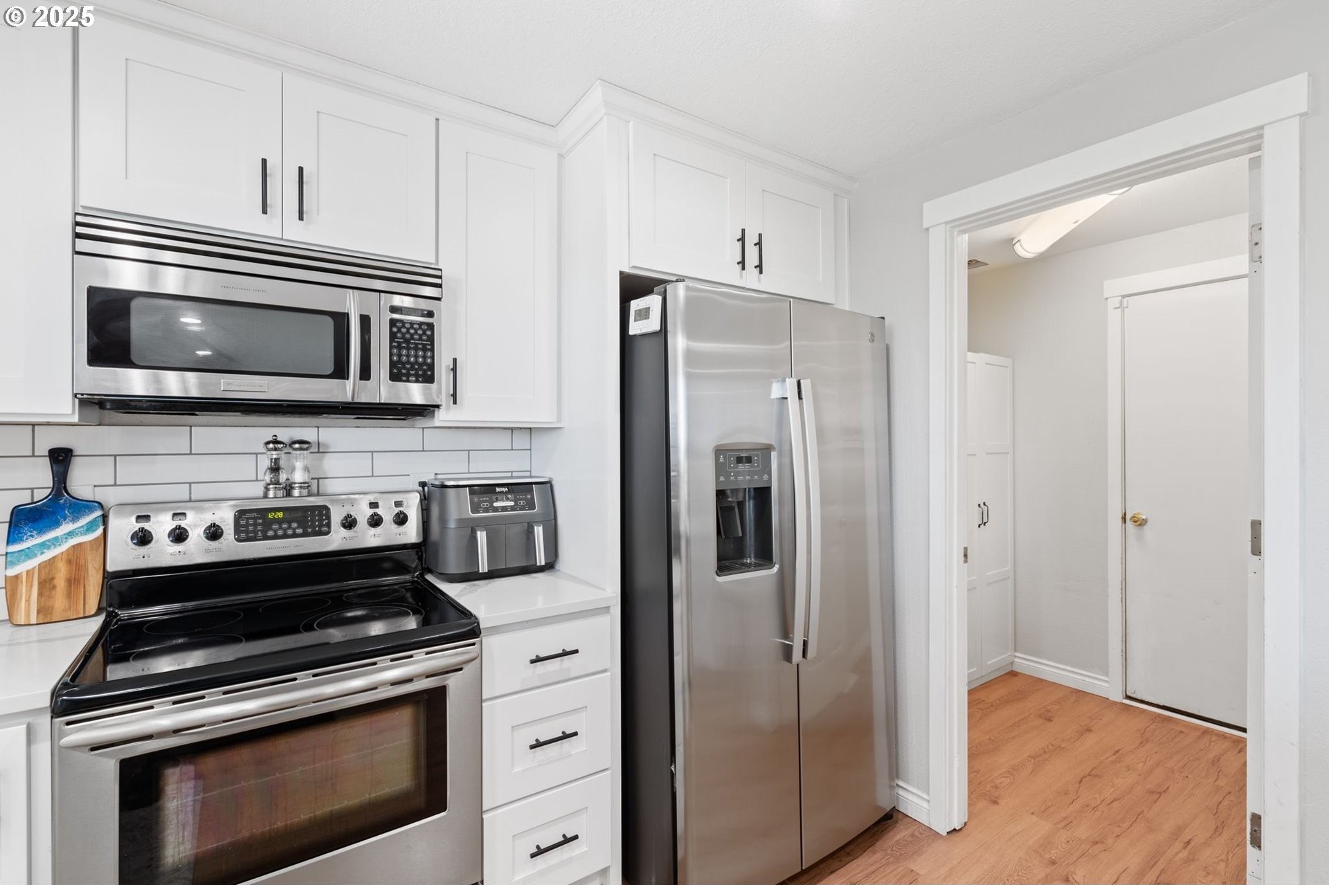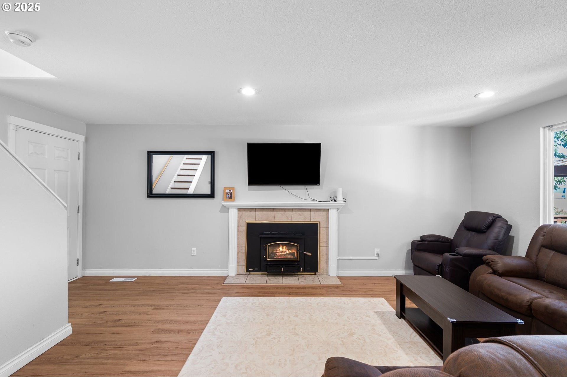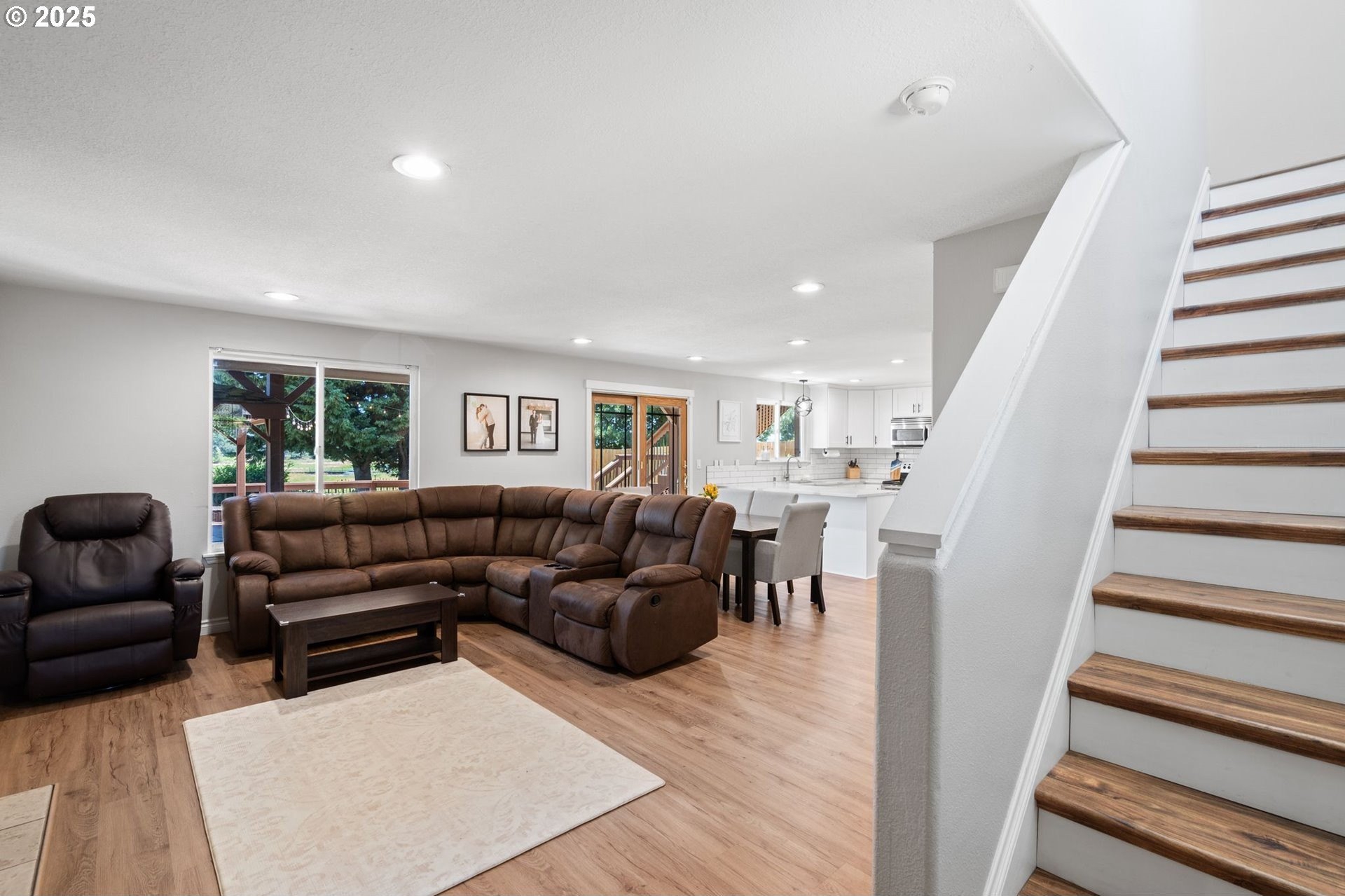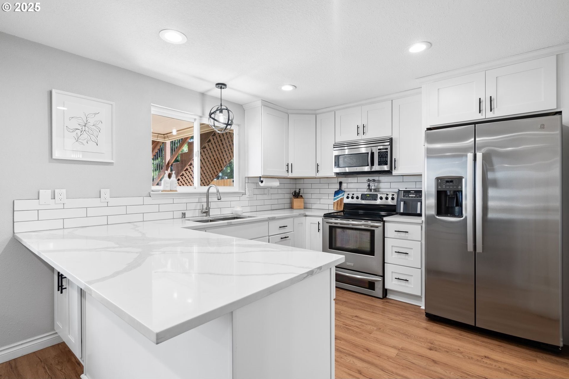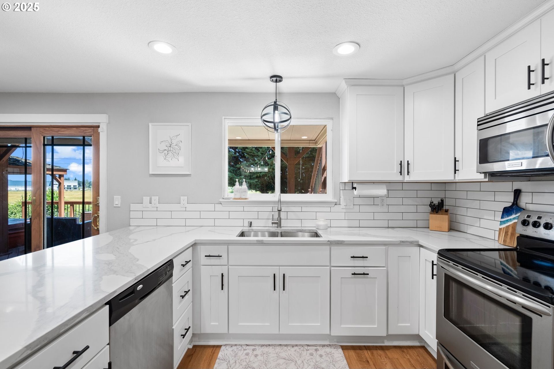 Tucked away in a quiet cul-de-sac, this beautifully maintained home o ers the perfect blend of privacy, thoughtful updates, and functionality. Fresh exterior paint! A long driveway provides ample parking, and the home backs to protected greenspace with no rear neighbors. Enjoy direct access to a gated trail and extended land—ideal for gardening, RV/boat storage, or simply extra outdoor space.The backyard is built for year-round enjoyment, with a two-level deck (accessed from the main living space, primary, and second bedroom), a covered section for rainy days, paver patio, re pit, and tool shed.Inside, the updated kitchen features quartz countertops, tile backsplash, white cabinetry, and stainless appliances, complemented by wood laminate ooring throughout. A cozy wood-burning replace insert adds warmth and charm.Bathrooms have been stylishly updated, and two bedrooms include batten board accent walls for a custom feel. The primary suite o ers a walk-in closet, barn door, and tiled walk-in shower.Additional perks: built-in laundry storage, whole-house repiping, and a prime location close to toprated schools, shopping, dining, and healthcare.Lovingly cared for by the homeowner—a local contractor—this home truly shines.