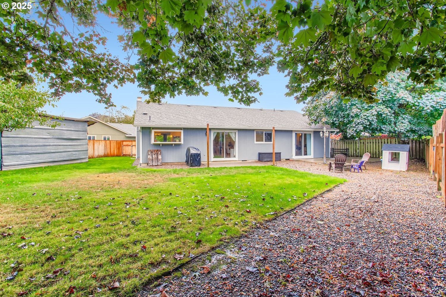 OPEN HOUSE: Saturday 10am-1pm! Move-in ready one level home in Hillsboro! You're going to love the huge kitchen, with storage galore, granite counters, a spacious island and stainless steel appliances, including a double oven gas range! There is a great room off the kitchen that could be a dining area, office, family room, you name it! It makes for a flexible space with many options. The formal dining room is currently set up as a reading room, showing off the versatility of that space too! One step down to the sunken living room with vaulted ceilings, a fireplace and many windows makes this a room that you will love to spend time in. All three bedrooms are down the hall, with the primary suite having its own exterior door to one of the two backyard patios. The fully fenced backyard also has a fire pit, raised garden, dog run and a generous outbuilding for tools, toys, firewood, and so much more! You'll notice the beautifully landscaped front yard, with the covered front porch as soon as you drive down to the end of the cul-de-sac. Don't miss the NEW exterior paint, NEW furnace and NEW AC! This is one home worth seeing in person! [Home Energy Score = 3. HES Report at https://rpt.greenbuildingregistry.com/hes/OR10242207]