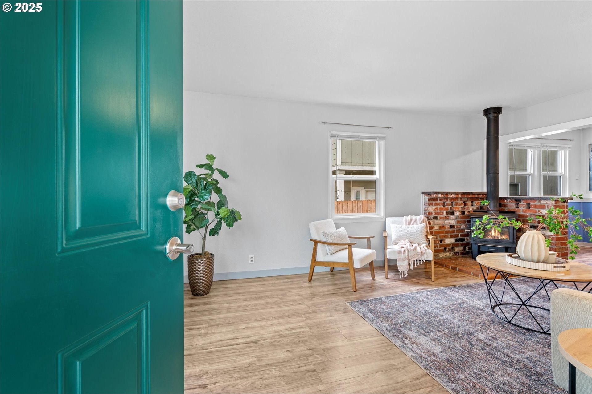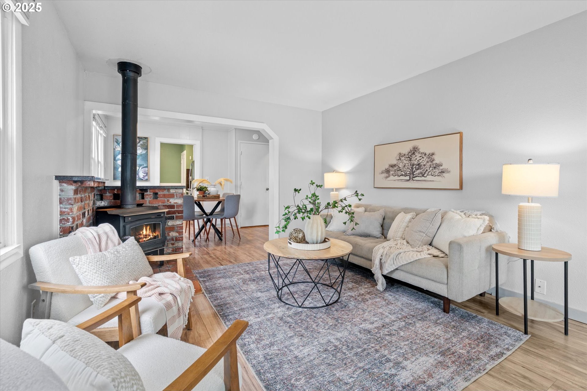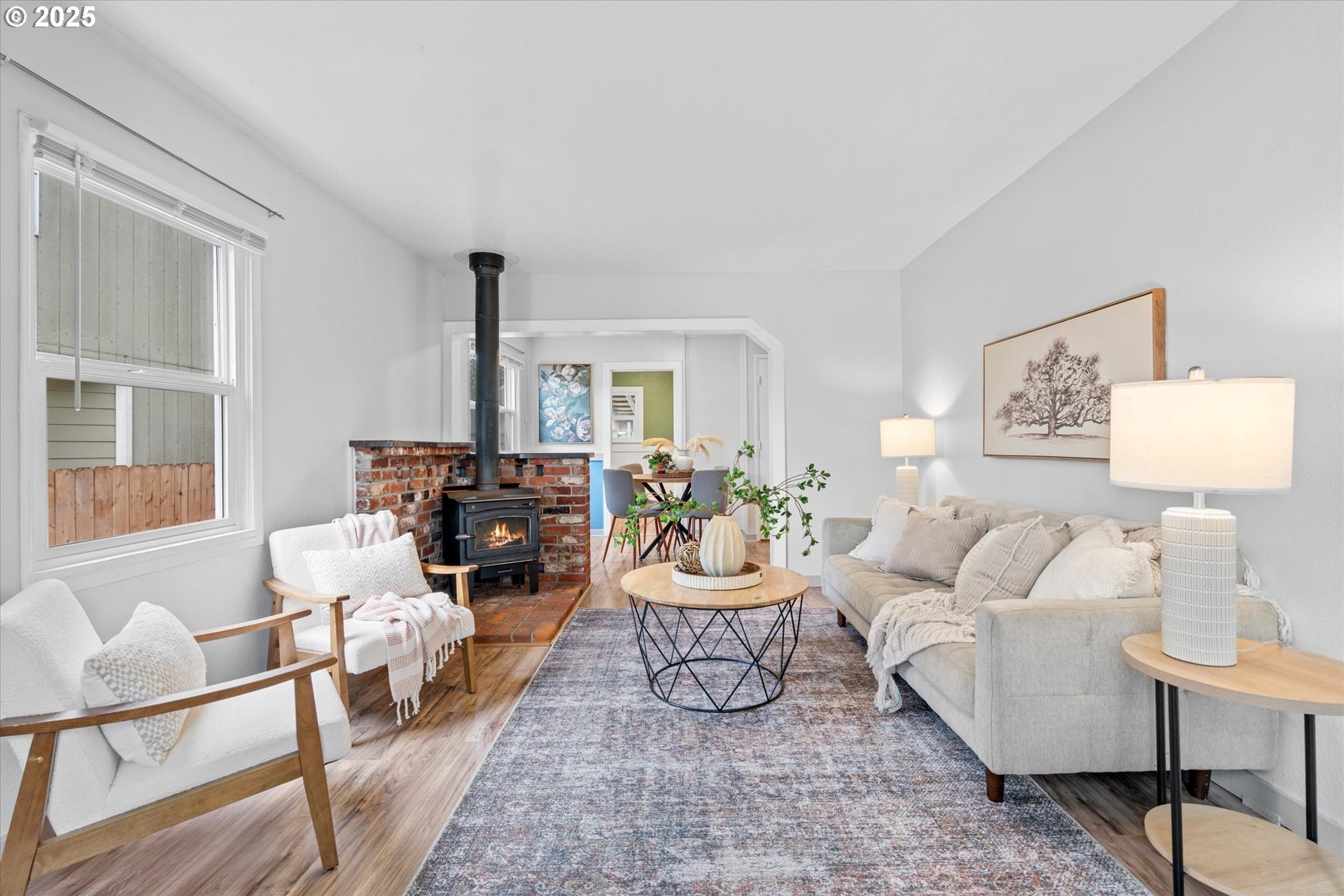 Delightful Camas Cottage combining original charm with modern comfort, ideally located close to downtown, parks, and top-rated schools. The main level features 2 inviting bedrooms and 1.5 baths with new tub, sink, and toilets, plus a third (non-conforming) bedroom upstairs—perfect for guests, office, or flex space. You’ll love the bright kitchen with slab granite countertops, new SS appliances, and a glass-top range with convection oven/air fryer options. A cozy dining area connects easily to the living room, creating a warm, welcoming flow. The woodstove will keep you warm & comfortable all winter long.The finished basement includes a washer and dryer, plus dry storage space for added functionality. Step outside to a fully covered back patio for year-round enjoyment, complete with firepit and fenced yard featuring edible gardens ready for your harvest. Updates include forced air heat and central A/C (approx. 5 years old), roof (approx. 10 years old), partially updated water lines, new vapor barrier, and waterproofing. The newly asphalted shared driveway provides convenient parking.Full of character and thoughtful upgrades, this home offers the perfect blend of comfort, charm, and location—just minutes from all the best Camas has to offer!