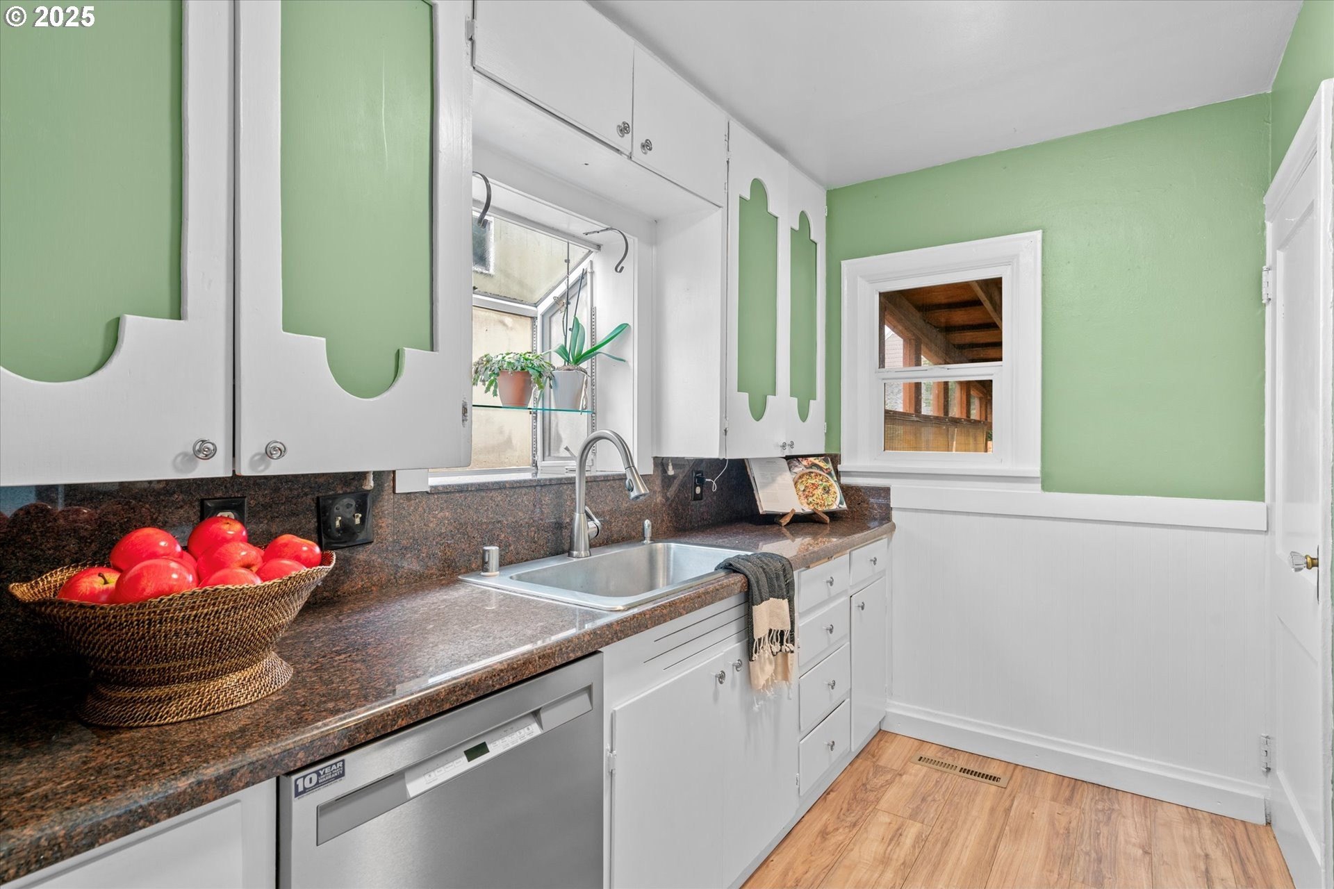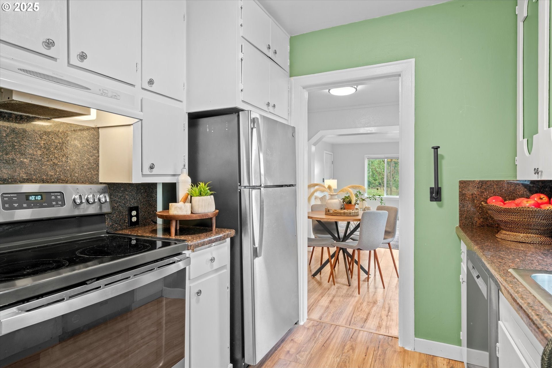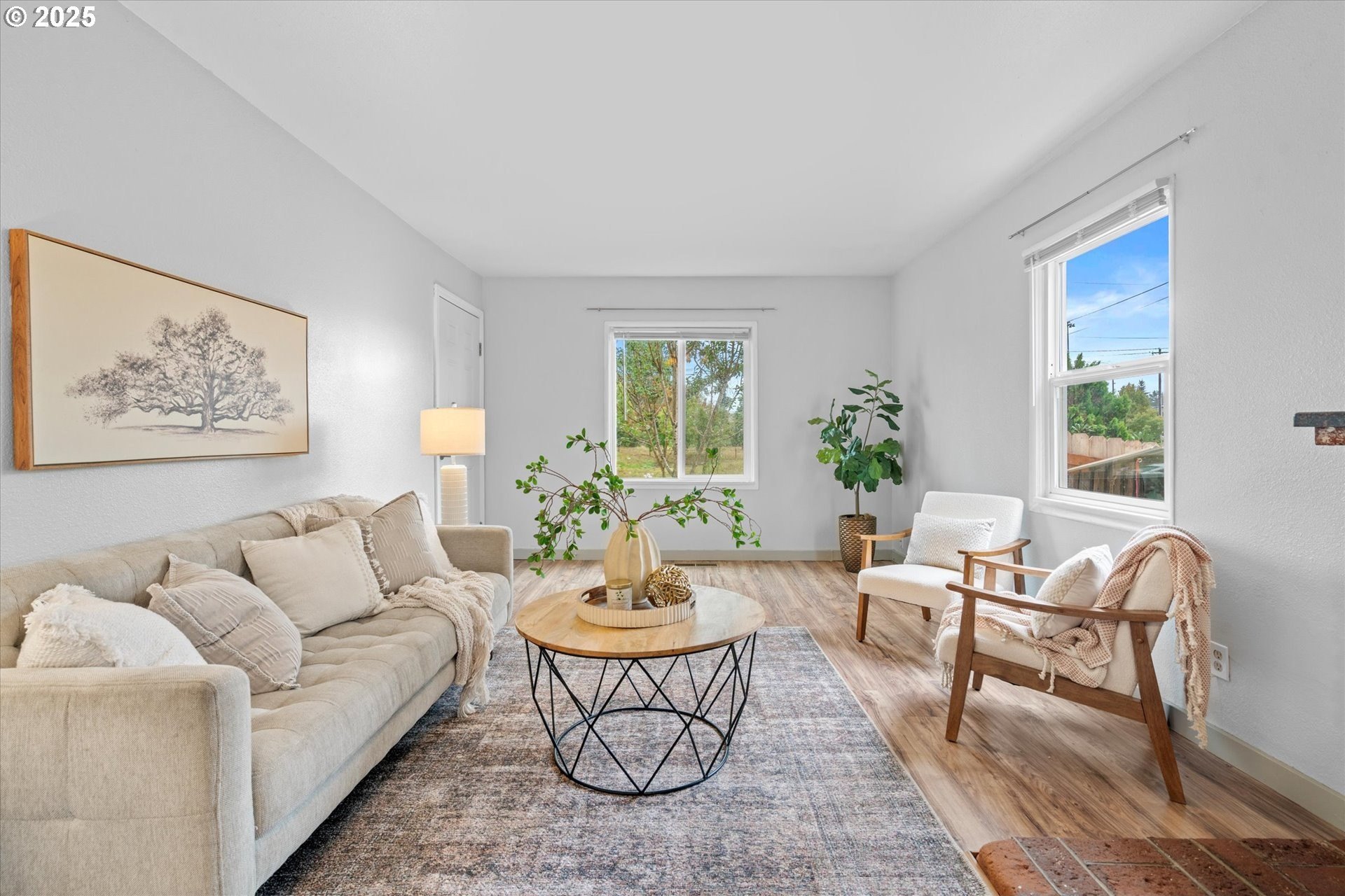Delightful Camas Cottage combining original charm with modern comfort, ideally located close to downtown, parks, and top-rated schools. The main level features 2 inviting bedrooms and 1.5 baths with new tub, sink, and toilets, plus a third (non-conforming) bedroom upstairs—perfect for guests, office, or flex space. You’ll love the bright kitchen with slab granite countertops, new SS appliances, and a glass-top range with convection oven/air fryer options. A cozy dining area connects easily to the living room, creating a warm, welcoming flow. The woodstove will keep you warm & comfortable all winter long.The finished basement includes a washer and dryer, plus dry storage space for added functionality. Step outside to a fully covered back patio for year-round enjoyment, complete with firepit and fenced yard featuring edible gardens ready for your harvest. Updates include forced air heat and central A/C (approx. 5 years old), roof (approx. 10 years old), partially updated water lines, new vapor barrier, and waterproofing. The newly asphalted shared driveway provides convenient parking.Full of character and thoughtful upgrades, this home offers the perfect blend of comfort, charm, and location—just minutes from all the best Camas has to offer!