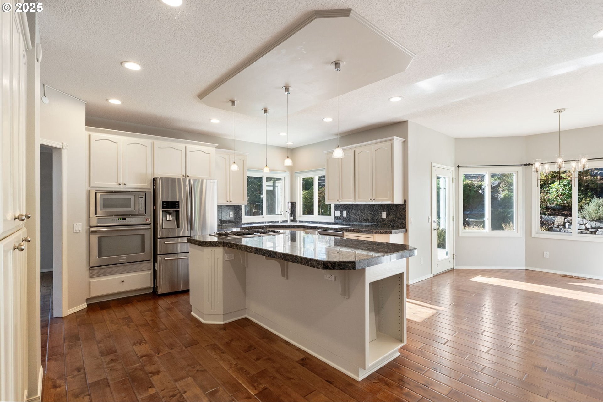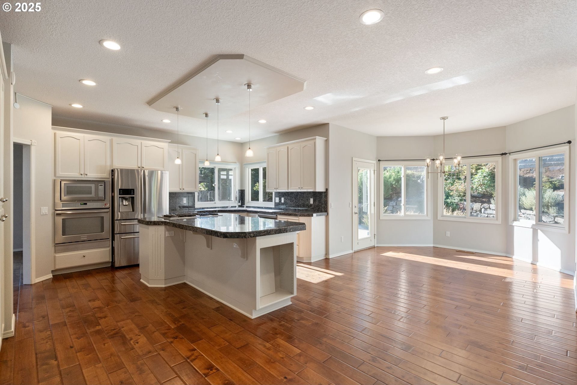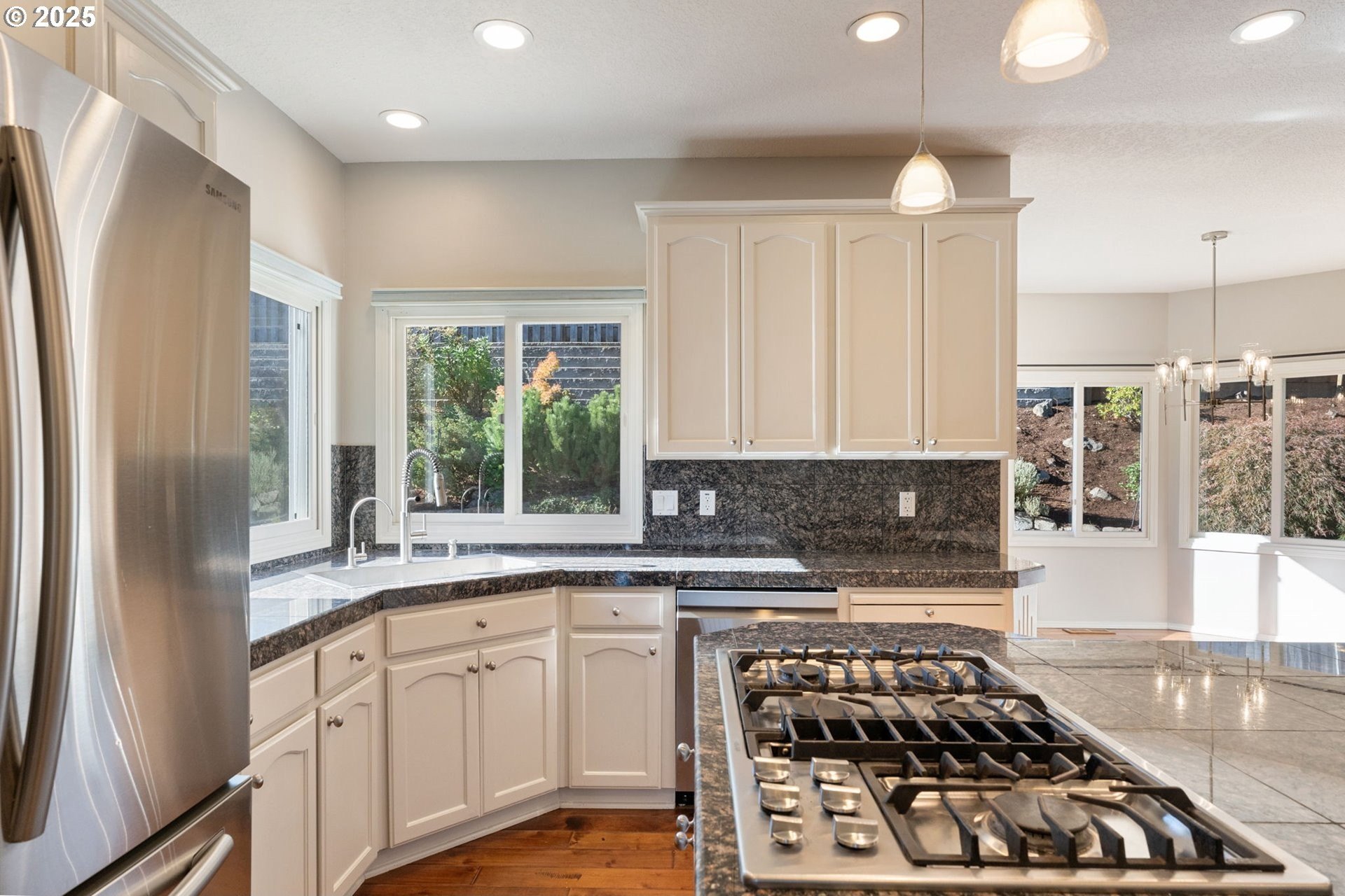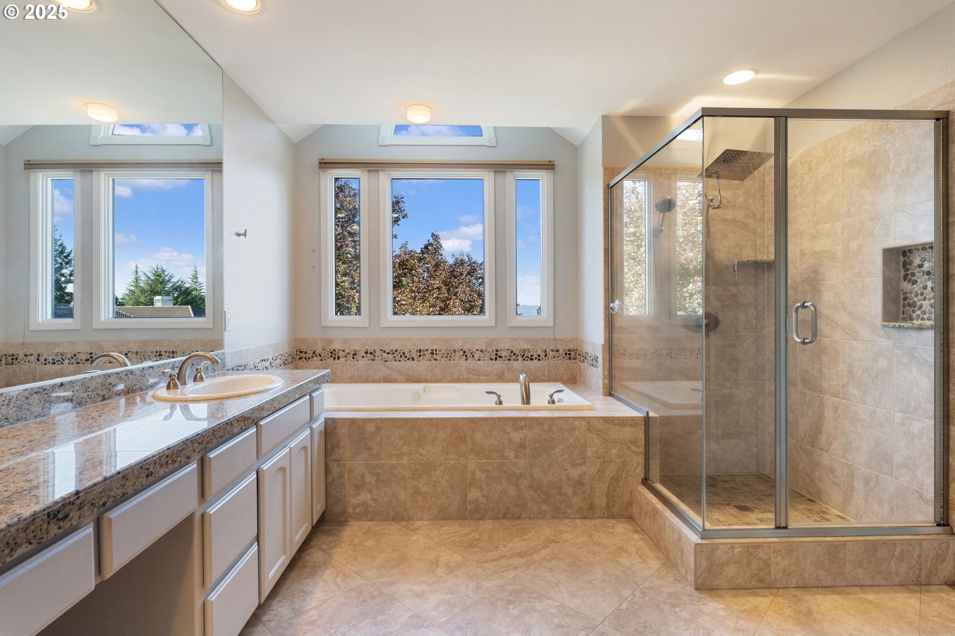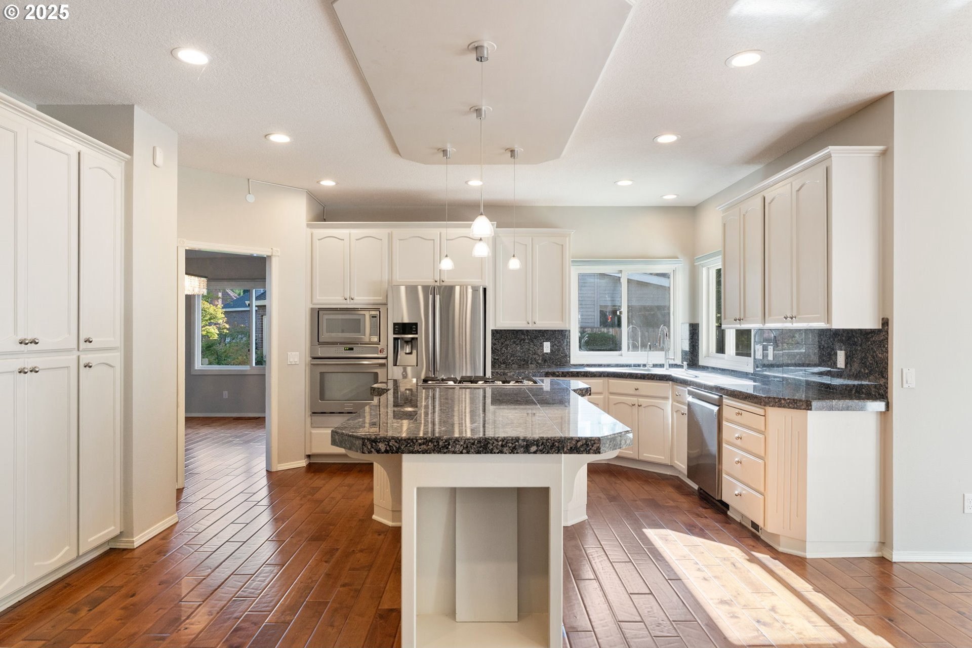 JUST LISTED! OPEN SAT 10/11 1-4PM. Beautiful, bright, spacious updated home on a quiet 10,000sf lot on a cul-de-sac in sought-after Kemmer View Estates. Rare and desirable floorplan with 5BRs up and a den on the main level (with a full bath also on the main, it could be a 6th BR and is the perfect space for visiting parents or those needing main floor living). With 3357sf on only 2 levels – this home lives large. Features include French doors. high ceilings, two fireplaces (one gas and one wood burning), high efficiency furnace and central A/C. The home has engineered hardwood flooring on the main level and luxury vinyl tile on the upper level. The gourmet kitchen has an expansive island with granite counters and a 5-burner gas cooktop plus eating bar, SS appliances, and a pantry. The oversized family room has a fireplace plus built-ins. The primary suite has views, a granite vanity, a large jetted tub, tile flooring and shower. You will love the serene backyard with huge patio, perfect for relaxing or entertaining. Freshly painted interior. Wonderful 3 car garage for plenty of storage. This home has it all and is priced to sell. HURRY, MUST SEE.