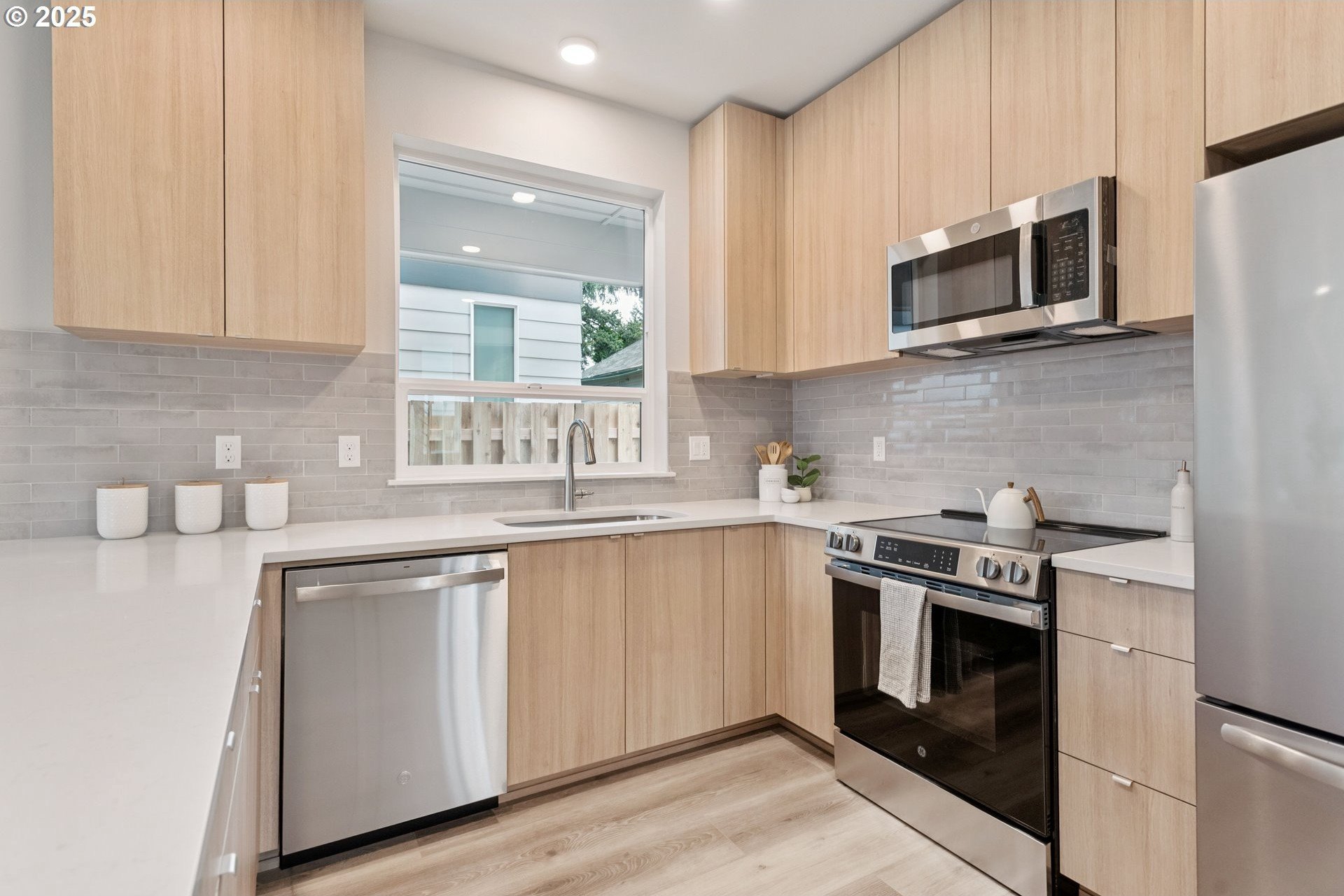 Welcome to an exceptional brand-new home thoughtfully designed, where modern sophistication meets neighborhood charm. The beautifully crafted home features three spacious bedrooms and 2 1/2 bathrooms, including a luxurious primary bedroom with ensuite bathroom on the upper level. The expansive open-concept main floor maximizes space and light, while the gourmet kitchen showcases premium quartz countertops and stainless-steel appliances. Enjoy morning coffee on the covered front porch with warm southern exposure. Step out to the commons area turf to enjoy a perfect outdoor area for yard games, entertaining, and year-round enjoyment. Nestled on a peaceful street near historic Woodstock, you'll enjoy the perfect blend of tranquil living with urban accessibility - just moments from local shops, cafes, parks, and schools. Located just blocks from the newly renovated and beautifully designed Mt. Scott Community Center, residents have easy access to exceptional recreation amenities. For availability, pricing, plans and more info visit the Rose City Commons PDX website. [Home Energy Score = 9. HES Report at https://rpt.greenbuildingregistry.com/hes/OR10241878]