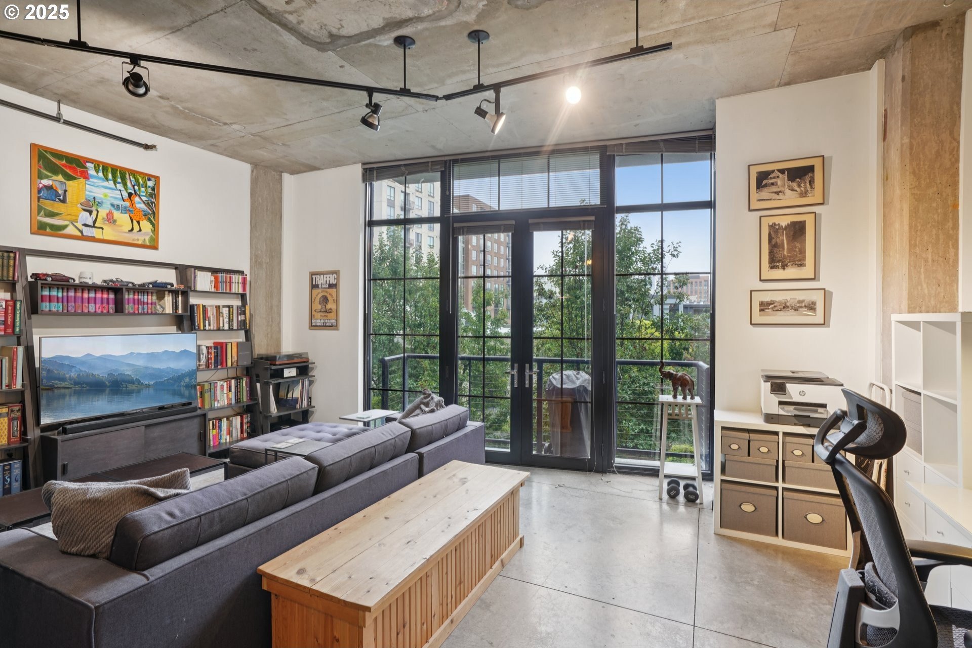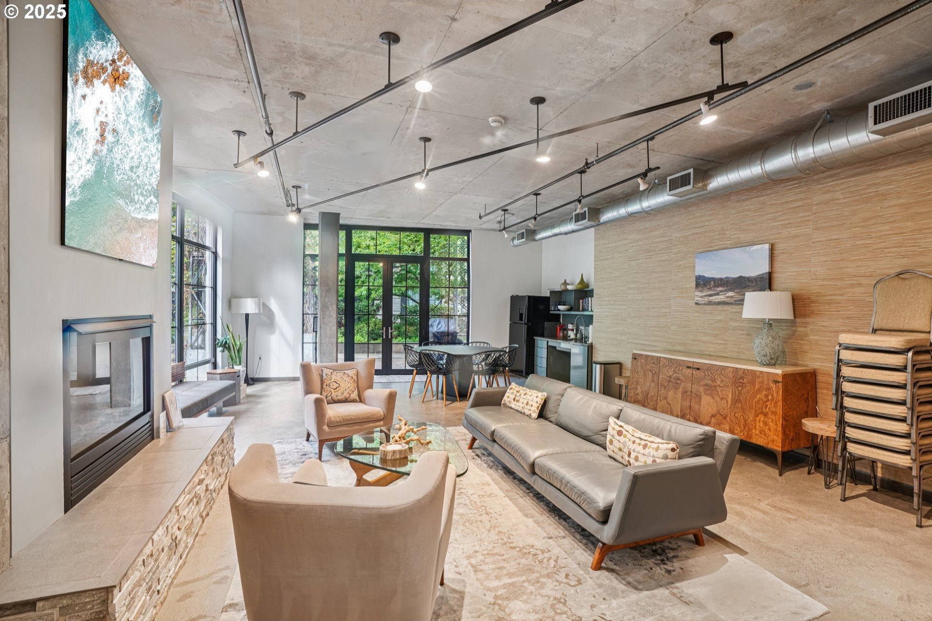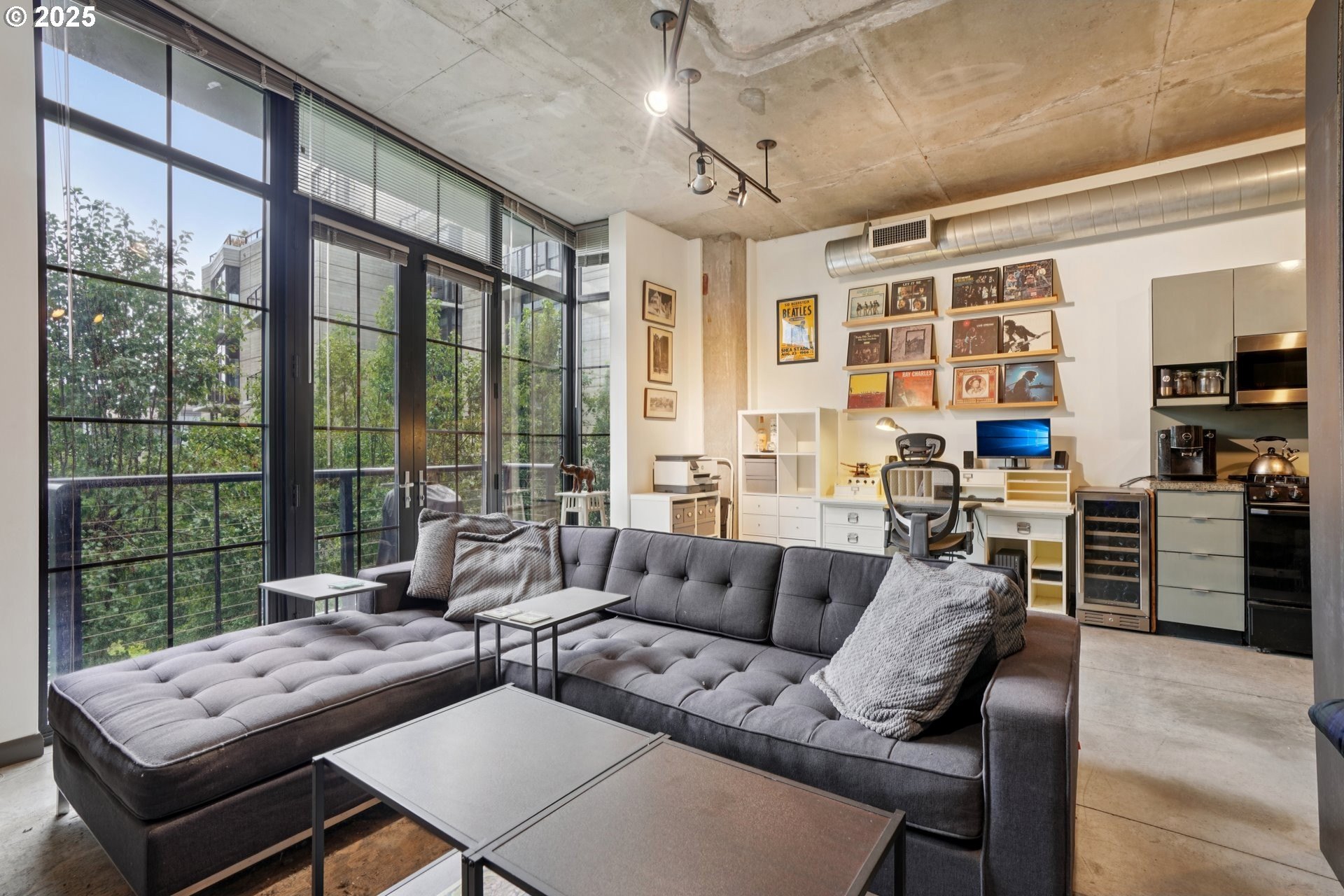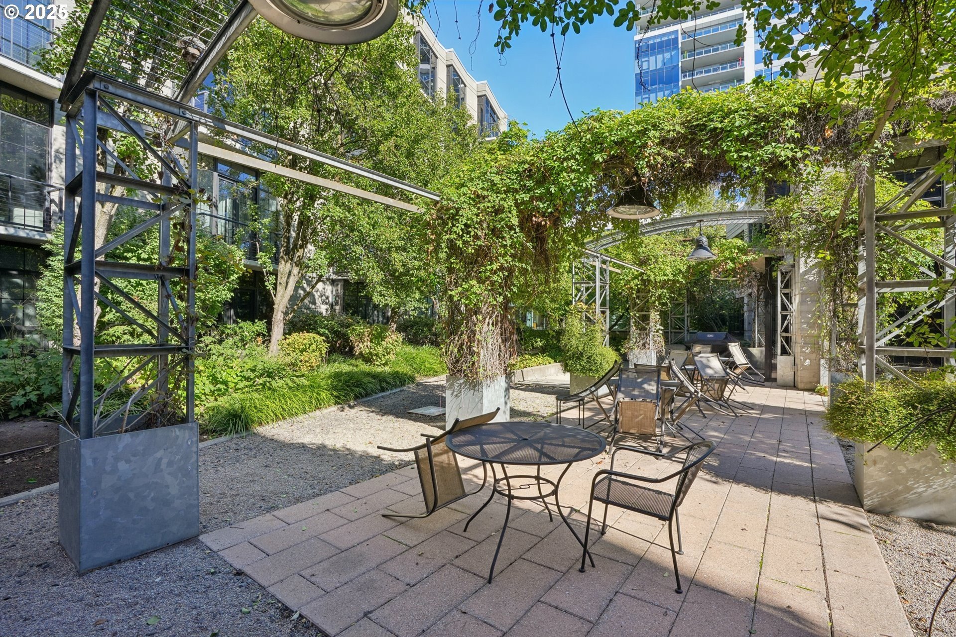 Amazing value in the coveted Streetcar Lofts! This stylish unit offers an urban lifestyle on the quiet side of the building, overlooking the peaceful courtyard with city views. Thoughtfully designed with a versatile floor plan, floor-to-ceiling windows, high ceilings, and abundant natural light. Enjoy a Juliet balcony, gas range, stainless steel appliances, granite countertops, and in-unit laundry. Spacious walk-in closet and room for a home office. Deeded, secured parking and storage included. HOA covers gas, water, sewer, and trash. Community amenities include a gym, courtyard, and community room. Just steps from parks, dining, and a grocery store—this is your chance to live in the heart of the Pearl District! 2 community EV chargers available.