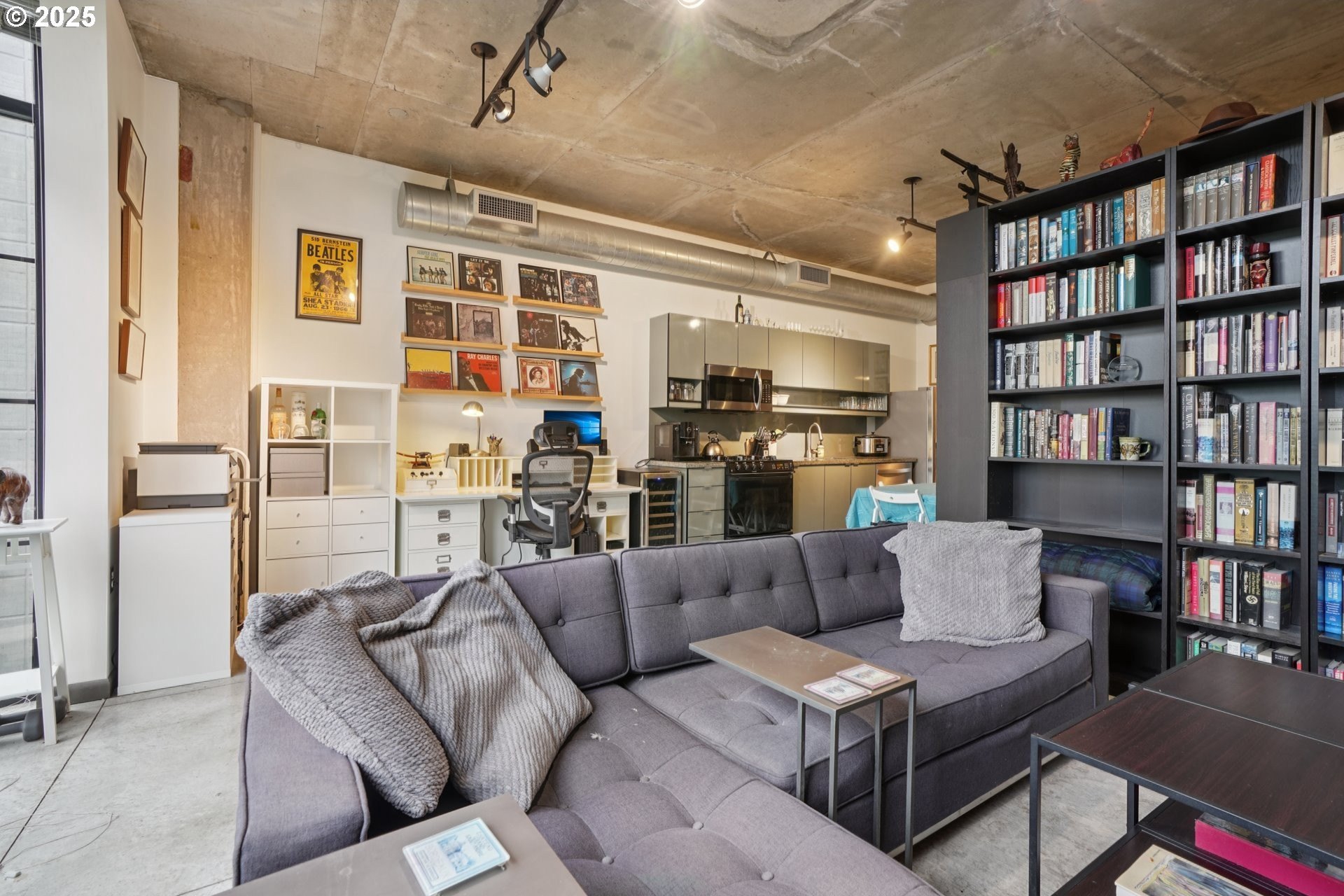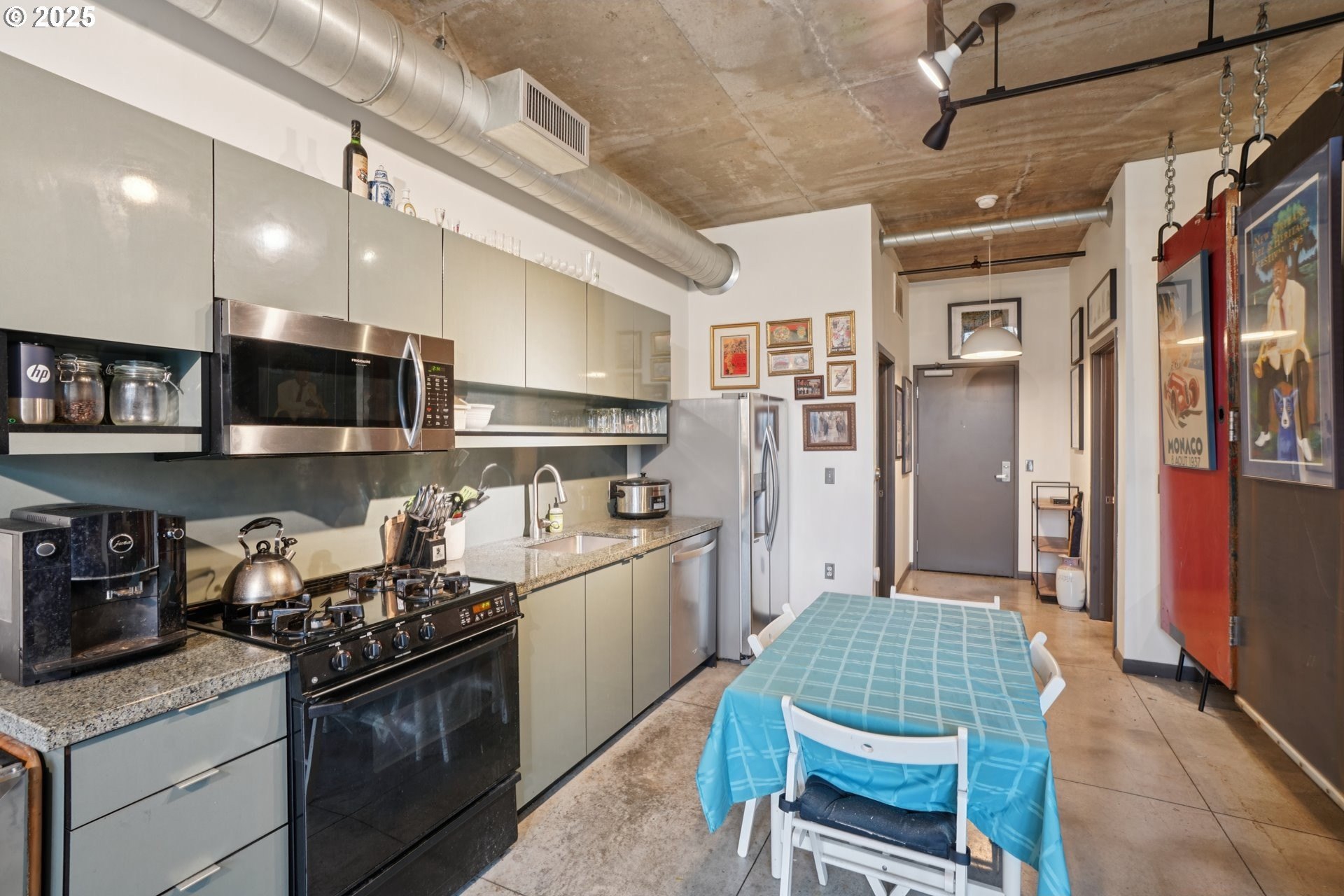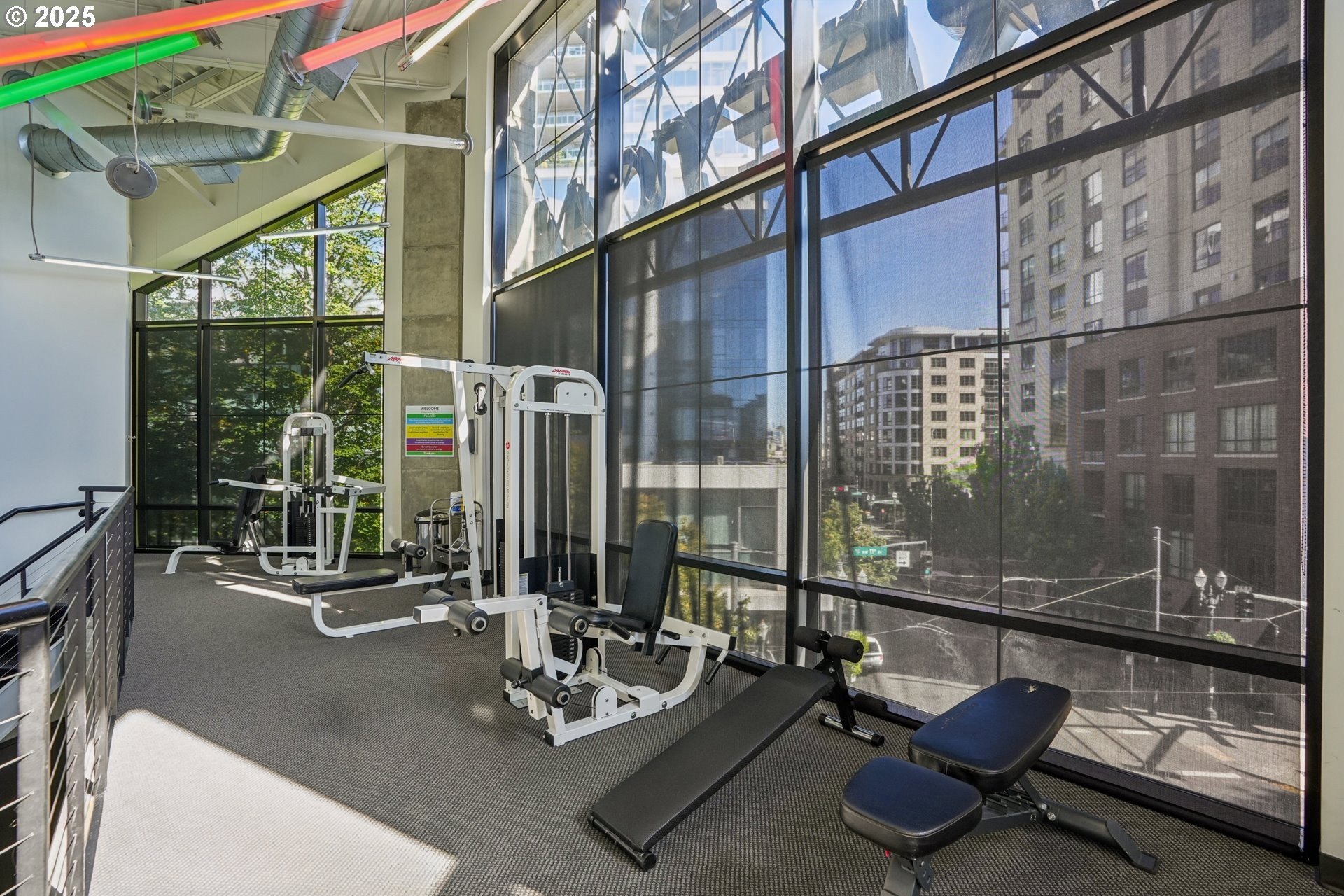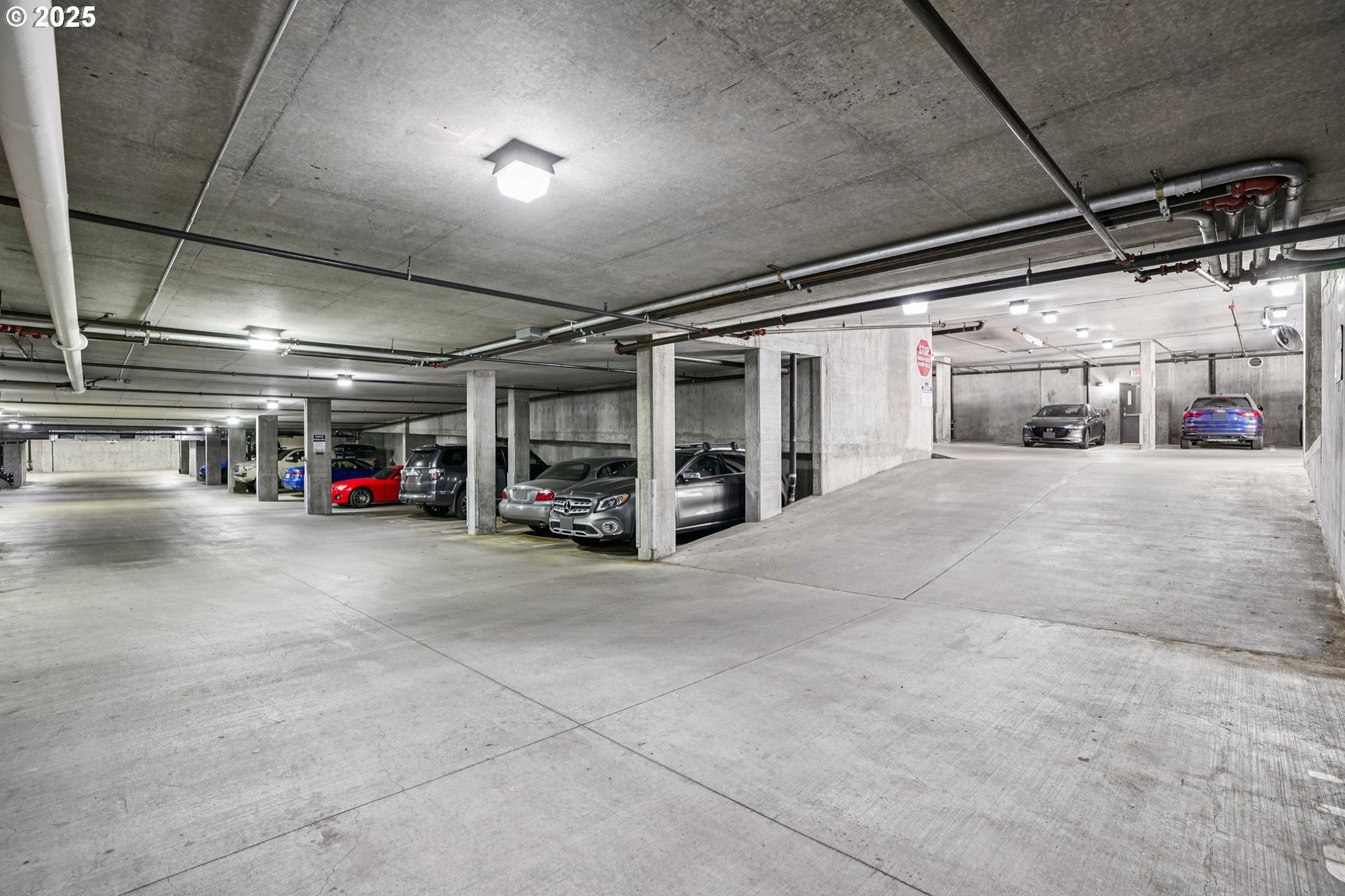 Amazing value in the coveted Streetcar Lofts! This stylish unit offers an urban lifestyle on the quiet side of the building, overlooking the peaceful courtyard with city views. Thoughtfully designed with a versatile floor plan, floor-to-ceiling windows, high ceilings, and abundant natural light. Enjoy a Juliet balcony, gas range, stainless steel appliances, granite countertops, and in-unit laundry. Spacious walk-in closet and room for a home office. Deeded, secured parking and storage included. HOA covers gas, water, sewer, and trash. Community amenities include a gym, courtyard, and community room. Just steps from parks, dining, and a grocery store—this is your chance to live in the heart of the Pearl District! 2 community EV chargers available.