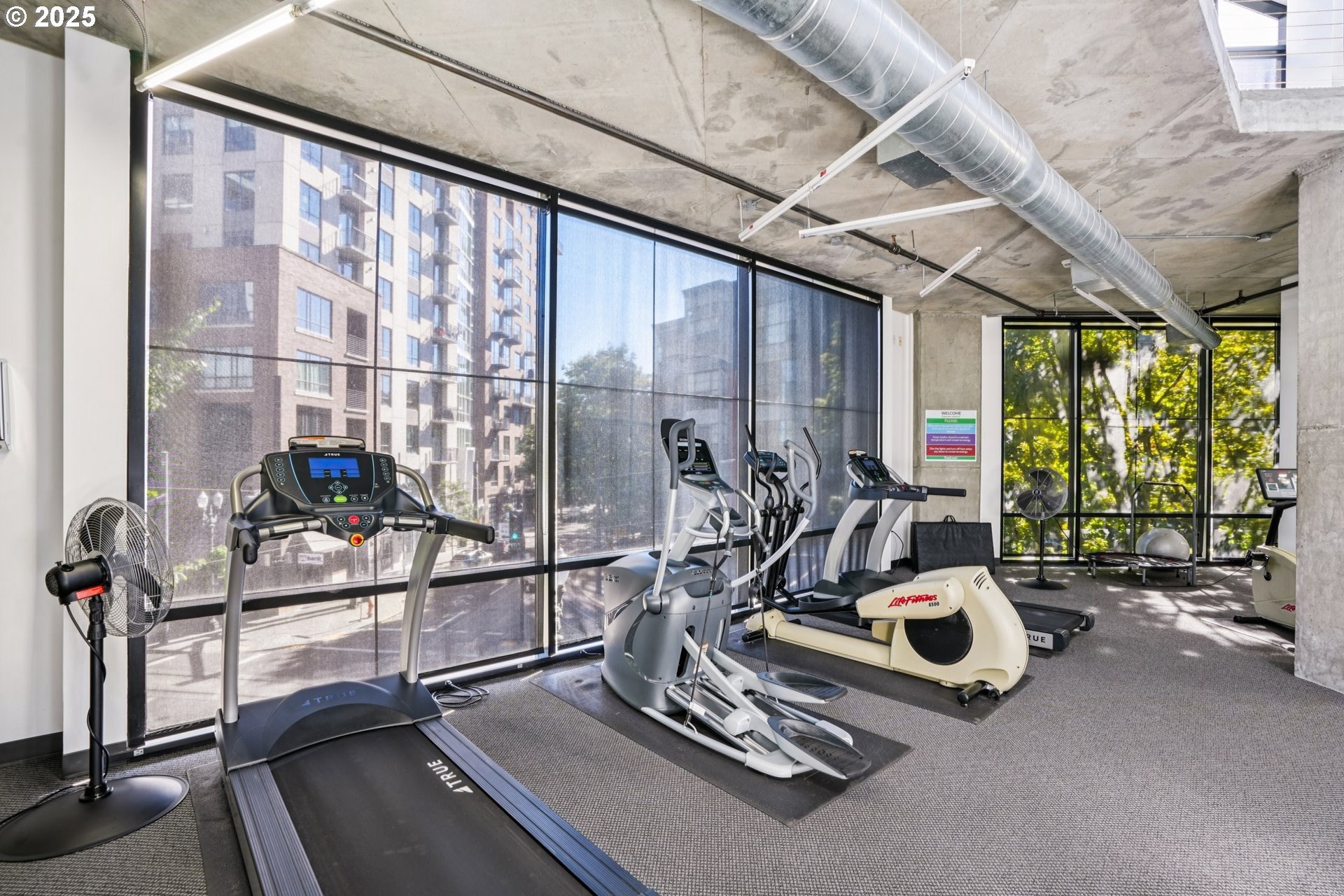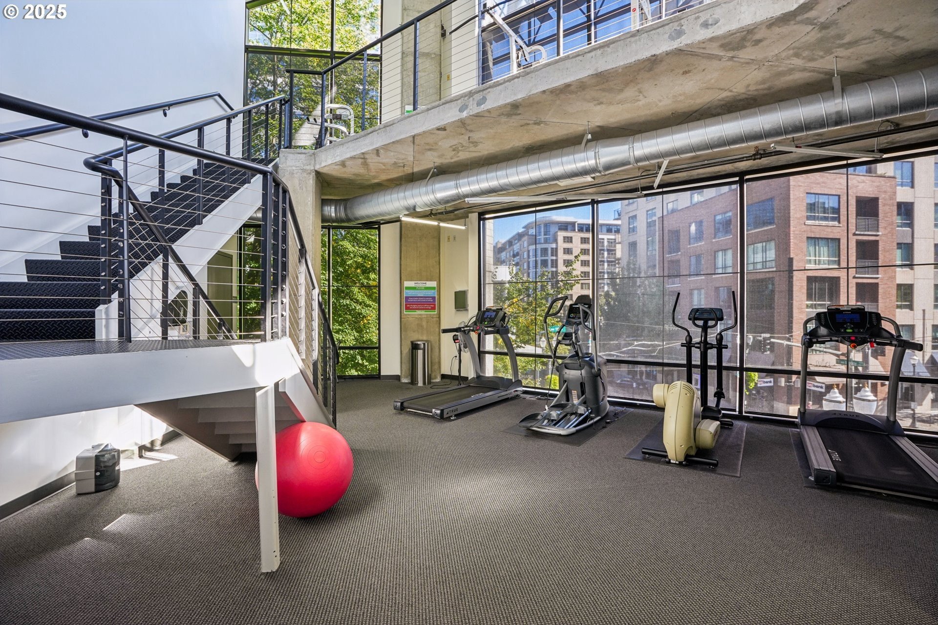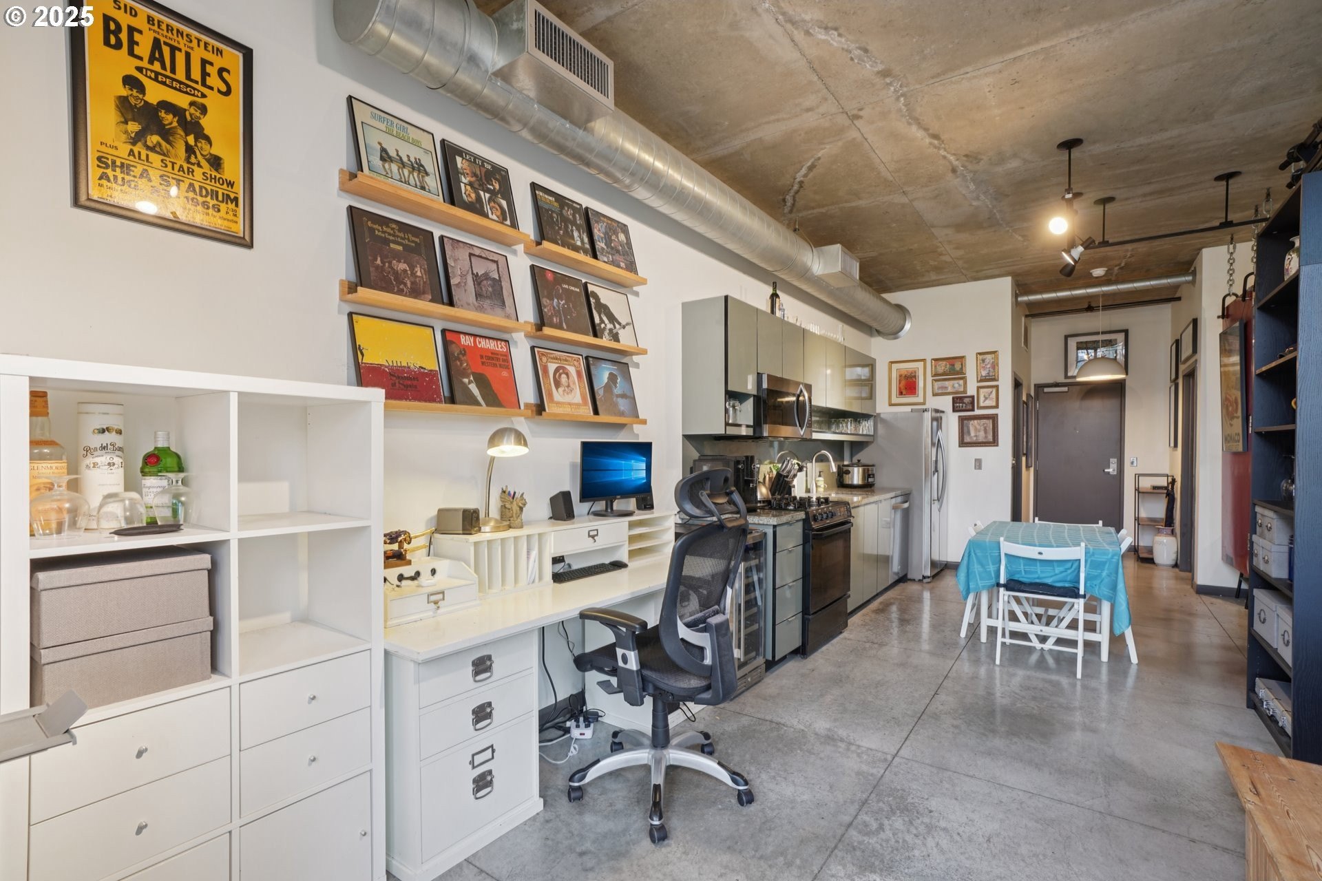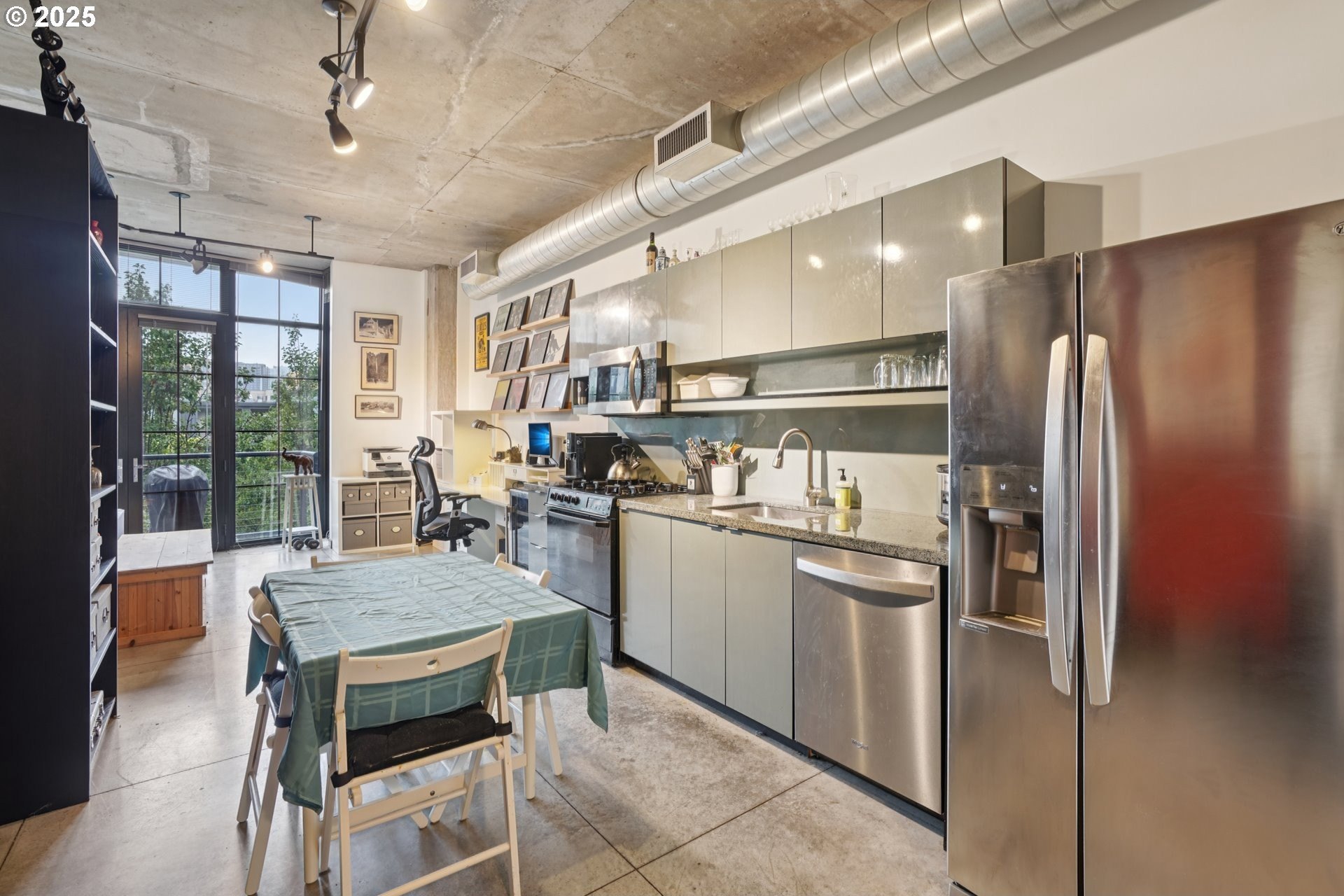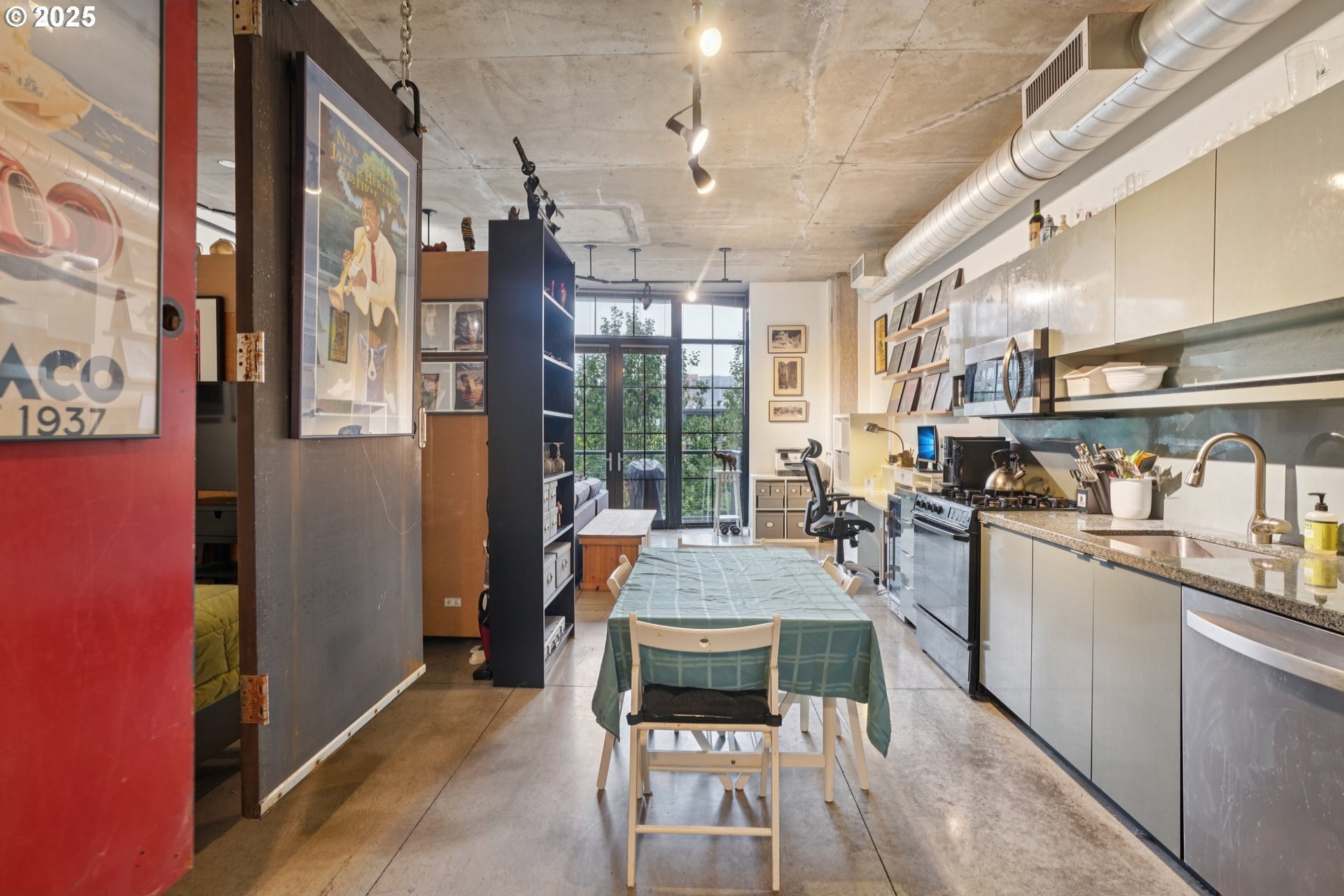 Amazing value in the coveted Streetcar Lofts! This stylish unit offers an urban lifestyle on the quiet side of the building, overlooking the peaceful courtyard with city views. Thoughtfully designed with a versatile floor plan, floor-to-ceiling windows, high ceilings, and abundant natural light. Enjoy a Juliet balcony, gas range, stainless steel appliances, granite countertops, and in-unit laundry. Spacious walk-in closet and room for a home office. Deeded, secured parking and storage included. HOA covers gas, water, sewer, and trash. Community amenities include a gym, courtyard, and community room. Just steps from parks, dining, and a grocery store—this is your chance to live in the heart of the Pearl District! 2 community EV chargers available.