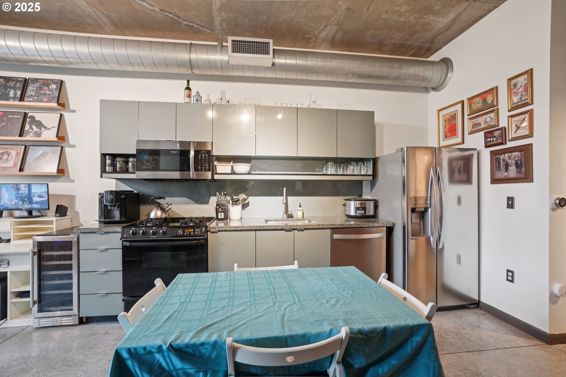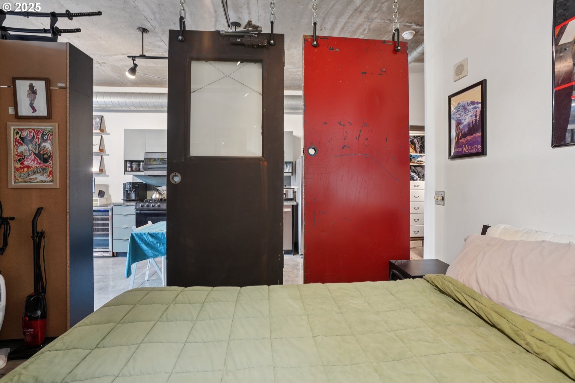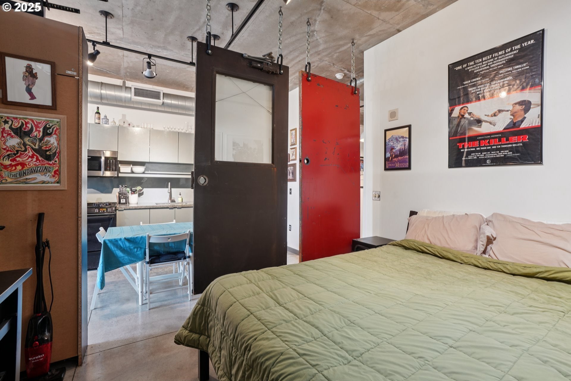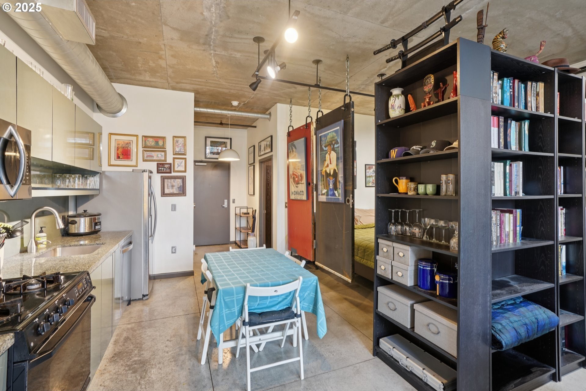 Amazing value in the coveted Streetcar Lofts! This stylish unit offers an urban lifestyle on the quiet side of the building, overlooking the peaceful courtyard with city views. Thoughtfully designed with a versatile floor plan, floor-to-ceiling windows, high ceilings, and abundant natural light. Enjoy a Juliet balcony, gas range, stainless steel appliances, granite countertops, and in-unit laundry. Spacious walk-in closet and room for a home office. Deeded, secured parking and storage included. HOA covers gas, water, sewer, and trash. Community amenities include a gym, courtyard, and community room. Just steps from parks, dining, and a grocery store—this is your chance to live in the heart of the Pearl District! 2 community EV chargers available.