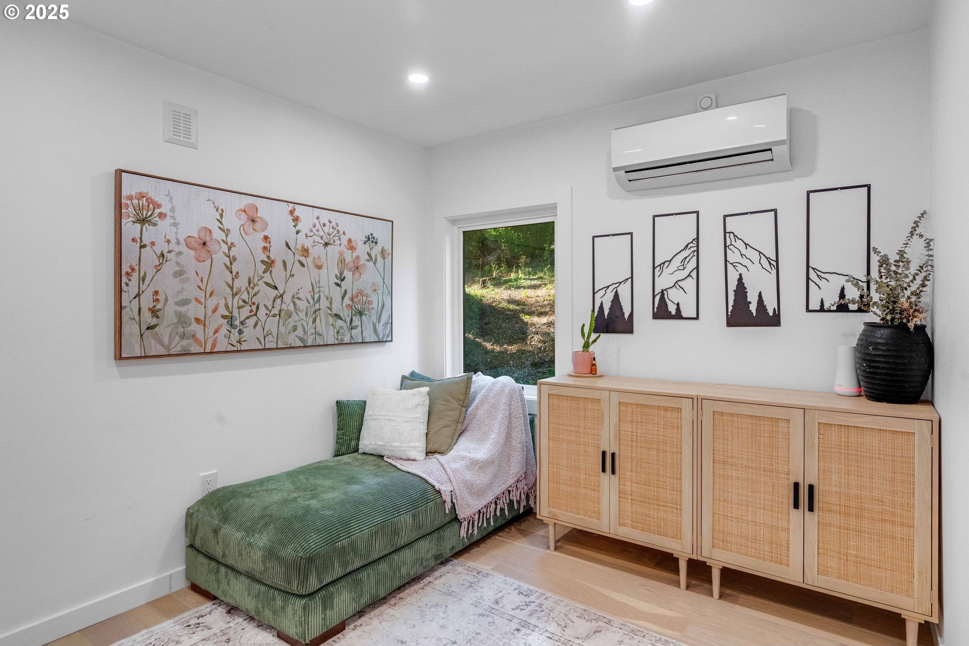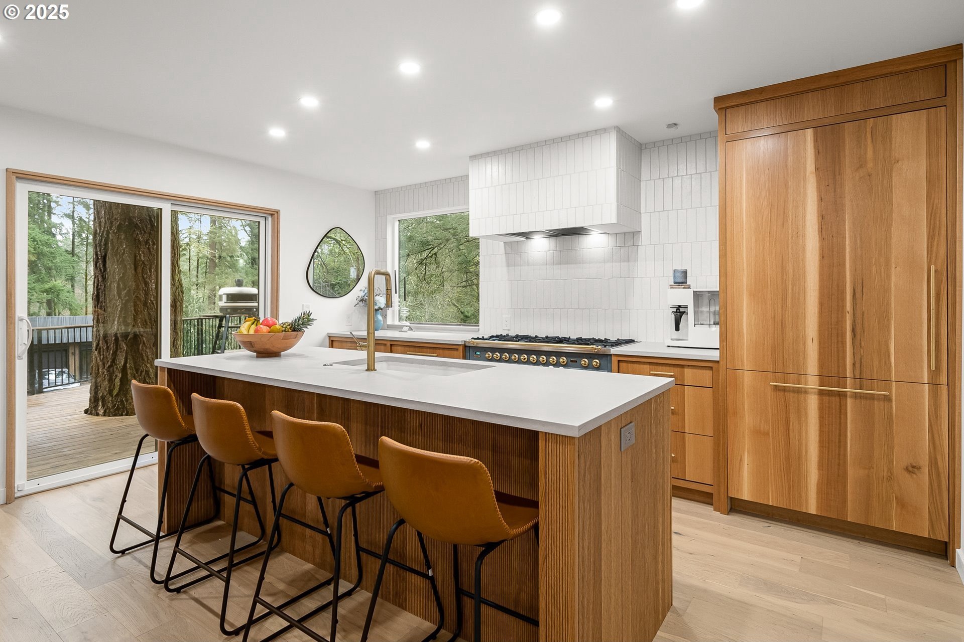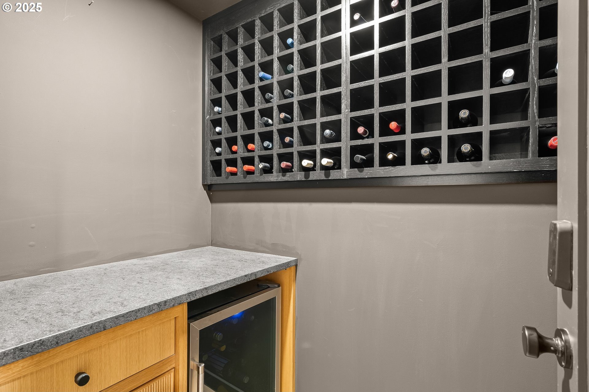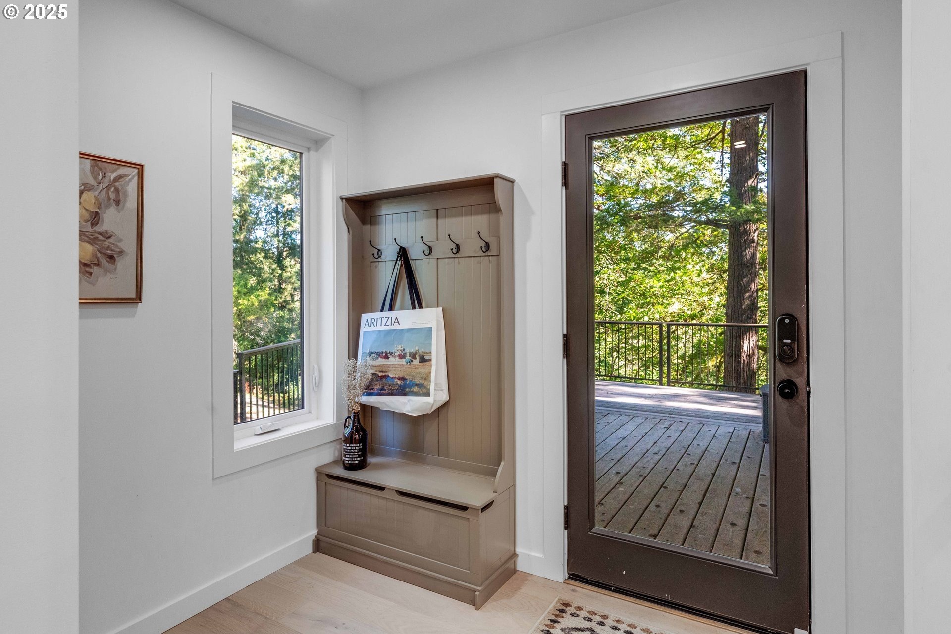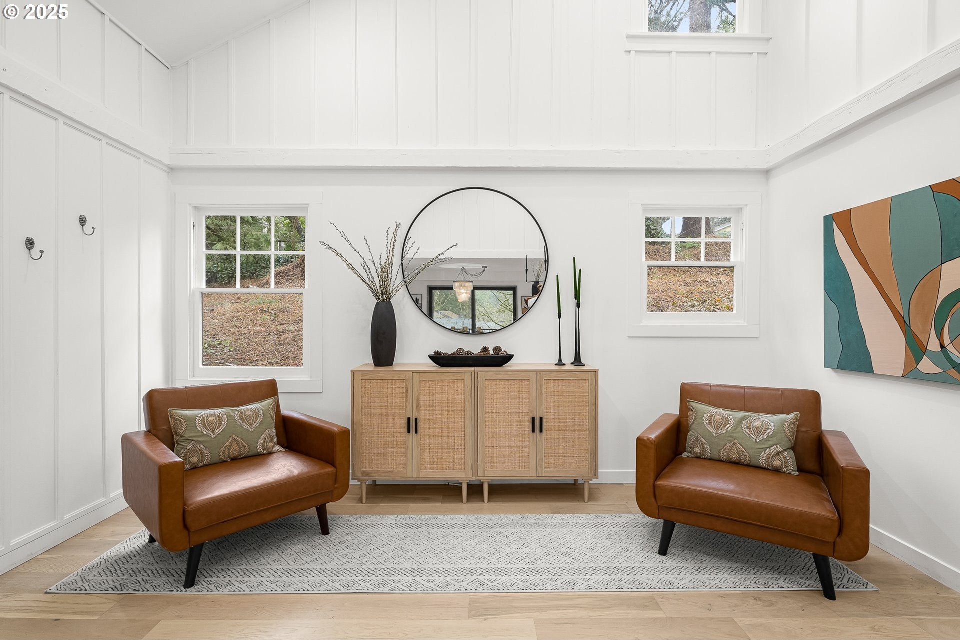 OPEN HOUSE SATURDAY OCTOBER 11th 1-3PM! Nestled among the trees on over 1.5 acres in Portland, this striking modern three-story home offers a perfect balance of natural serenity and sophisticated design. The exterior’s dark, moody tones contrast beautifully with the light and airy interior, where soaring vaulted ceilings, skylights, and expansive windows fill the space with natural light. The living room features a stunning stone fireplace as its centerpiece, while the dining area seamlessly connects to a chef’s kitchen with custom cabinetry, an island, built-in refrigerator, and sliding doors that open to a spacious deck for effortless indoor-outdoor living. A stylish half bath and a flexible main-level room—ideal as an office or sitting area—add to the home’s functionality. Upstairs, the luxurious primary suite impresses with vaulted ceilings, a skylight, a walk-in closet, and a spa-like ensuite bath featuring a double vanity and an oversized walk-in shower with dual shower heads. A second upstairs bedroom also includes its own ensuite bath, offering privacy and comfort. The lower level is designed for both relaxation and entertainment, with a temperature-controlled wine cellar, a bedroom, a full bath with a walk-in glass shower, a laundry room, and a spacious bonus room complete with a wet bar—perfect for gatherings. Outside, a detached two-car garage includes a dedicated gym area, completing this exceptional property. Designed with meticulous attention to detail and surrounded by the beauty of the Pacific Northwest, this residence offers a rare blend of modern luxury and tranquil seclusion.