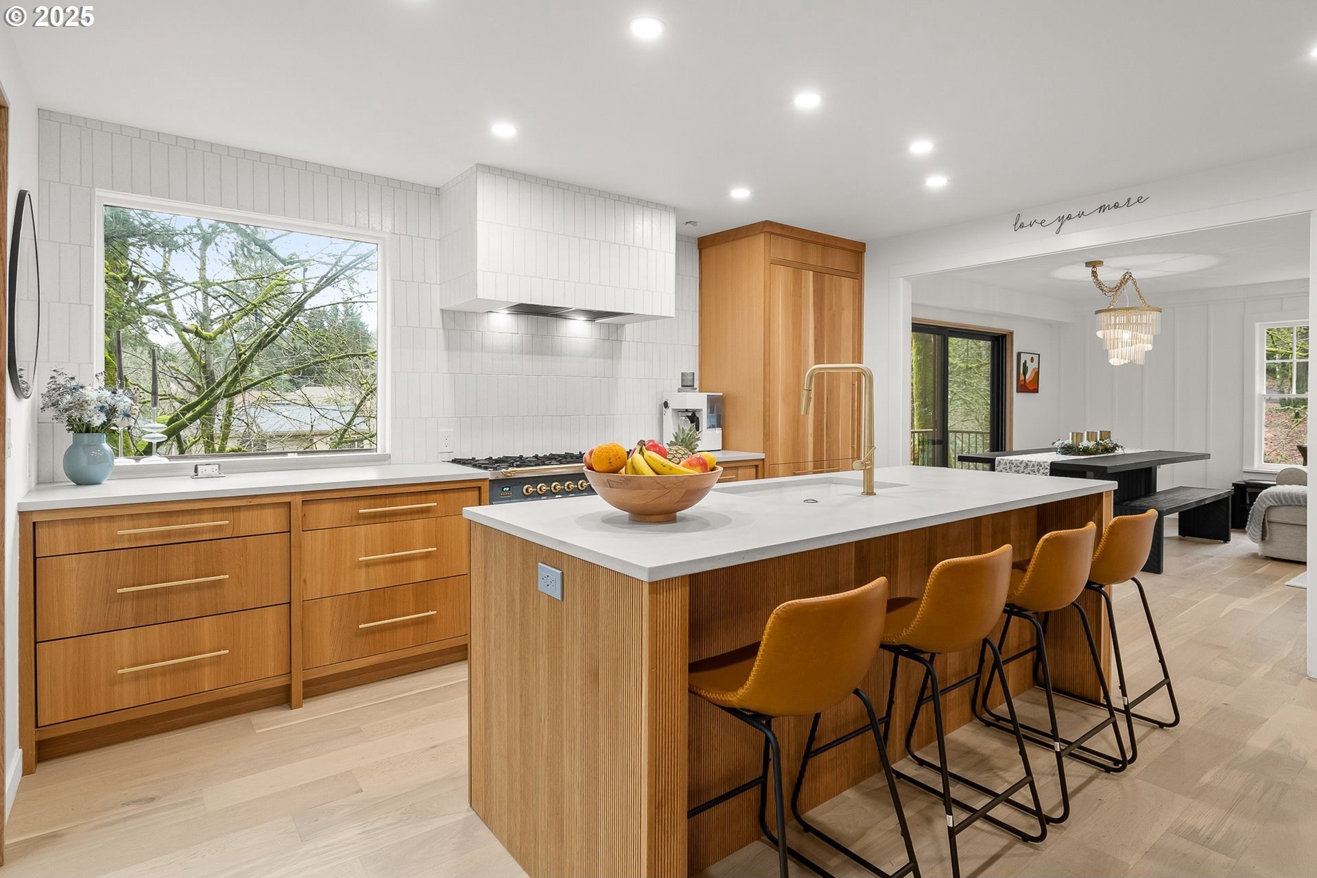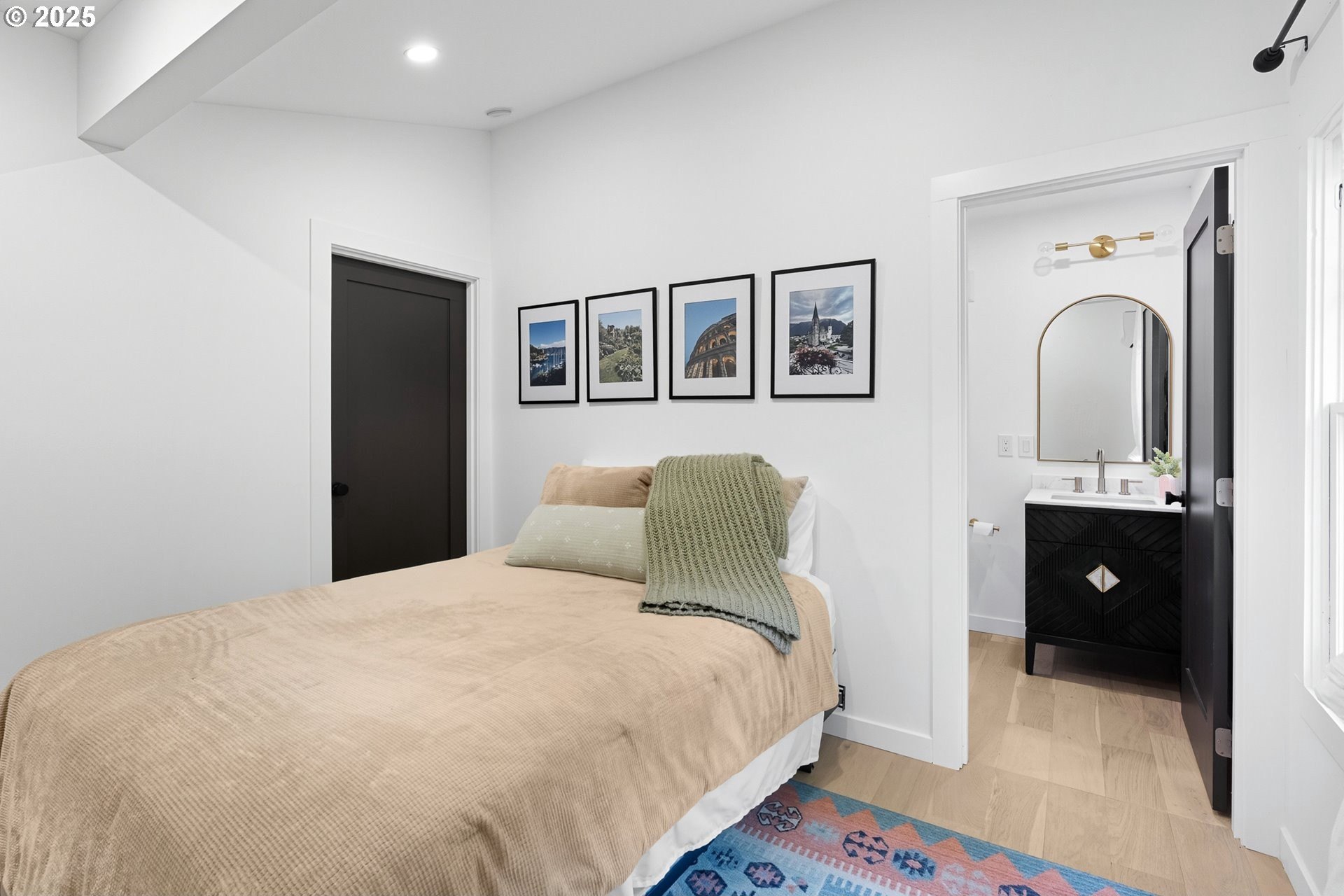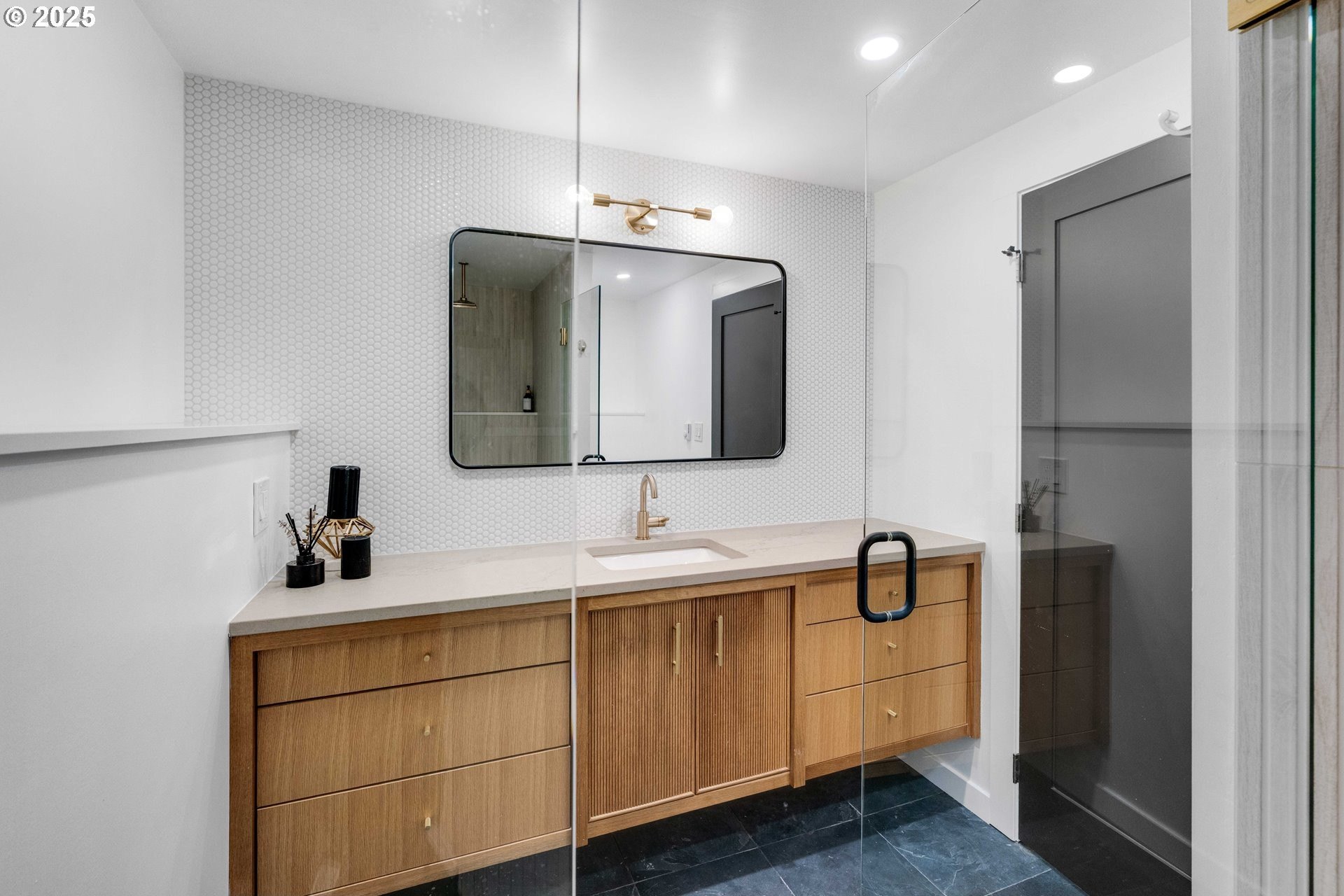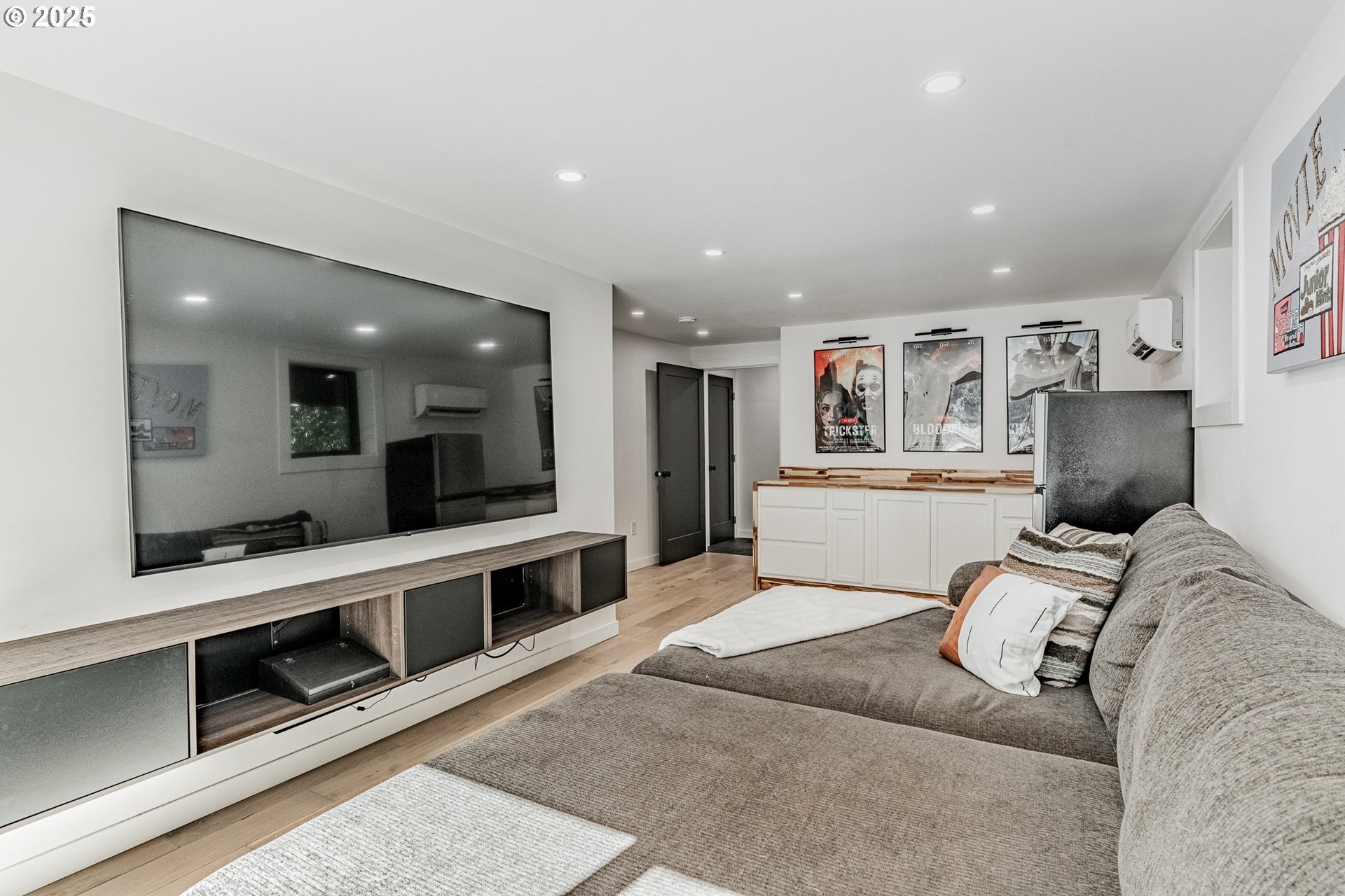 OPEN HOUSE SATURDAY OCTOBER 11th 1-3PM! Nestled among the trees on over 1.5 acres in Portland, this striking modern three-story home offers a perfect balance of natural serenity and sophisticated design. The exterior’s dark, moody tones contrast beautifully with the light and airy interior, where soaring vaulted ceilings, skylights, and expansive windows fill the space with natural light. The living room features a stunning stone fireplace as its centerpiece, while the dining area seamlessly connects to a chef’s kitchen with custom cabinetry, an island, built-in refrigerator, and sliding doors that open to a spacious deck for effortless indoor-outdoor living. A stylish half bath and a flexible main-level room—ideal as an office or sitting area—add to the home’s functionality. Upstairs, the luxurious primary suite impresses with vaulted ceilings, a skylight, a walk-in closet, and a spa-like ensuite bath featuring a double vanity and an oversized walk-in shower with dual shower heads. A second upstairs bedroom also includes its own ensuite bath, offering privacy and comfort. The lower level is designed for both relaxation and entertainment, with a temperature-controlled wine cellar, a bedroom, a full bath with a walk-in glass shower, a laundry room, and a spacious bonus room complete with a wet bar—perfect for gatherings. Outside, a detached two-car garage includes a dedicated gym area, completing this exceptional property. Designed with meticulous attention to detail and surrounded by the beauty of the Pacific Northwest, this residence offers a rare blend of modern luxury and tranquil seclusion.