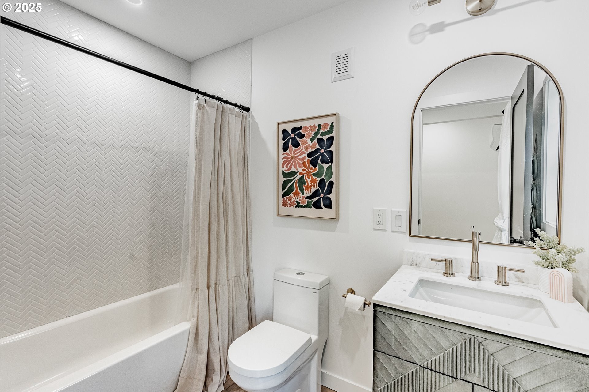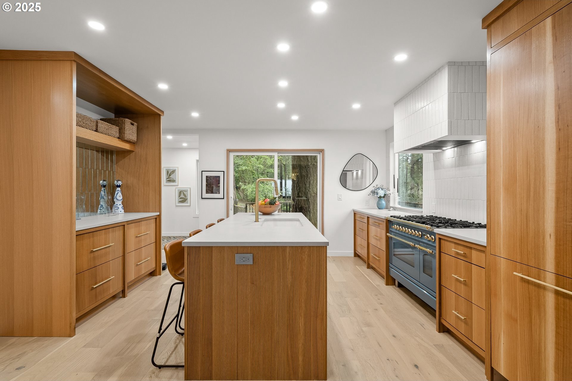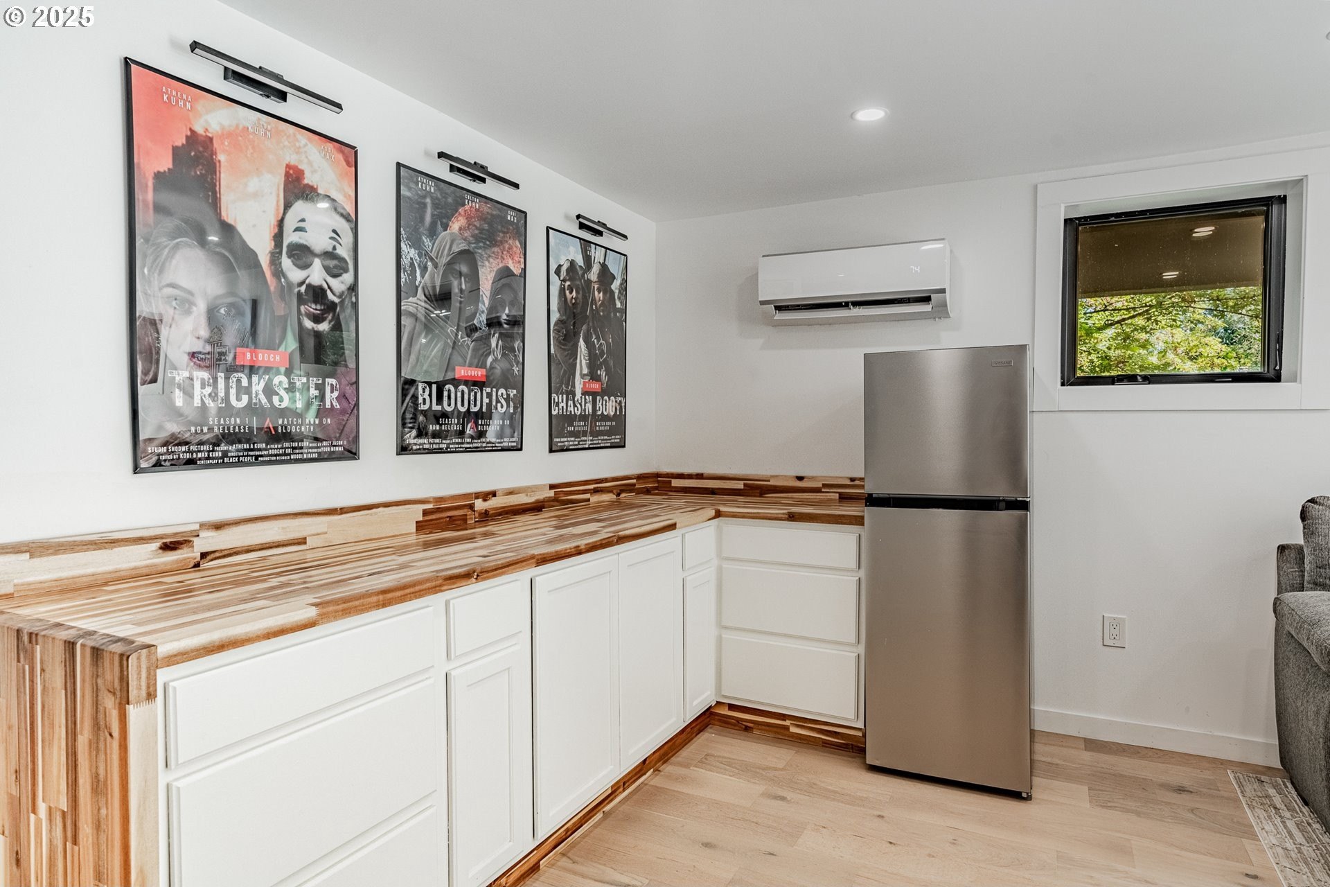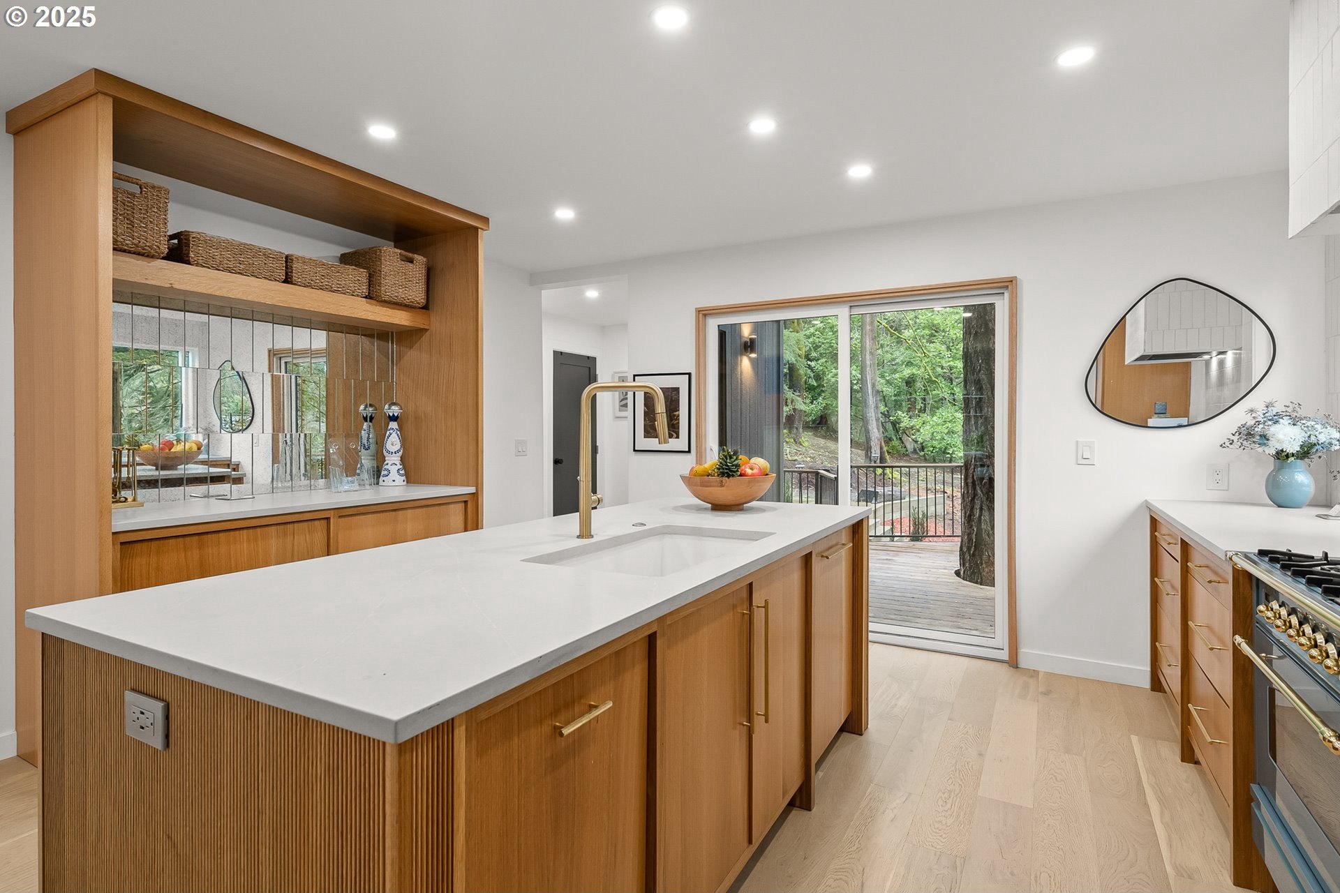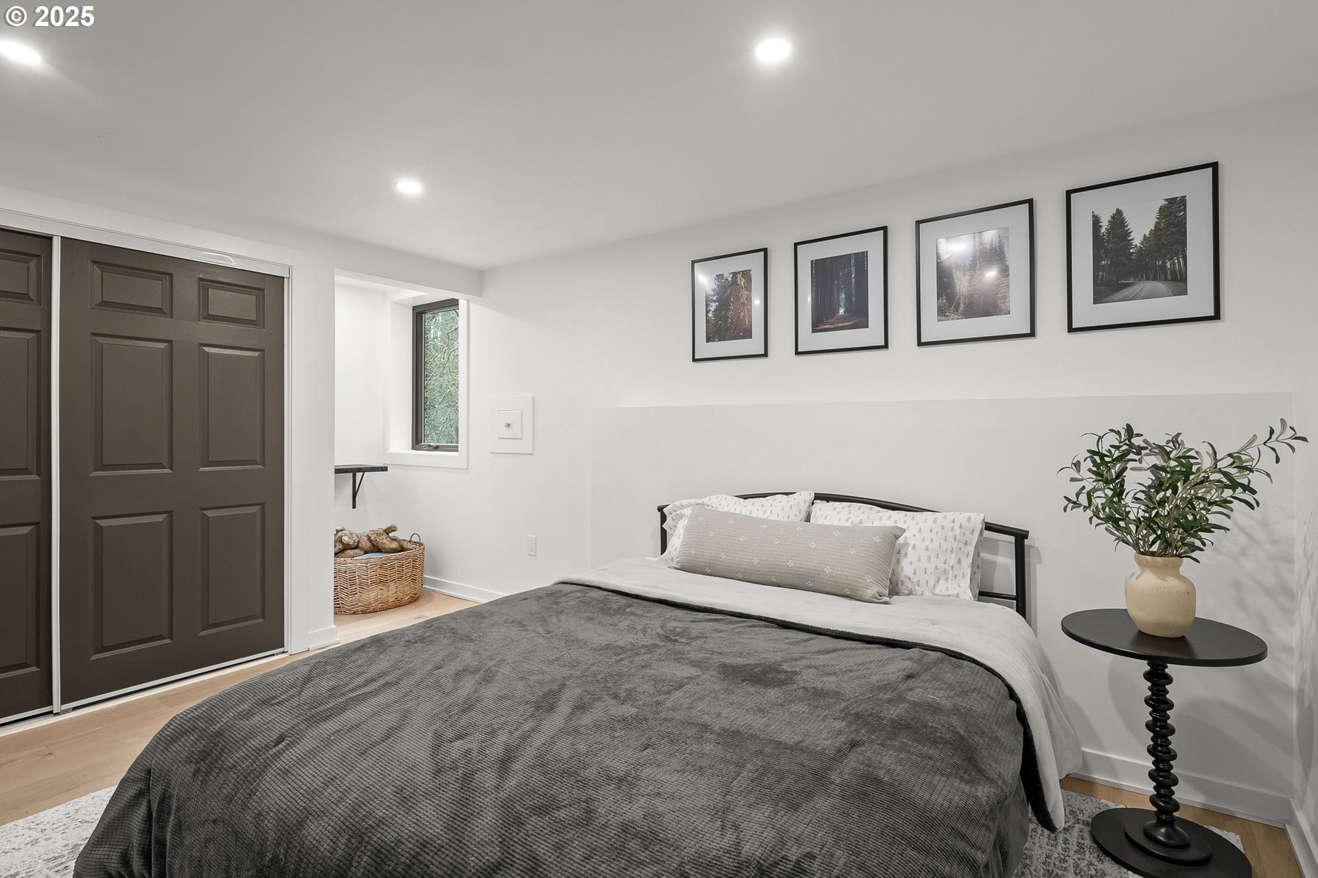 OPEN HOUSE SATURDAY OCTOBER 11th 1-3PM! Nestled among the trees on over 1.5 acres in Portland, this striking modern three-story home offers a perfect balance of natural serenity and sophisticated design. The exterior’s dark, moody tones contrast beautifully with the light and airy interior, where soaring vaulted ceilings, skylights, and expansive windows fill the space with natural light. The living room features a stunning stone fireplace as its centerpiece, while the dining area seamlessly connects to a chef’s kitchen with custom cabinetry, an island, built-in refrigerator, and sliding doors that open to a spacious deck for effortless indoor-outdoor living. A stylish half bath and a flexible main-level room—ideal as an office or sitting area—add to the home’s functionality. Upstairs, the luxurious primary suite impresses with vaulted ceilings, a skylight, a walk-in closet, and a spa-like ensuite bath featuring a double vanity and an oversized walk-in shower with dual shower heads. A second upstairs bedroom also includes its own ensuite bath, offering privacy and comfort. The lower level is designed for both relaxation and entertainment, with a temperature-controlled wine cellar, a bedroom, a full bath with a walk-in glass shower, a laundry room, and a spacious bonus room complete with a wet bar—perfect for gatherings. Outside, a detached two-car garage includes a dedicated gym area, completing this exceptional property. Designed with meticulous attention to detail and surrounded by the beauty of the Pacific Northwest, this residence offers a rare blend of modern luxury and tranquil seclusion.