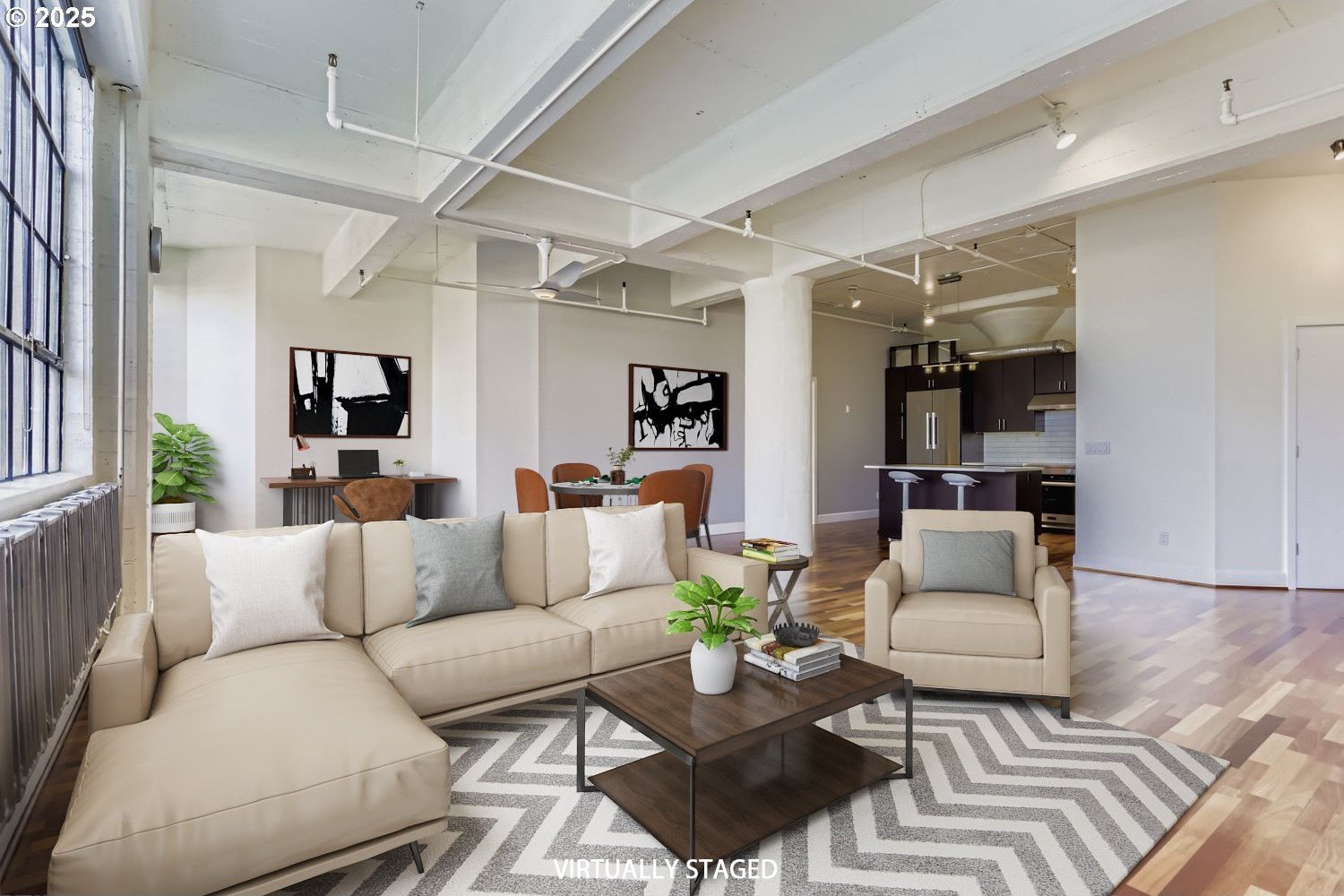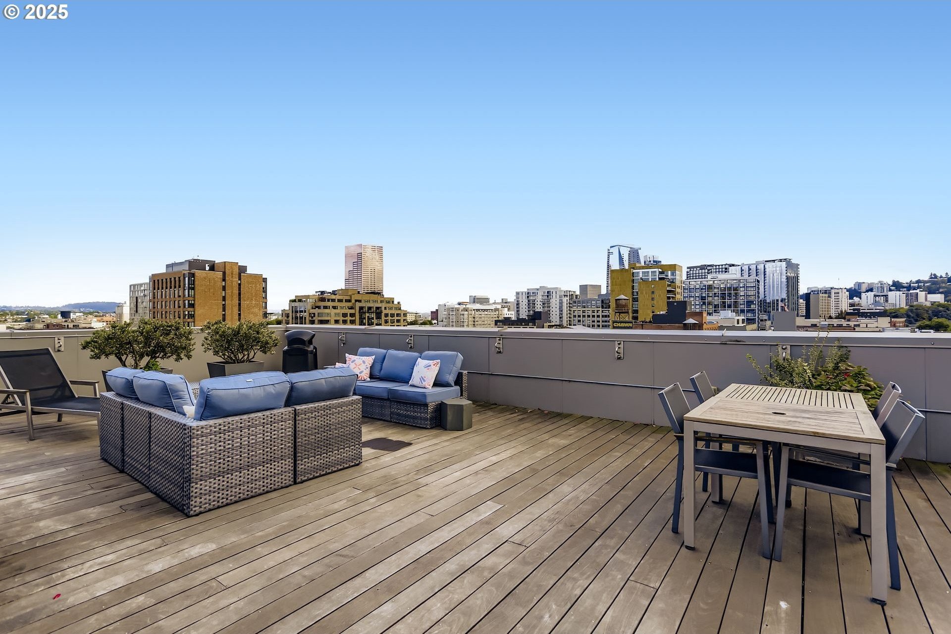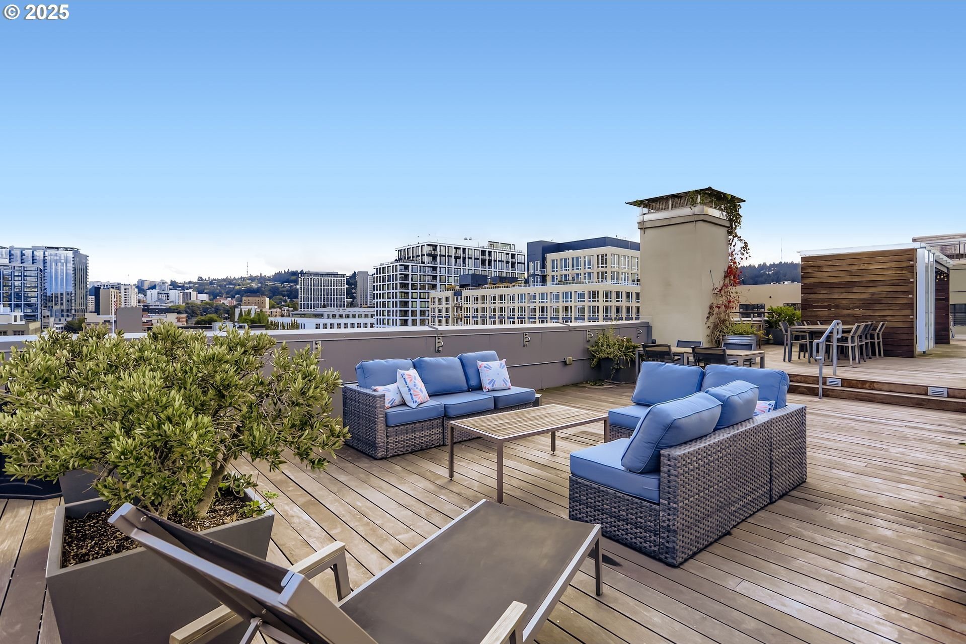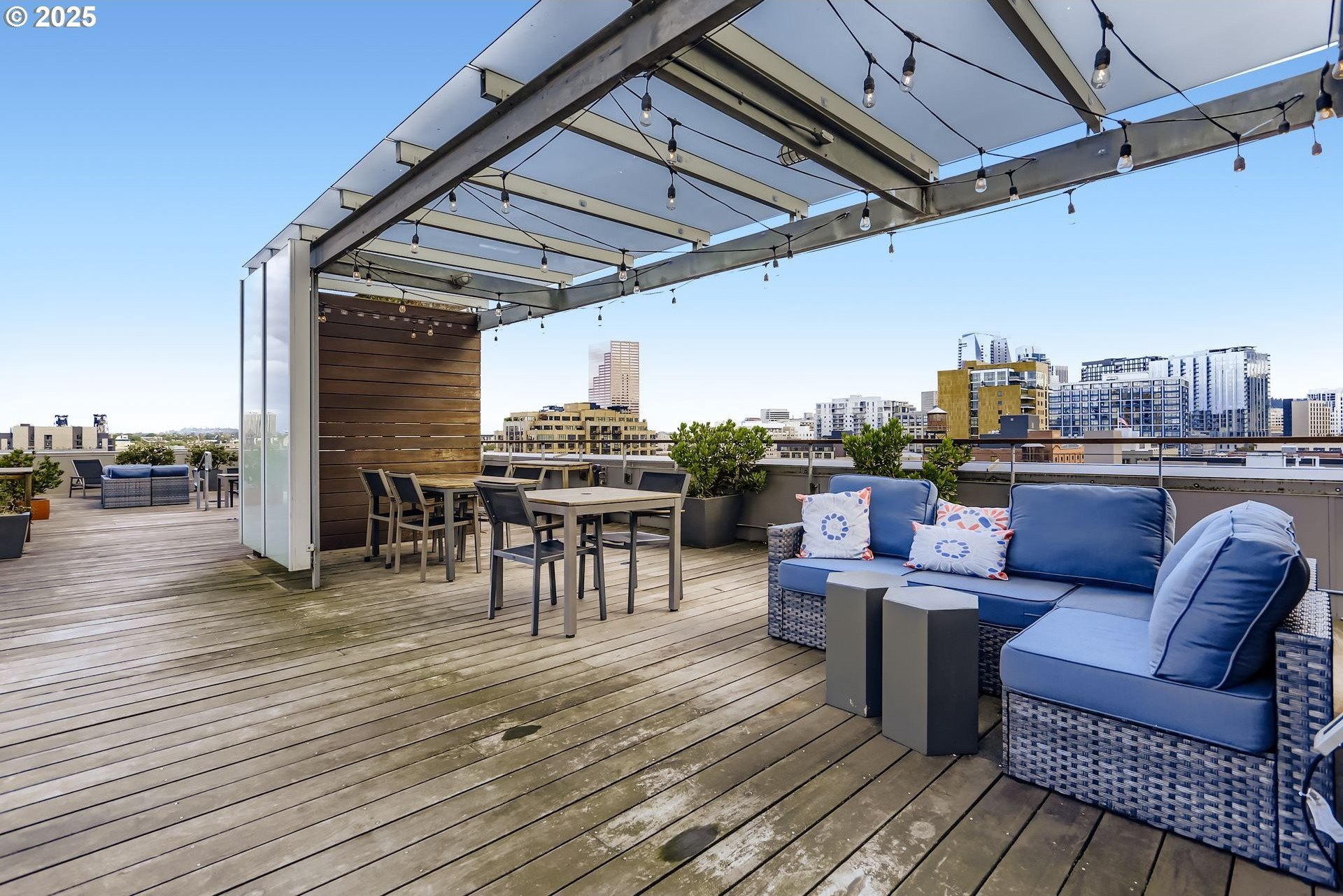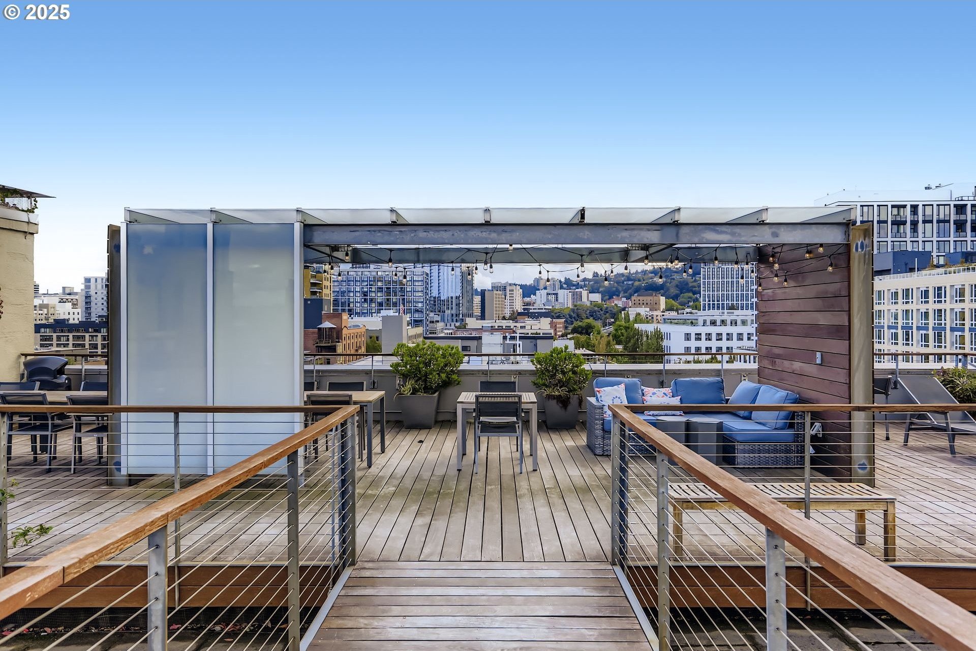 Welcome to urban sophistication at 1314 NW Irving #303, a truly unique industrial loft perched in the heart of Portland's historic Pearl District. This NE corner condo allows for big city views framed by a wall of windows and complemented by high ceilings. The fully remodeled kitchen features quartz countertops, a large island, and premium Miele appliances, including an induction range. The condo includes a fully enclosed bedroom with a luxurious ensuite bathroom and a walk-in California closet. The spacious living area allows for living, dining and work space plus a second full bathroom. Perfect for entertaining, the expansive rooftop deck offers sweeping city and mountain views. Just steps away from world class coffee, restaurants and shopping in the Pearl. Enjoy the monthly First Thursday art walk out your front door in this vibrant community. With zoning that caters to both residential and professional needs, this loft is your canvas for city living at its finest.