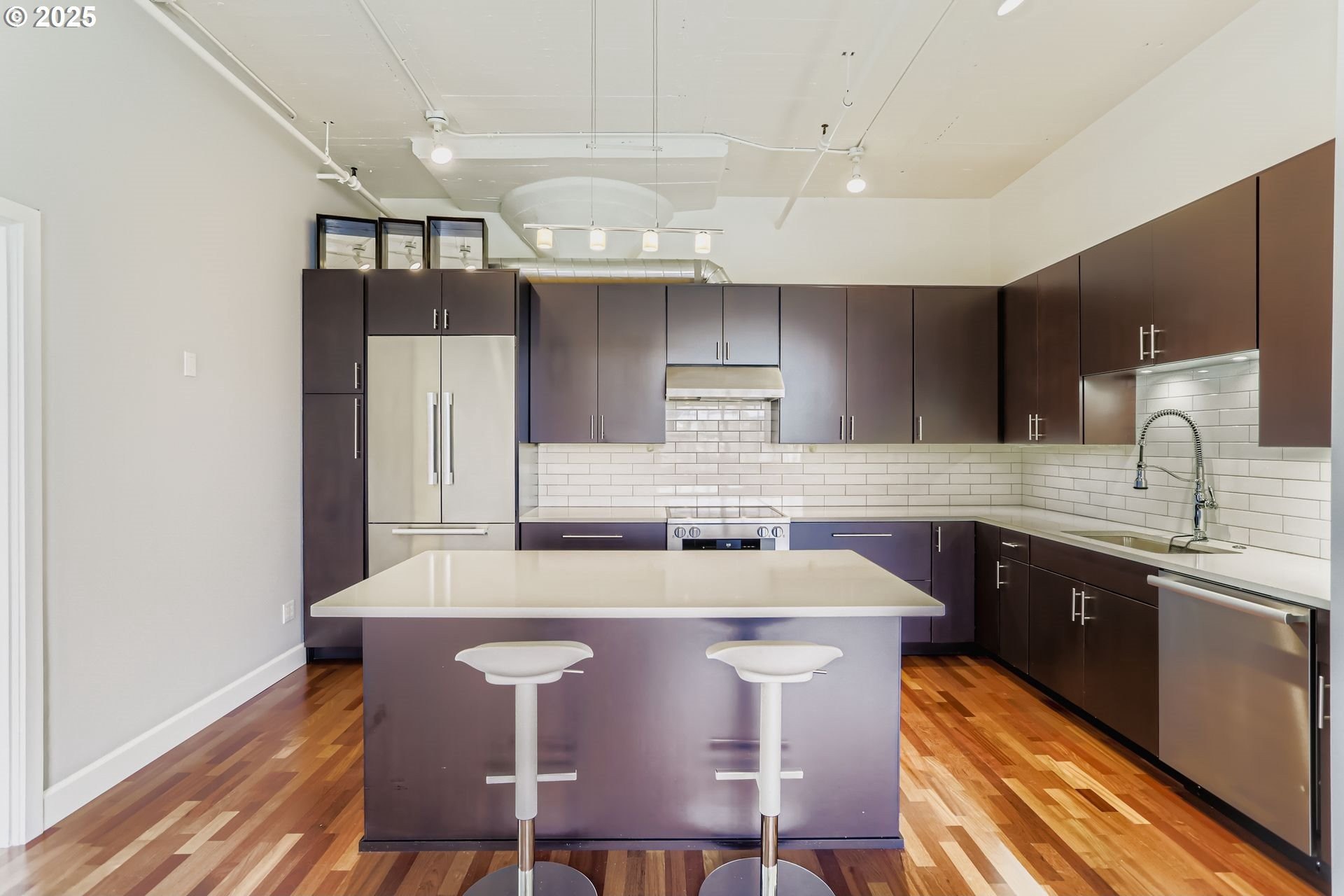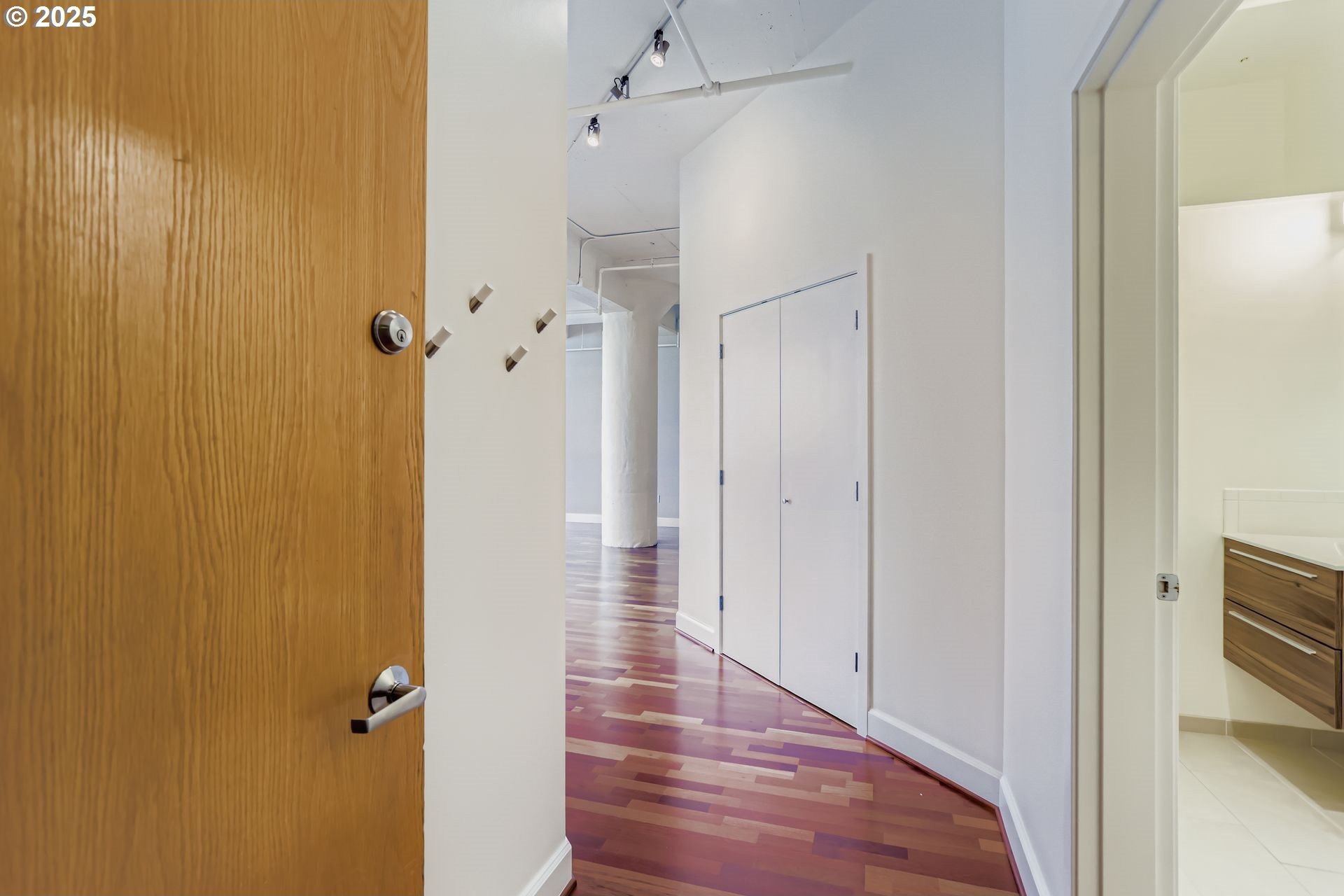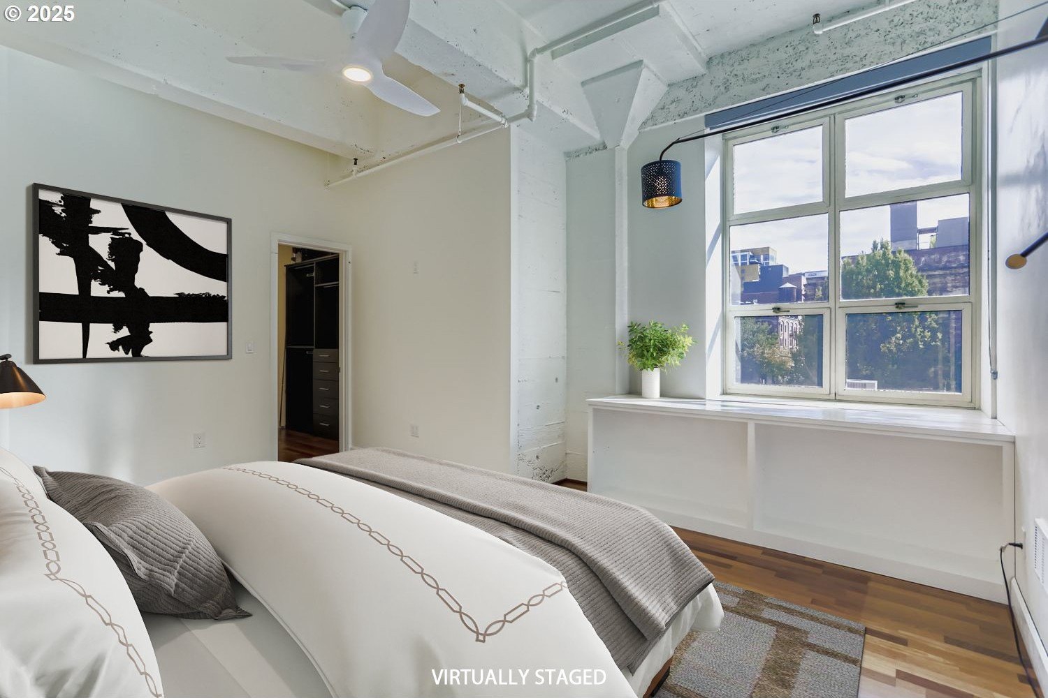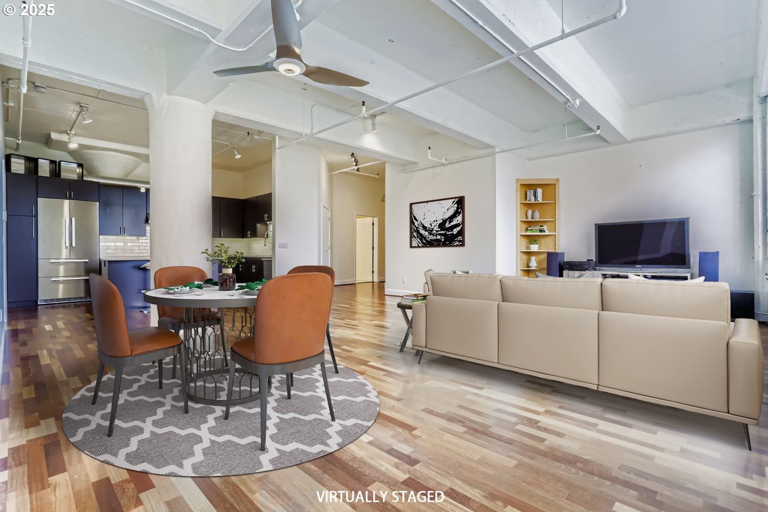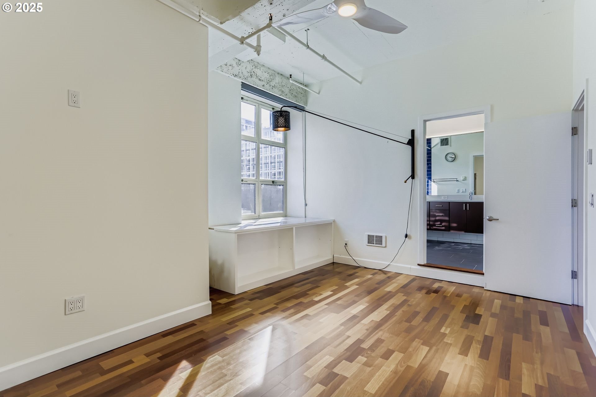 Welcome to urban sophistication at 1314 NW Irving #303, a truly unique industrial loft perched in the heart of Portland's historic Pearl District. This NE corner condo allows for big city views framed by a wall of windows and complemented by high ceilings. The fully remodeled kitchen features quartz countertops, a large island, and premium Miele appliances, including an induction range. The condo includes a fully enclosed bedroom with a luxurious ensuite bathroom and a walk-in California closet. The spacious living area allows for living, dining and work space plus a second full bathroom. Perfect for entertaining, the expansive rooftop deck offers sweeping city and mountain views. Just steps away from world class coffee, restaurants and shopping in the Pearl. Enjoy the monthly First Thursday art walk out your front door in this vibrant community. With zoning that caters to both residential and professional needs, this loft is your canvas for city living at its finest.