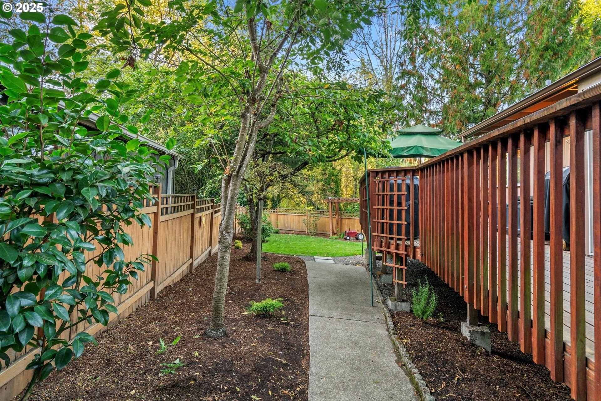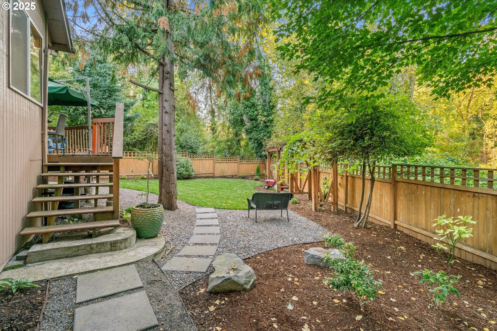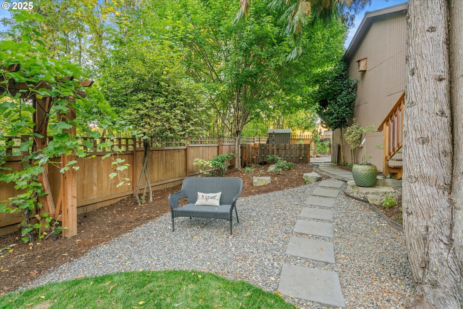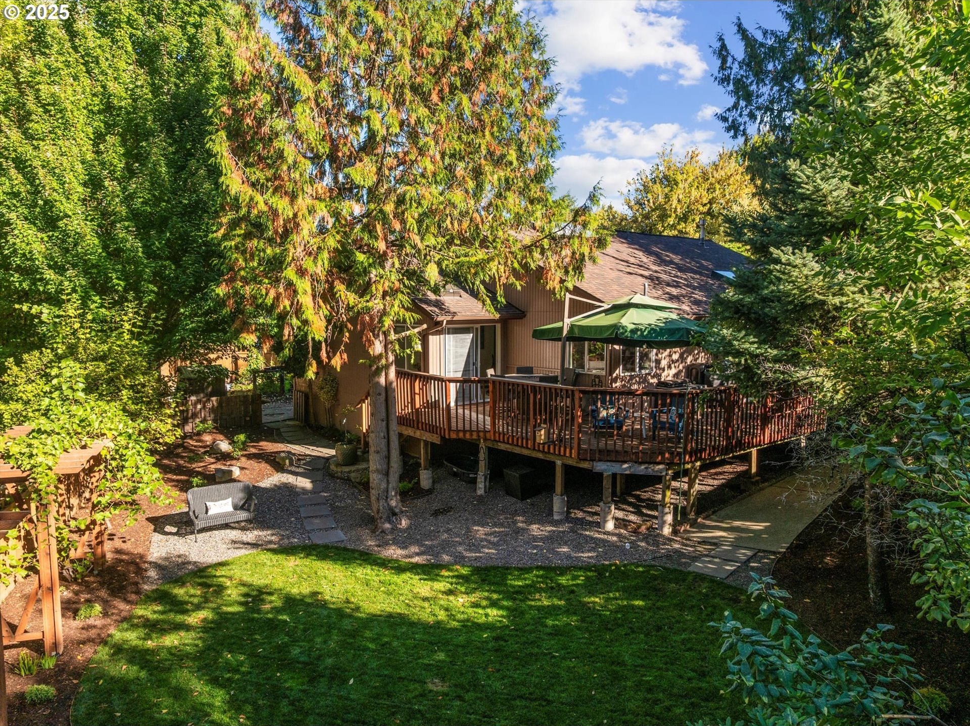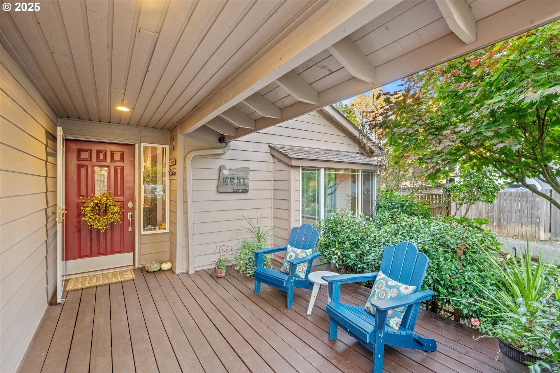 Hidden at the end of a quiet cul-de-sac and backing to the Fanno Creek Greenway, this thoughtfully updated single-level home blends comfort with a natural, welcoming feel throughout. Vaulted ceilings, warm wood beams, skylights, and picture windows bring texture and light into the main living spaces. The home has been carefully refreshed to preserve its original character, withnew carpet, flooring, and thoughtful finishes that complement the home's natural tones. The spacious primary suite offers a large walk-in closet, walk-in shower, soaking tub, and direct access to the backyard. Step outside to a large deck with peaceful views of the greenway, perfect for relaxing or entertaining. A long list of recent updates—including waterproof laminate flooring, trim, bathroom improvements, and more—adds peace of mind (see full list of updates). All of this in a highly sought-after neighborhood, with easy access to parks, trails, shopping, dining, and Hwy 217.