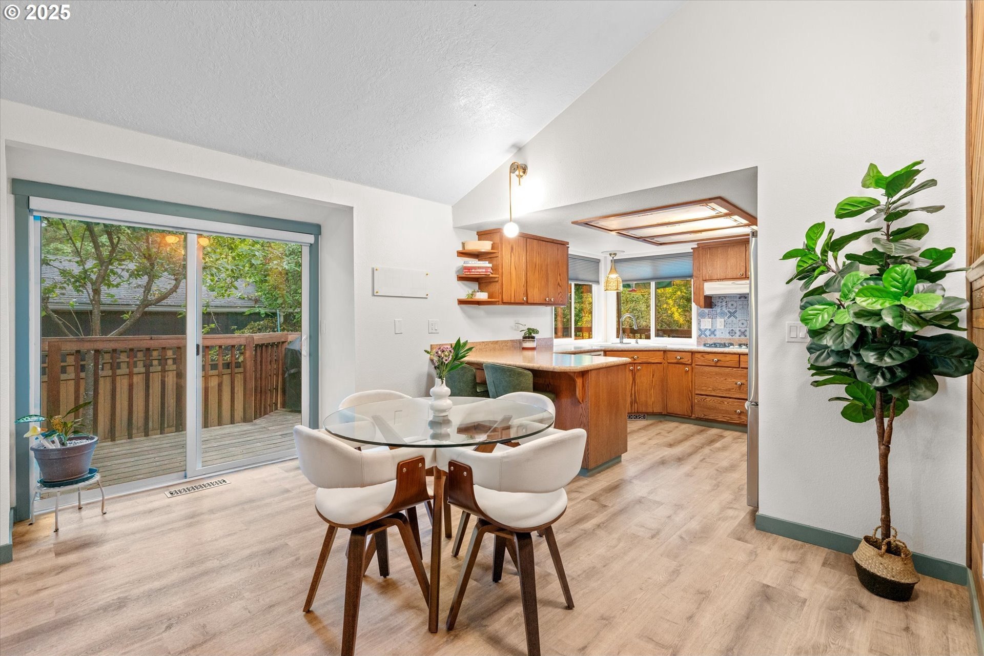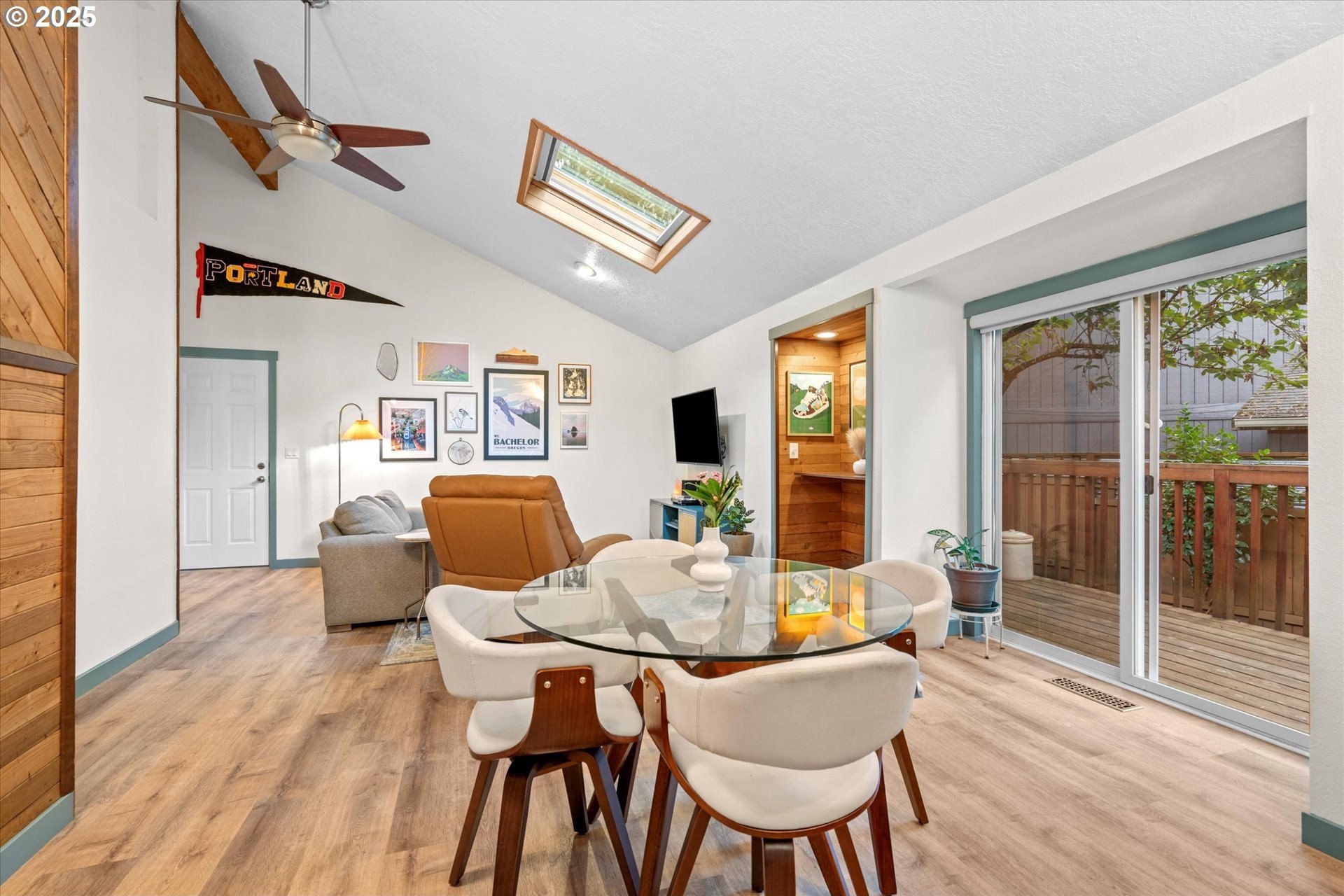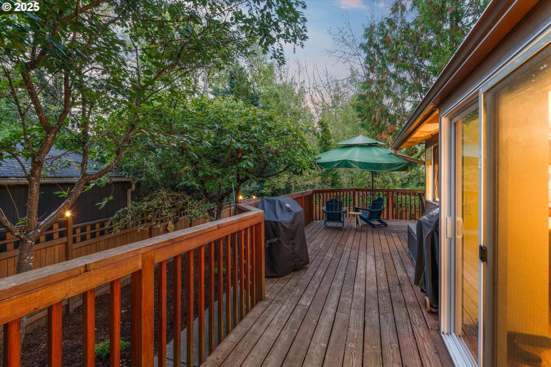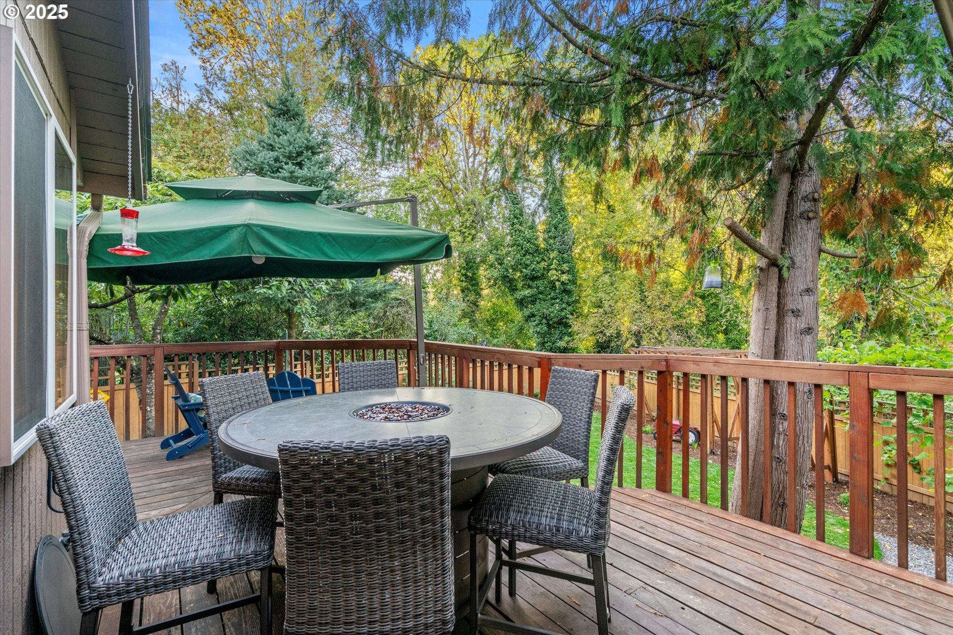 Hidden at the end of a quiet cul-de-sac and backing to the Fanno Creek Greenway, this thoughtfully updated single-level home blends comfort with a natural, welcoming feel throughout. Vaulted ceilings, warm wood beams, skylights, and picture windows bring texture and light into the main living spaces. The home has been carefully refreshed to preserve its original character, withnew carpet, flooring, and thoughtful finishes that complement the home's natural tones. The spacious primary suite offers a large walk-in closet, walk-in shower, soaking tub, and direct access to the backyard. Step outside to a large deck with peaceful views of the greenway, perfect for relaxing or entertaining. A long list of recent updates—including waterproof laminate flooring, trim, bathroom improvements, and more—adds peace of mind (see full list of updates). All of this in a highly sought-after neighborhood, with easy access to parks, trails, shopping, dining, and Hwy 217.