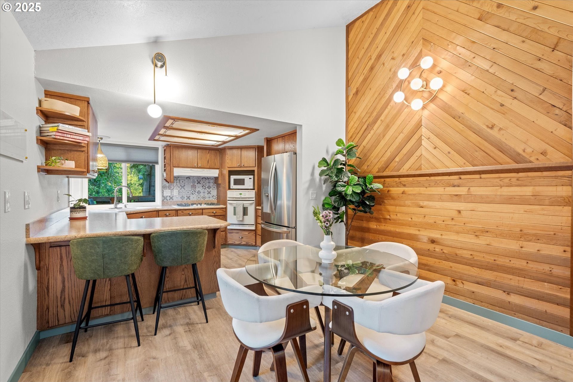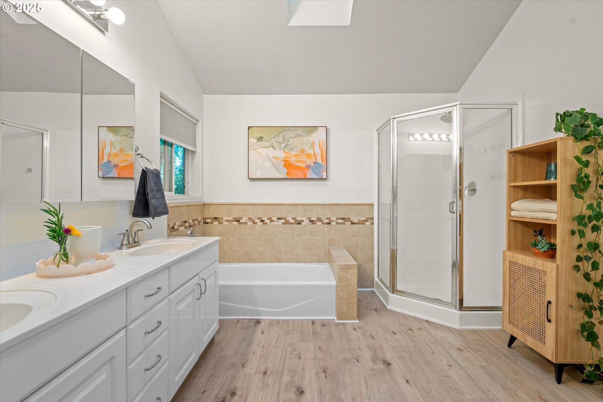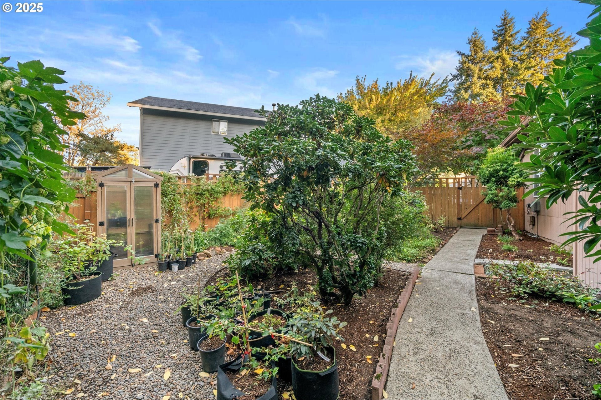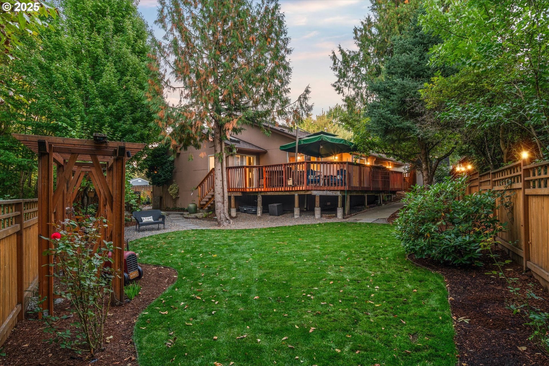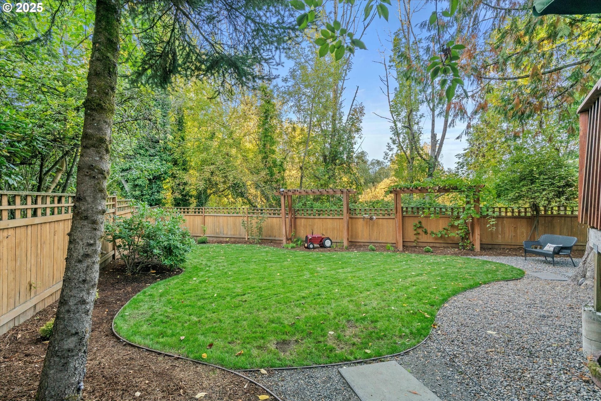 Hidden at the end of a quiet cul-de-sac and backing to the Fanno Creek Greenway, this thoughtfully updated single-level home blends comfort with a natural, welcoming feel throughout. Vaulted ceilings, warm wood beams, skylights, and picture windows bring texture and light into the main living spaces. The home has been carefully refreshed to preserve its original character, withnew carpet, flooring, and thoughtful finishes that complement the home's natural tones. The spacious primary suite offers a large walk-in closet, walk-in shower, soaking tub, and direct access to the backyard. Step outside to a large deck with peaceful views of the greenway, perfect for relaxing or entertaining. A long list of recent updates—including waterproof laminate flooring, trim, bathroom improvements, and more—adds peace of mind (see full list of updates). All of this in a highly sought-after neighborhood, with easy access to parks, trails, shopping, dining, and Hwy 217.