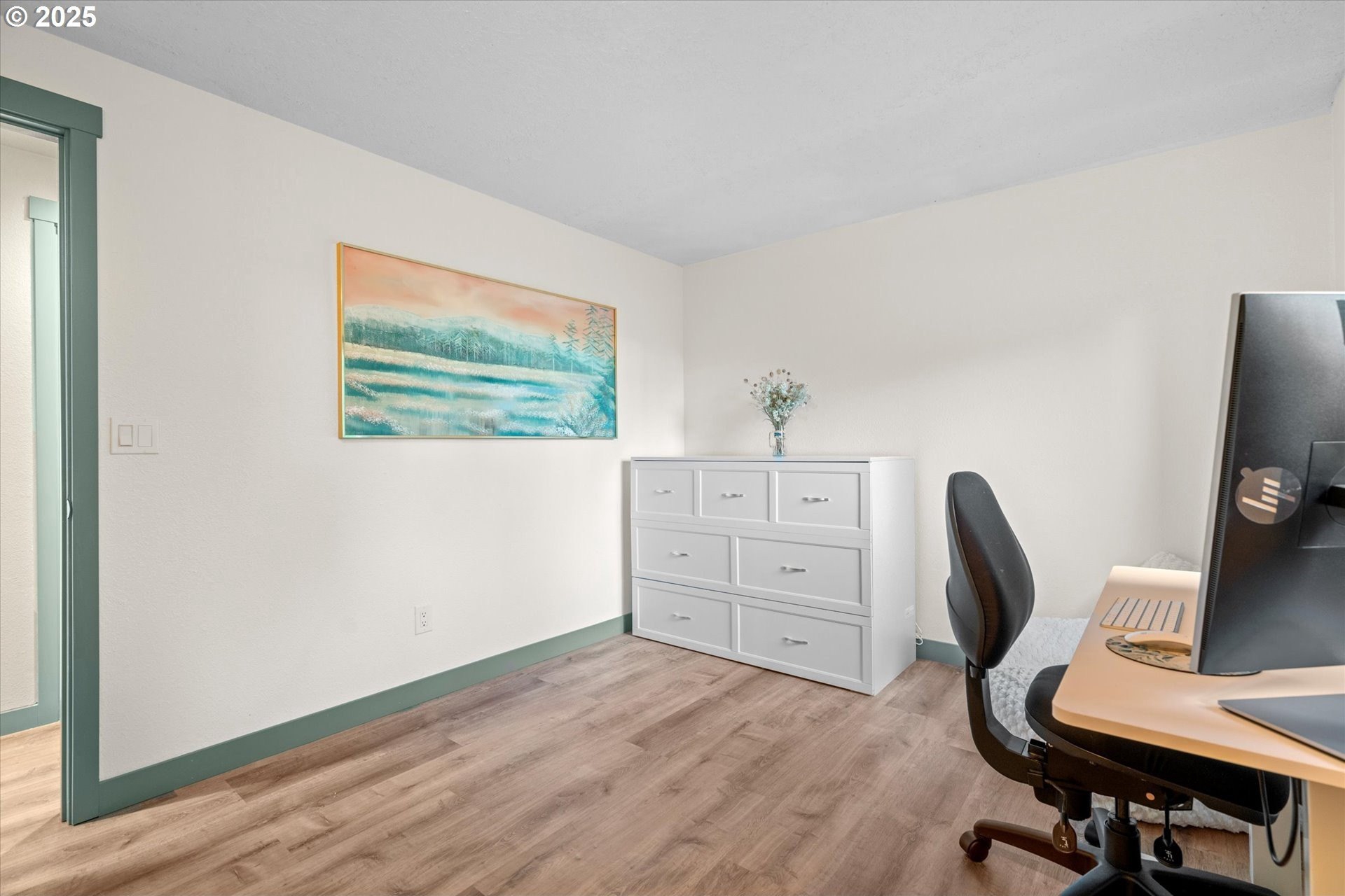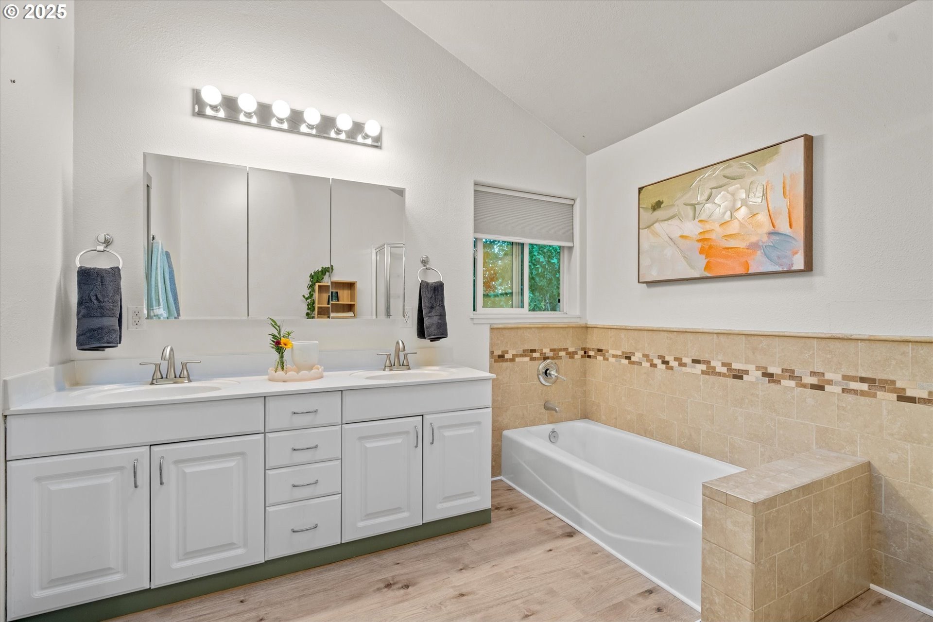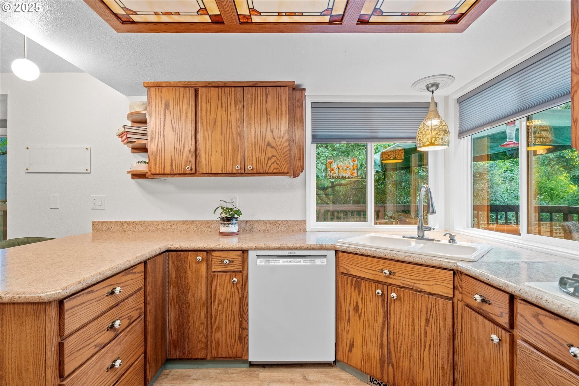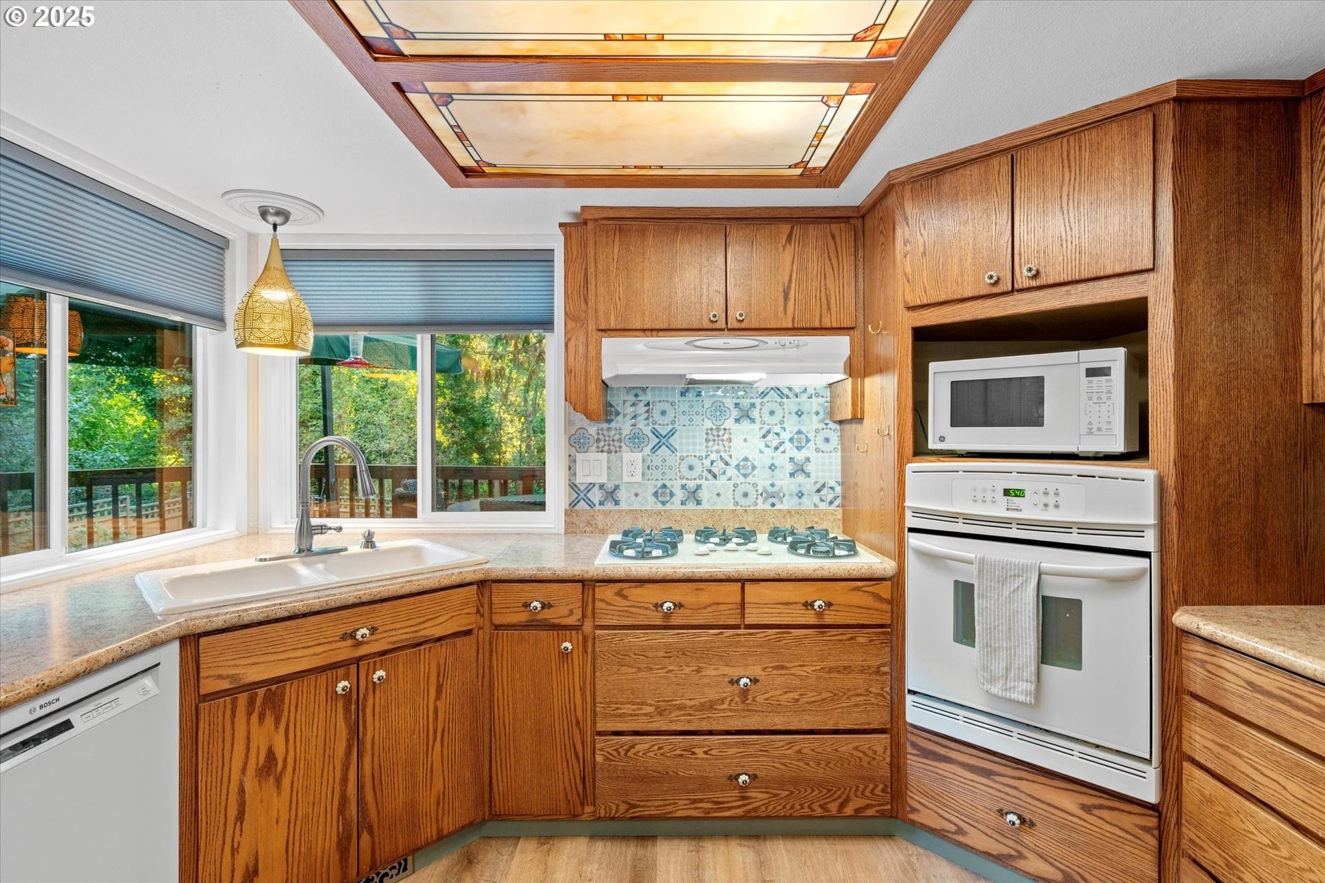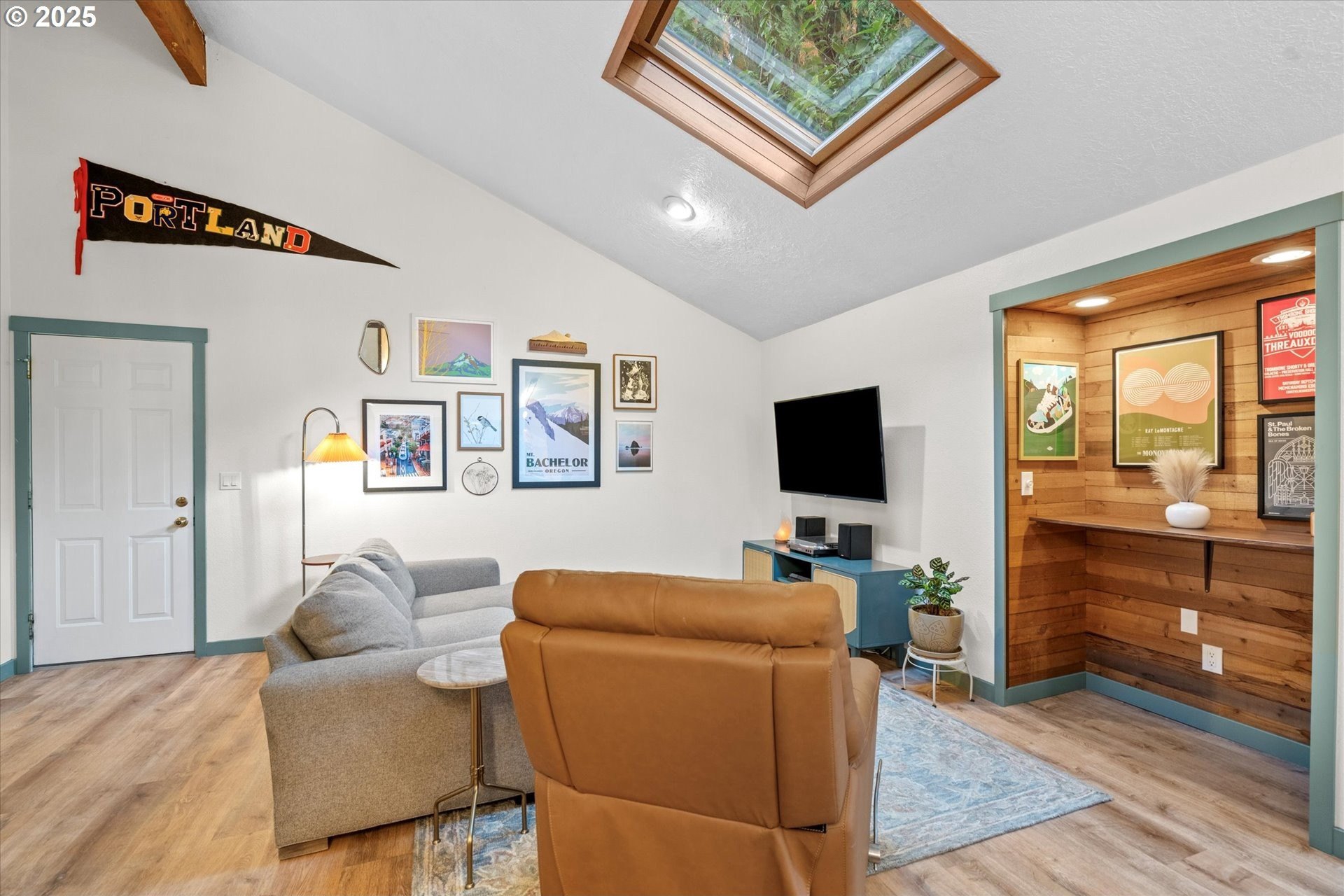 Hidden at the end of a quiet cul-de-sac and backing to the Fanno Creek Greenway, this thoughtfully updated single-level home blends comfort with a natural, welcoming feel throughout. Vaulted ceilings, warm wood beams, skylights, and picture windows bring texture and light into the main living spaces. The home has been carefully refreshed to preserve its original character, withnew carpet, flooring, and thoughtful finishes that complement the home's natural tones. The spacious primary suite offers a large walk-in closet, walk-in shower, soaking tub, and direct access to the backyard. Step outside to a large deck with peaceful views of the greenway, perfect for relaxing or entertaining. A long list of recent updates—including waterproof laminate flooring, trim, bathroom improvements, and more—adds peace of mind (see full list of updates). All of this in a highly sought-after neighborhood, with easy access to parks, trails, shopping, dining, and Hwy 217.
