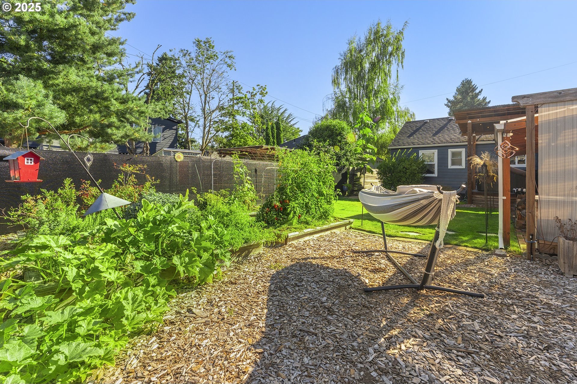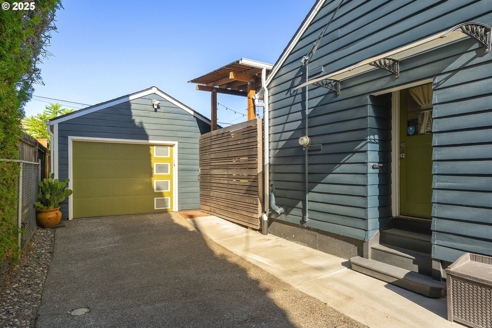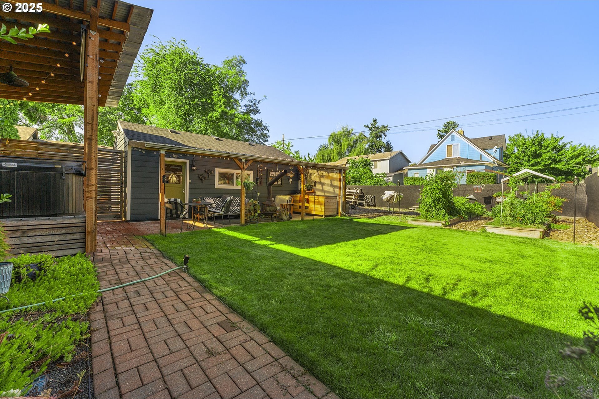 Thoughtfully updated cottage with surprising space and style. The sunny main level offers an inviting living room, hardwood floors, a cheerful kitchen, and two comfortable bedrooms. Downstairs, the basement adds flexible living with a family/media room, egress windows, bonus area for office and guests, plus ample storage. Step outside to a backyard made for Northwest living with a covered patio perfect for year-round gatherings, raised garden beds, lush landscaping, and a hot tub for unwinding under the stars. A detached garage provides extra storage or workshop potential, and the fully fenced yard keeps pets and play secure. Located on a quiet street just blocks to Rosa Parks Elementary plus quick access to University of Portland, St. Johns restaurants, New Seasons, parks, and bike trails. Easy commute routes and public transit nearby keep you connected while enjoying the charm of North Portland. This home pairs vintage character with modern comfort and invites you to spread out, entertain, and settle in. Every detail has been considered - this one is totally dialed. Energy Score:9!! [Home Energy Score = 9. HES Report at https://rpt.greenbuildingregistry.com/hes/OR10242319]